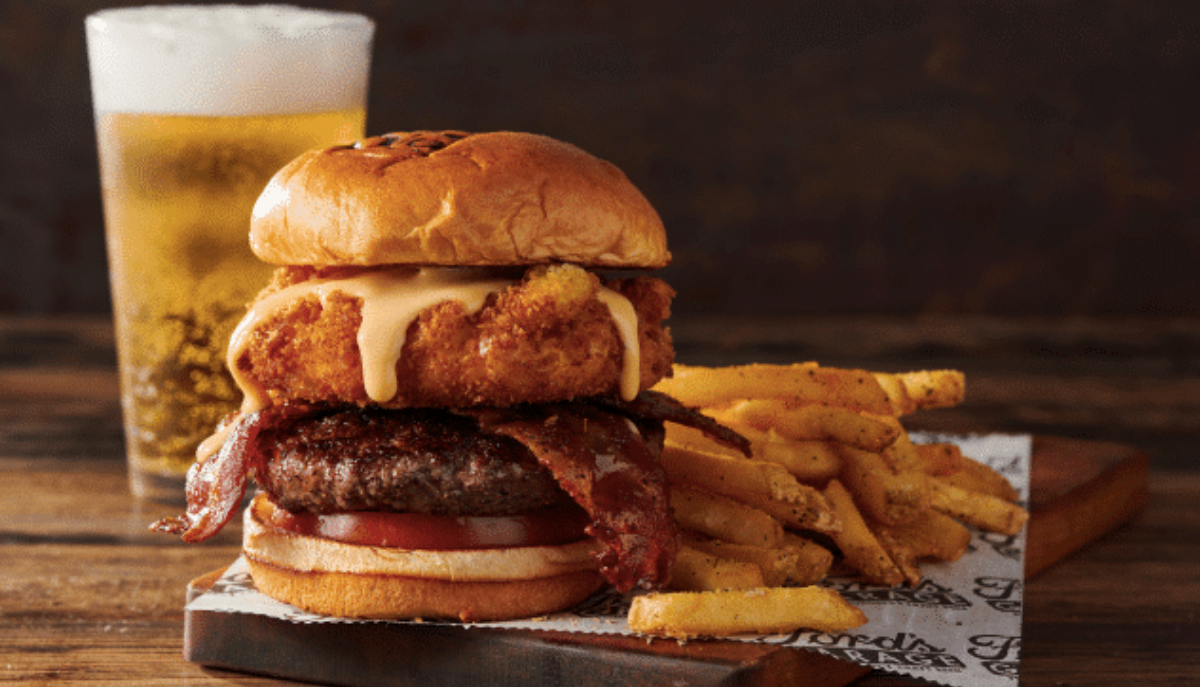 Menu Favorite: Signature Ford’s Burger with black angus beef, smoked cheddar, and house-made BBQ sauce.