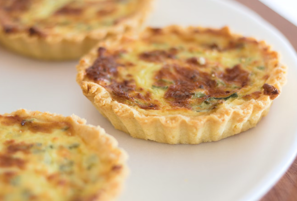 Savory Lorraine Quiche with Applewood-smoked bacon, onion, and Swiss cheese.