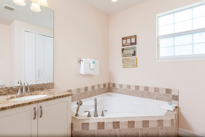 "Beach getaway - Overall our experience was good! The location is so close to the beach, it is a very short walk. The main kitchen area is perfect for gathering. The rental company was very responsive, kind & thoughtful. There were 8 of us celebrating our 50th birthdays & they had a birthday cake in the fridge for us. The concern was we had a small bug problem in the Master bathroom. We had several small bugs all over the windows & bathtub/shower upon arrival. We had a larger bug the first night in the bathtub/shower. On the 2nd day we were there, one of my friends was showering & a very large bug we think cockroach, somehow entered her shower. It was dead. The water wasn’t draining & it floated around with her. The maintenance was there to help fix the TV & he sprayed & we did not have any other problems. He was very kind & fixed the drain as well. Overall great place."