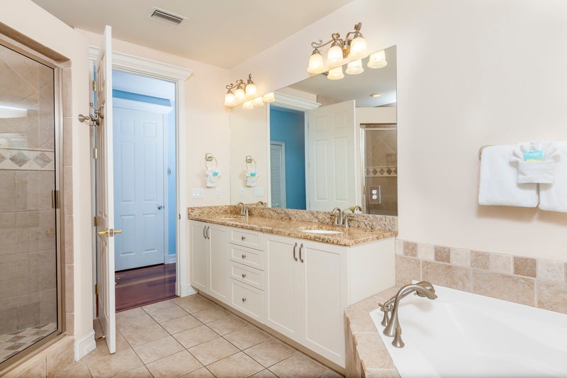 "The beach is only a walk of 2 to 3 blocks away. The house is large and clean. The master suite is huge. The other bedrooms are smaller but the shared bathroom downstairs has a huge tub. There’s a 3rd bathroom in the laundry area upstairs. The kitchen was well equipped, everything was clean. Sun Palace was very easy to communicate with. We had a great stay."