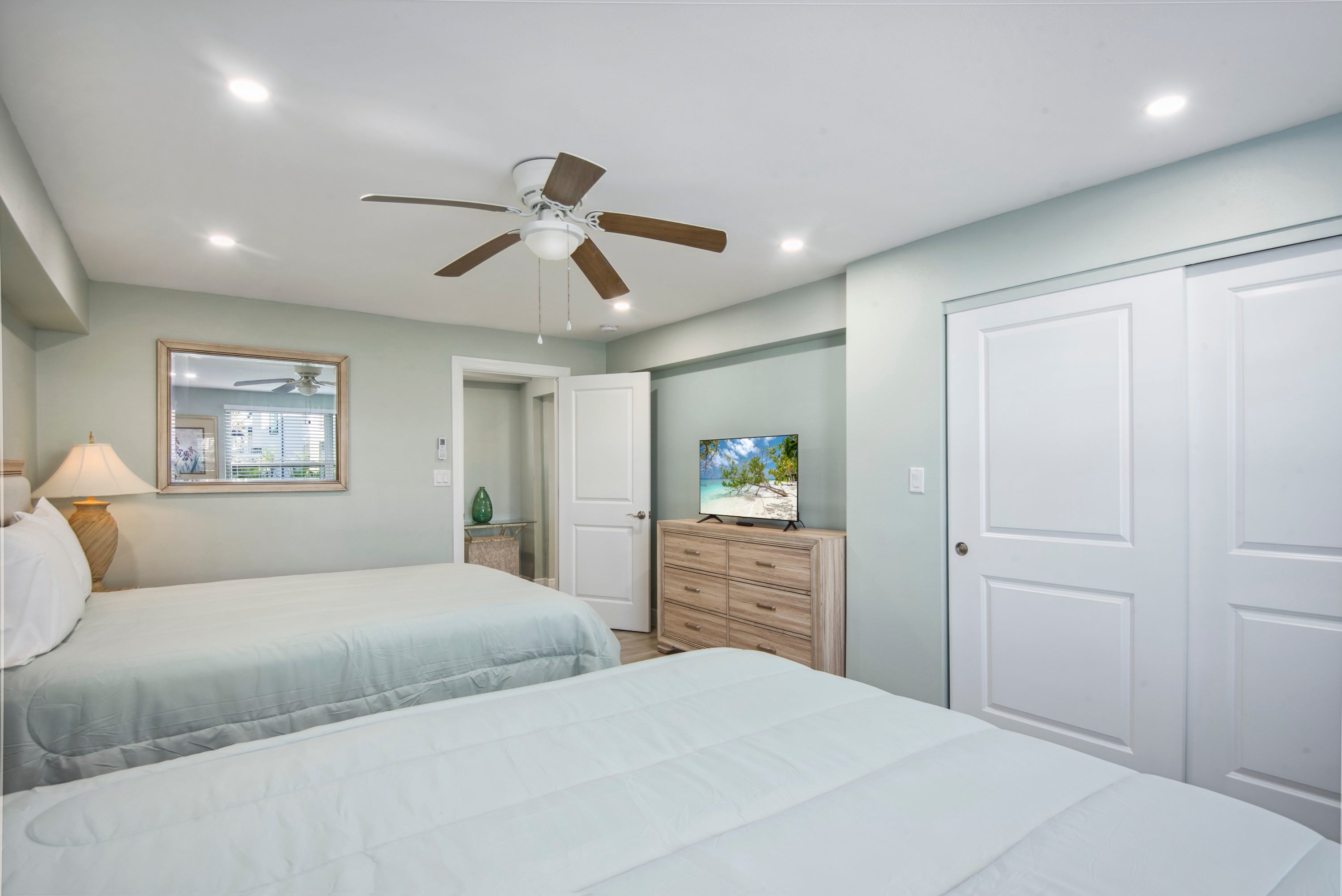 "This place is beautiful. 2 full beds in one bedroom and 2 twins in the other. Does have a couch but not a sleeper sofa. One bathroom. The air units didn’t work for us but we managed. This property is a duplex so you’ll have neighbors sharing the outside space and laundry room. The outside space is the best part of the place!! It’s gorgeous and very relaxing. The dock was great for fishing. My kids spotted a starfish, sand crabs, and caught several different fish. The pool could use some heat and a more thorough cleaning, but overall, we loved it!"