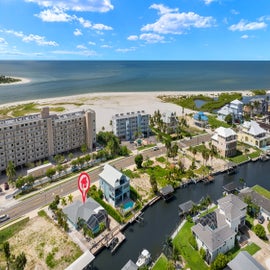 Welcome to Beach and Bay! Located on the South end of Fort Myers Beach, this beautiful canal-front home features three bedrooms and a private pool. Ideally situated just moments from the sun-kissed, sandy beach, this home promises the exceptional coastal vacation you've been waiting for. This property boasts a sophisticated design with an open-concept layout seamlessly integrating indoor and outdoor living spaces. The contemporary architecture is complemented by high ceilings, large windows, and stylish finishes. The chef’s kitchen is equipped with top-of-the-line appliances, ample counter space, and a large island. Unwind in the primary suite with a king bed and attached bathroom. The first guest bedroom includes a king bed while the other guest bedroom offers two twin beds. Come make lasting memories at Beach and Bay!