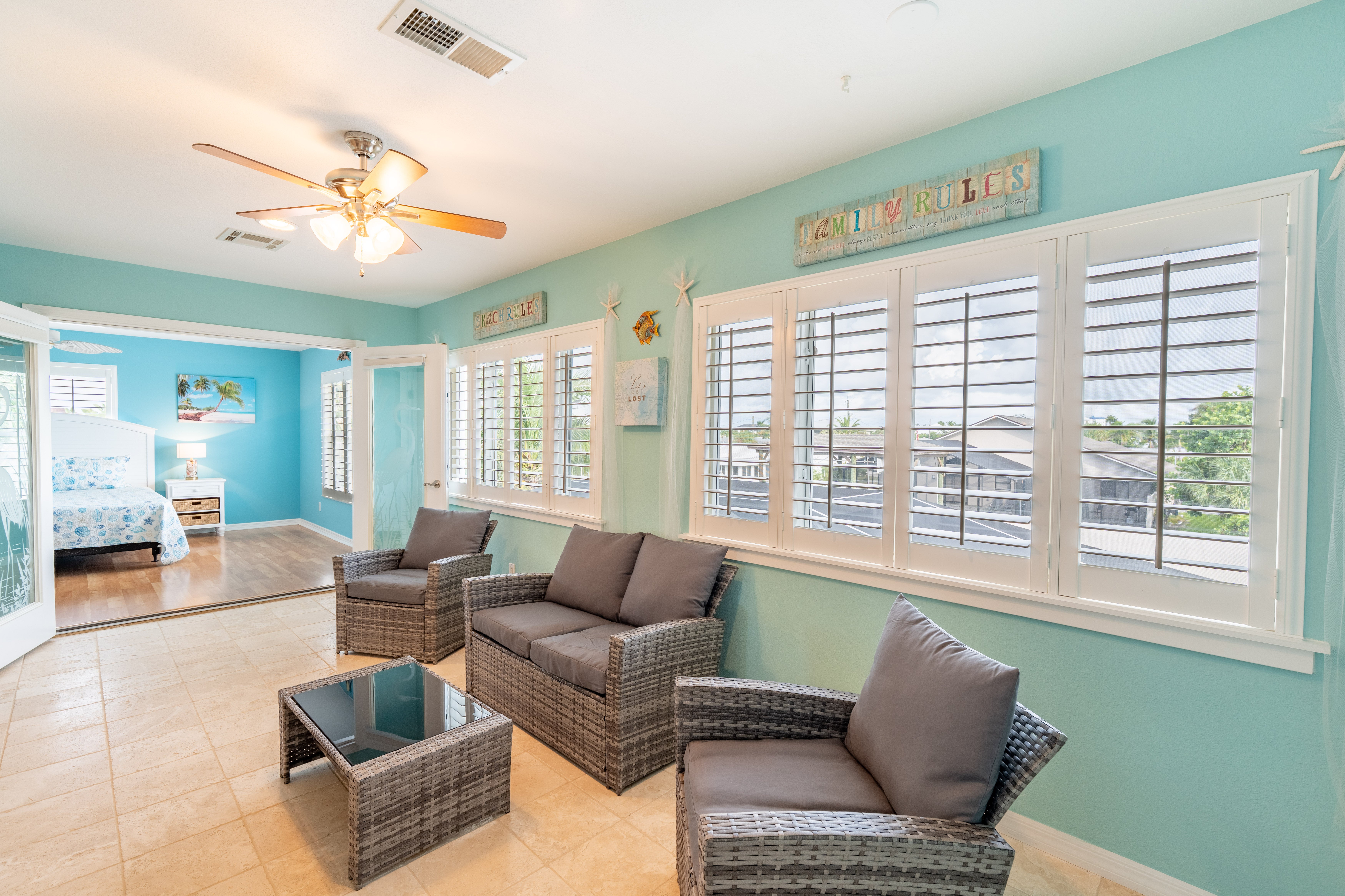 "The house was perfect. Completely as advertised. There are actually five total beds including the pull out in the living room. The kids enjoyed the shuffleboard. The pool, while not huge was nice and deep, with very clean water. I would definitely recommend and plan on using Sun Palace in the future. "