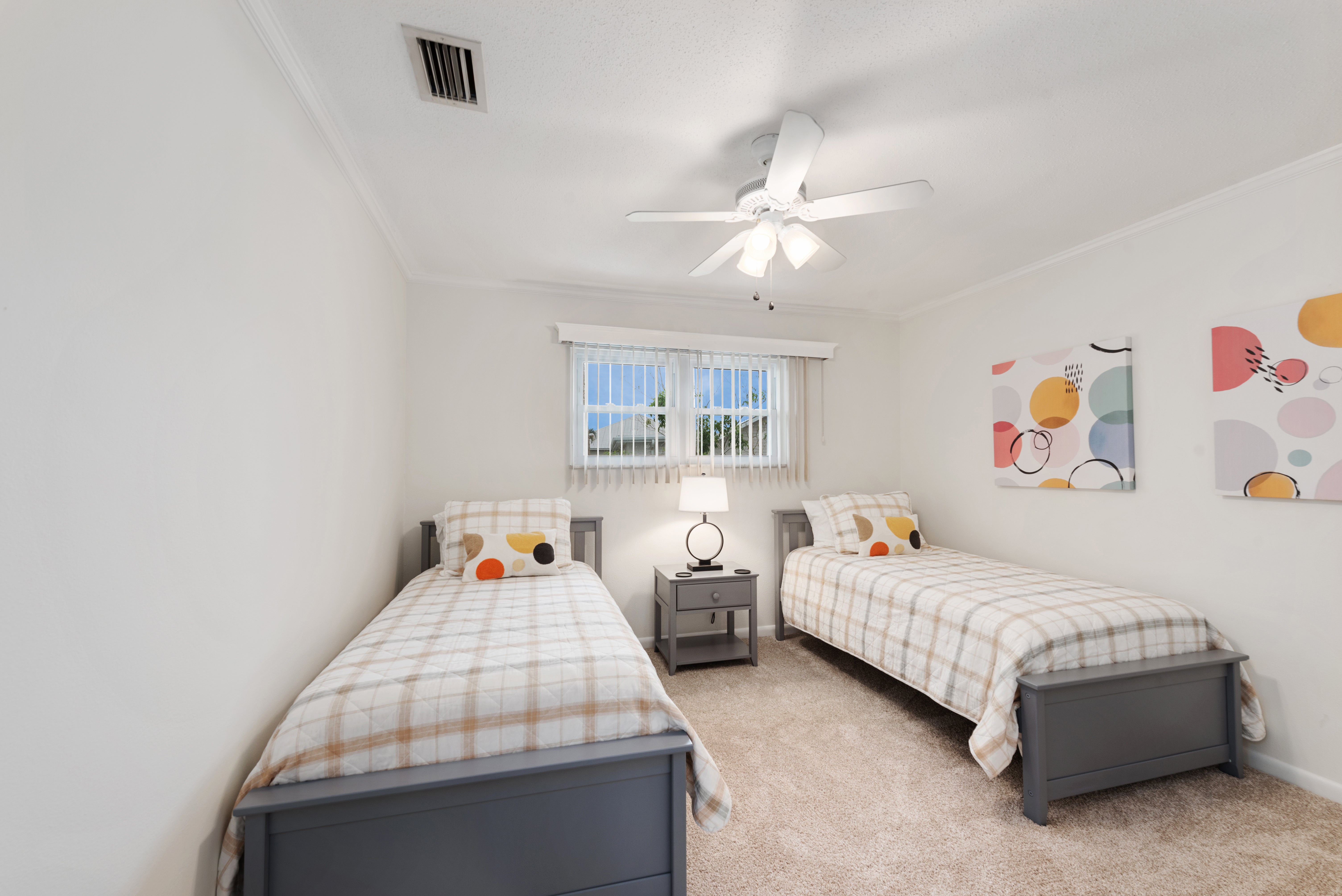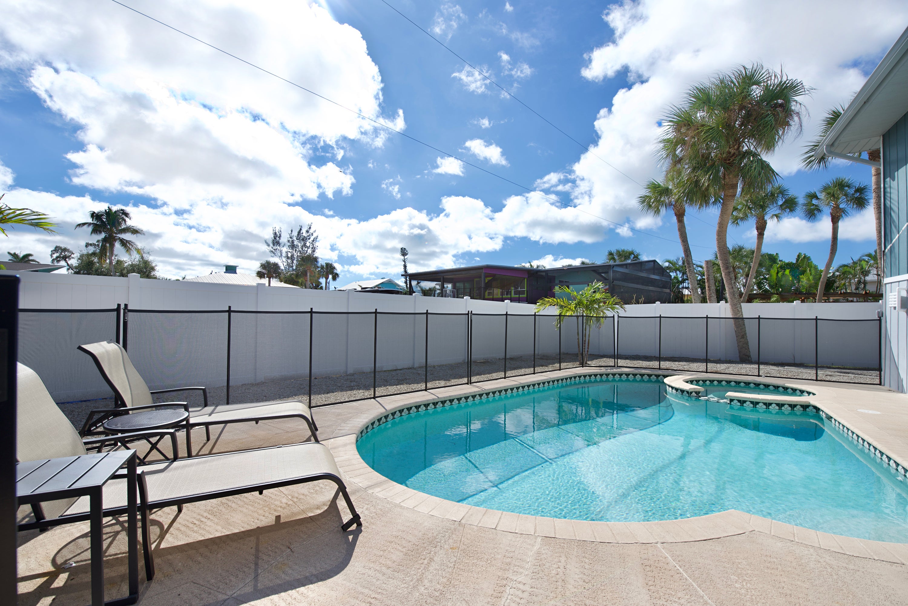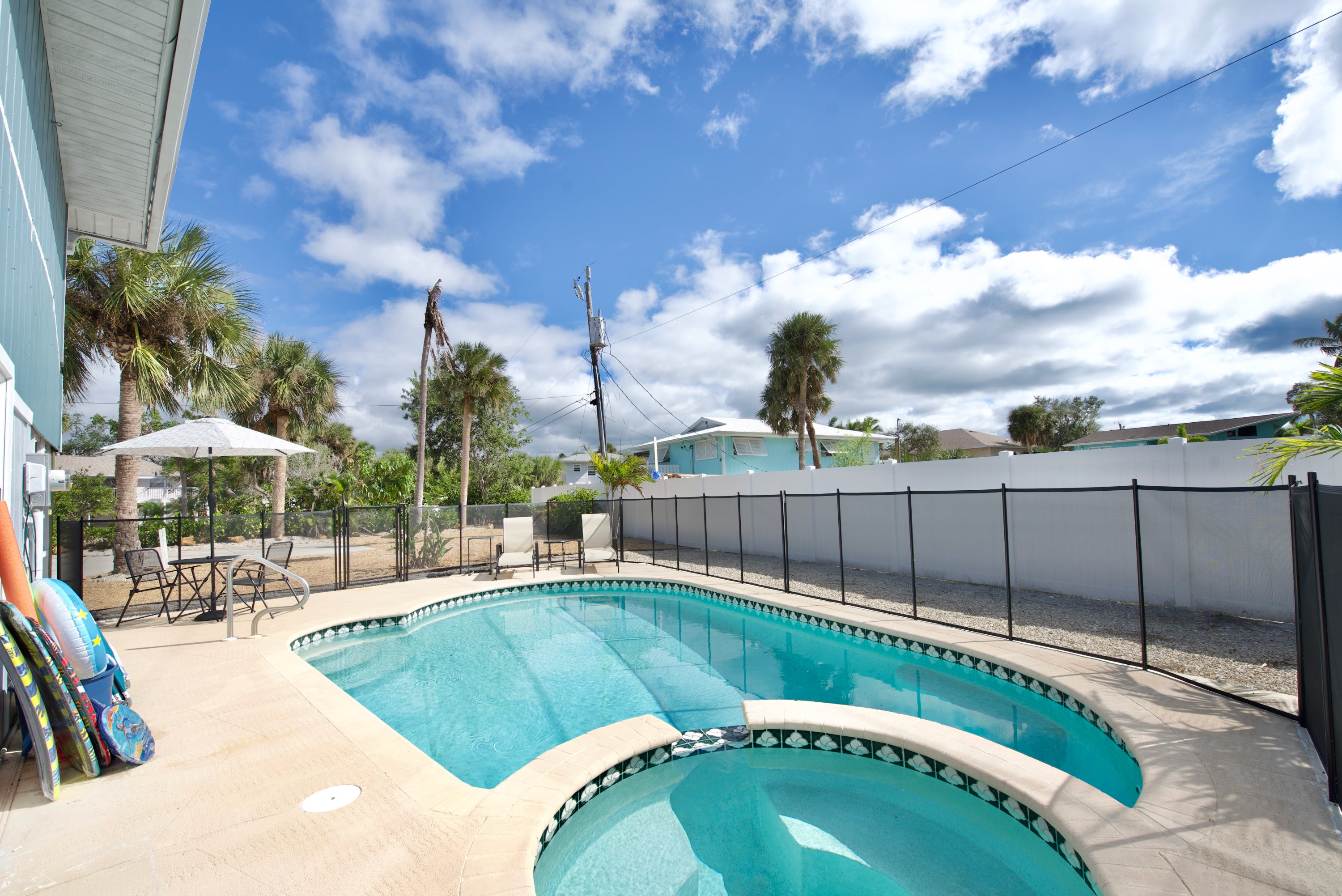 Welcome to the Beach Bungalow 1. This cozy 2-bedroom 1 bath duplex is full of natural light. The kitchen is fully equipped, whether you're preparing a quick breakfast or a gourmet feast, this well-appointed kitchen has everything you need to create culinary delights. The adjacent dining area provides an ideal setting for intimate meals with family or friends. After spending your day exploring the beach, come back and relax in the cozy living room. Furnished with 2 bedrooms, the main bedroom is a queen, and the guest bedroom has 2 twins, this home comfortably sleeps 4 people. Step outside to the backyard oasis, where you'll find a private pool shared between 2 units, outdoor space perfect for entertaining or simply enjoying the beautiful Florida weather. Relax on the patio, host a barbecue, or soak up the sun in the lushly landscaped yard. You can rent this home together or just one of the units.
