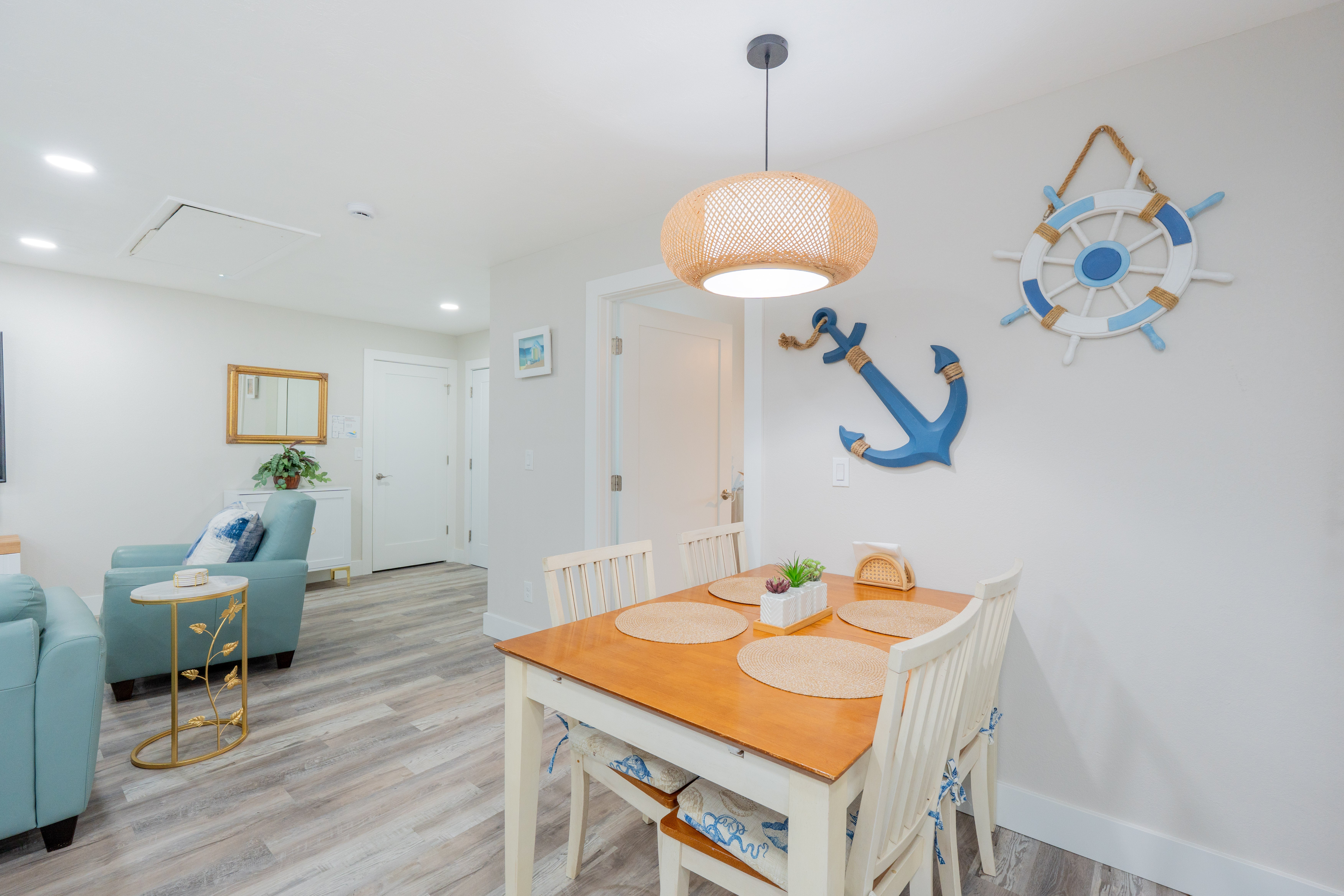 Welcome to Beach Haven North! Wake up steps from the beach and enjoy the perfect coastal getaway in this versatile duplex! The main side offers 2 queen bedrooms, 1 bathroom, an open living area with a fully stocked kitchen, and a sleeper sofa, great for family meals and movie nights.