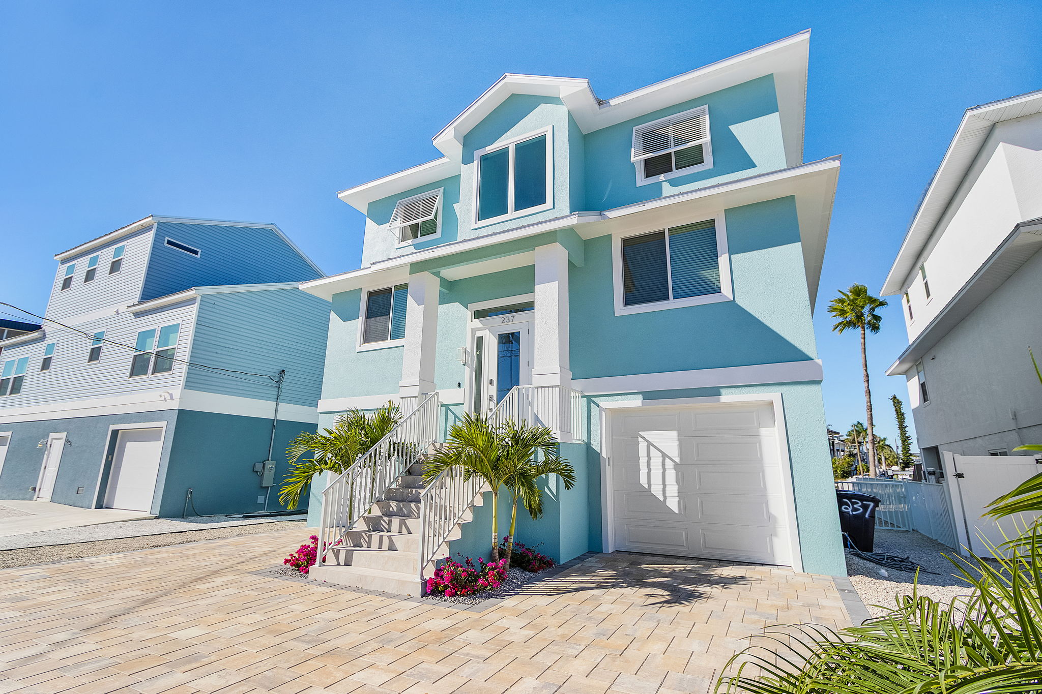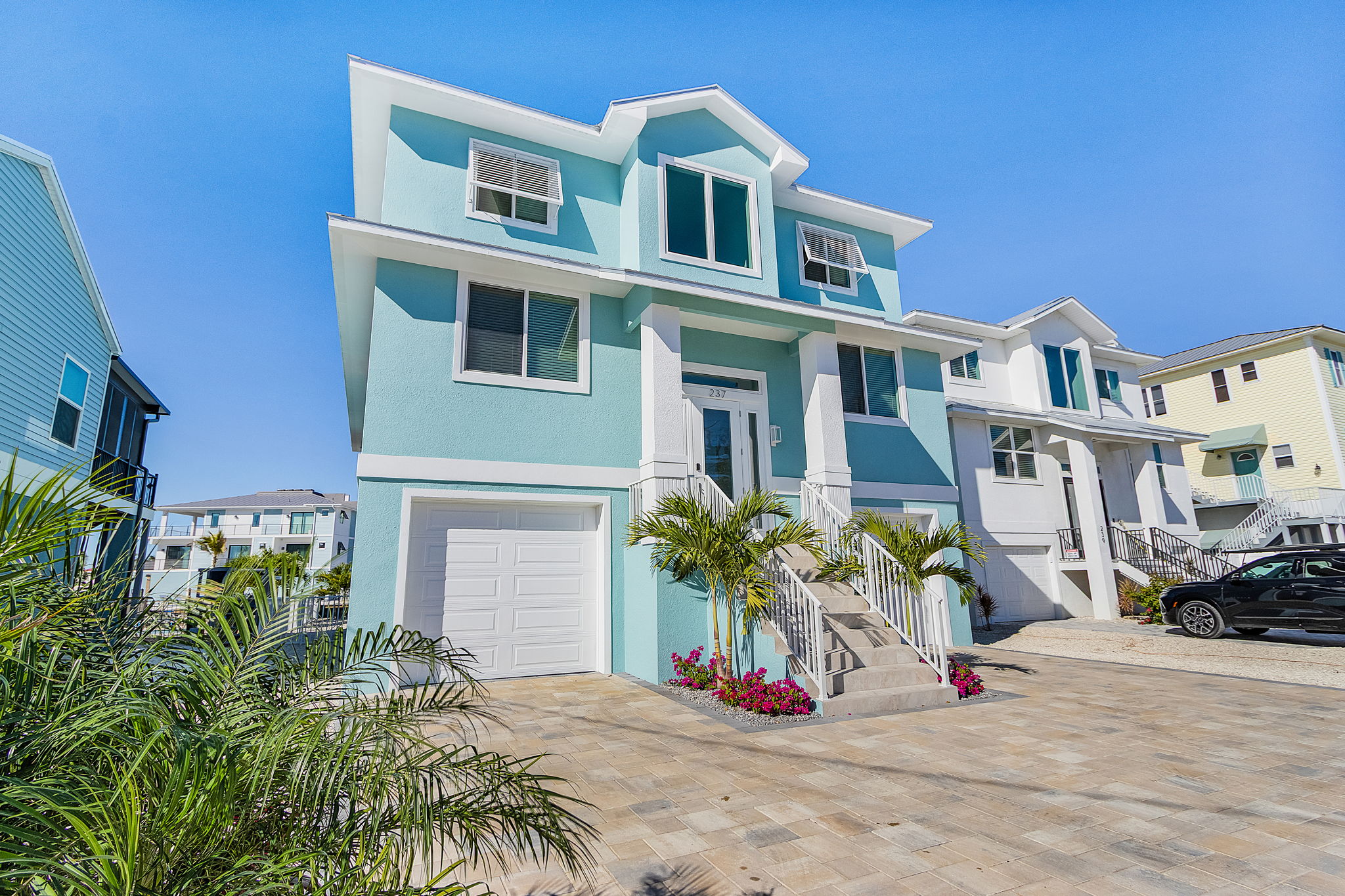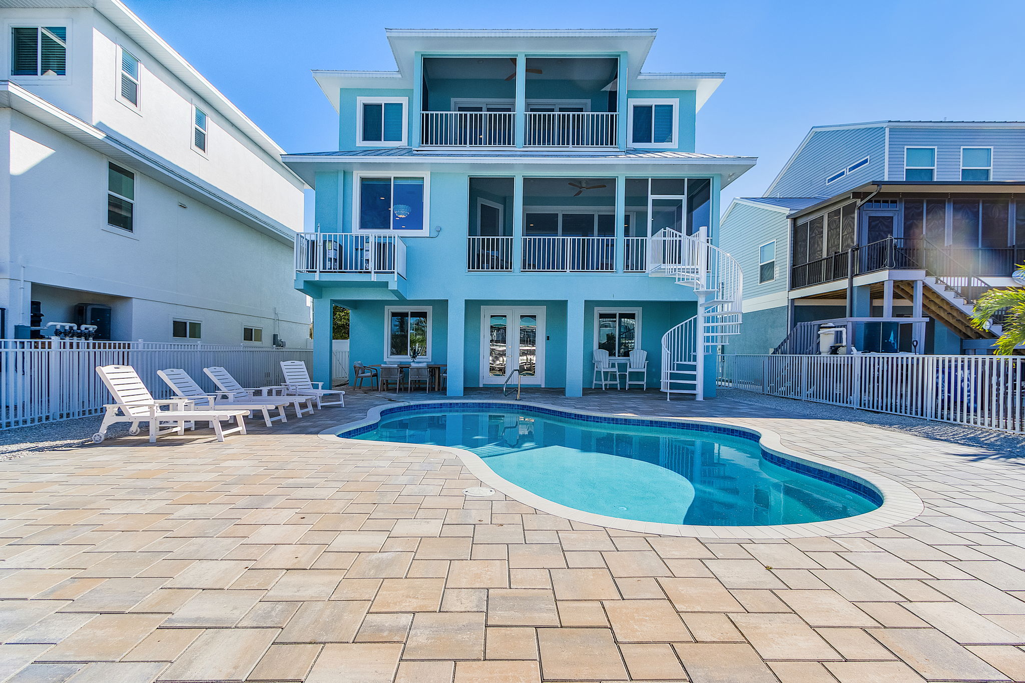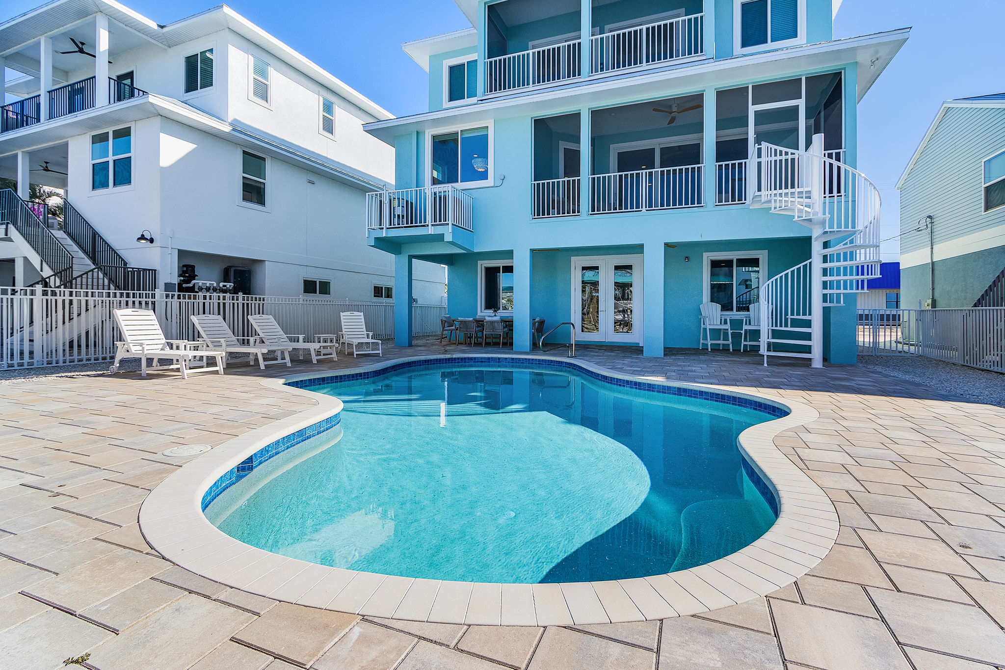 Welcome to your perfect beach escape! This brand-new, three-story coastal beauty blends modern coastal style with an unbeatable location—just a quick 374-yard stroll to the beach and perfectly situated on a peaceful canal. Sip your morning coffee on the porch while catching ocean views through the windows, then spend your days soaking up the sun or unwinding by the private heated pool. With 5 spacious bedrooms and 5 bathrooms, there’s room for everyone to spread out and relax. The main level flows right out to the pool area, the second level features a bright kitchen, living room, and two bedrooms, and the third level offers three additional serene bedroom retreats. Fully stocked with beach essentials, a grill for easy cookouts, and board games for laid-back nights, this home is designed for effortless vacation fun from start to finish. This home delivers a refined yet effortless beach vibe to make unforgettable Vacation Memories.