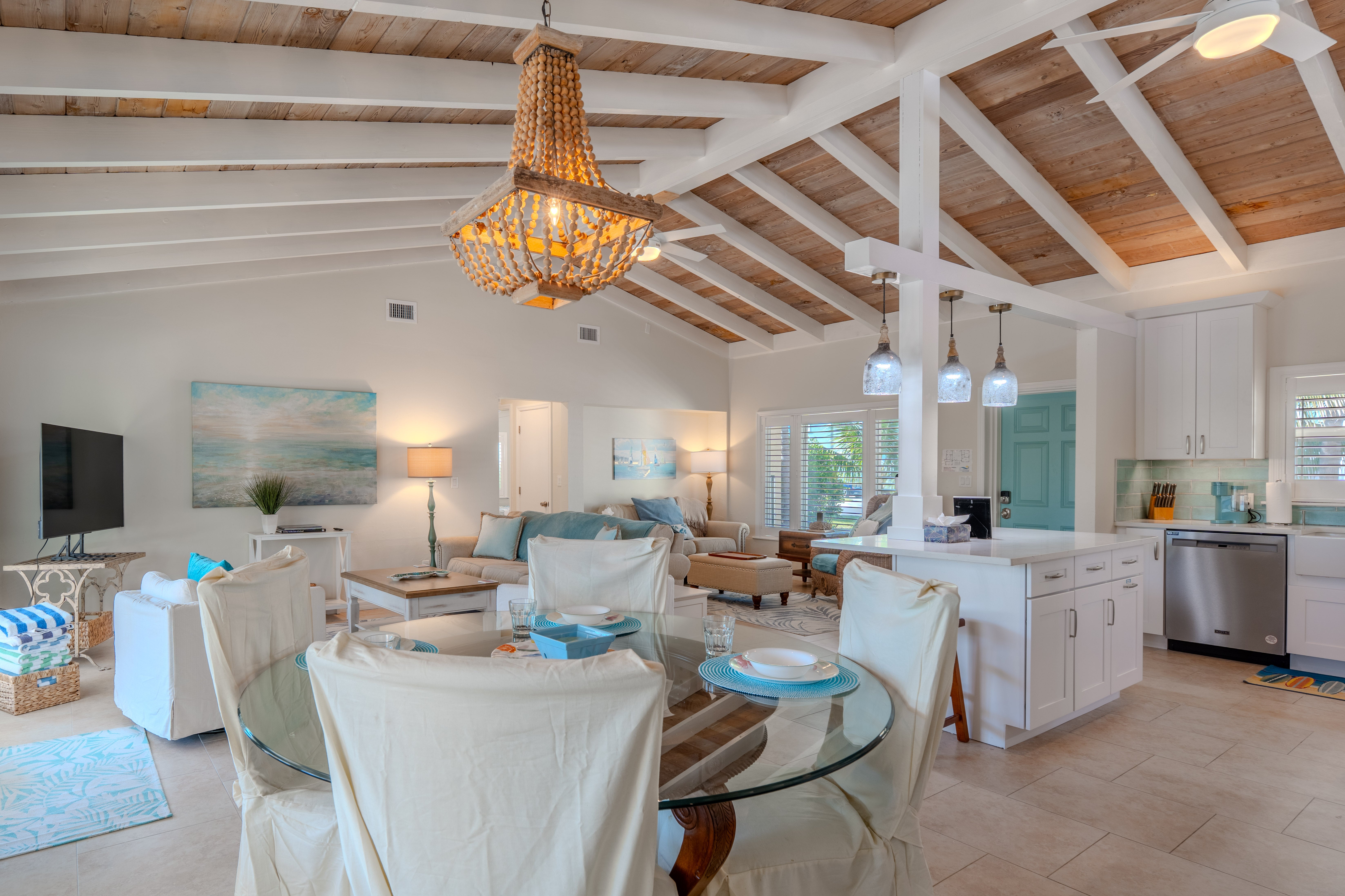 "We loved this location. Home was so relaxing, one level and very private. Quick walk to beach and close to everything. Great yard with coconut trees, even saw dolphins off dock.