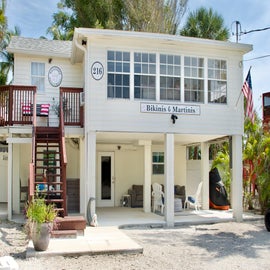 Welcome to Bikinis and Martinis. This fabulous 3-bedroom 2 bath home is located on the North end of Fort Myers Beach. An open concept floor plan includes a bright white kitchen, colorful barstools at the breakfast bar, beautiful bar area, and plenty of seating in the living room with a fun, coastal vibe. The bedrooms are decorated in soft hues of pink and have their own mini split ac units. Finishing the home is a large deck that wraps around most of the home and a laundry area. Come make lasting memories at Bikinis and Martinis.