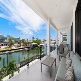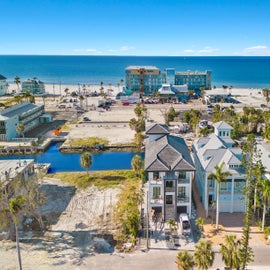 Welcome to the Black Pearl, a luxurious 5-bedroom canal front home. This magnificent property offers a blend of modern elegance, breathtaking views, and unparalleled comfort, a very short walk to the beach and downtown area, making it the ultimate destination for your dream vacation. As you step inside, you'll be immediately captivated by its sophisticated design and meticulous attention to detail. The interior features an open-concept layout, adorned with stylish furnishings and contemporary decor, creating an atmosphere of refined indulgence. Large windows throughout the home allow natural light to cascade in, illuminating the space and providing stunning views of the surrounding tropical paradise. The living area is a haven of relaxation, boasting plush seating, a state-of-the-art entertainment system, and a cozy fireplace. The fully equipped gourmet kitchen is a culinary delight, complete with top-of-the-line appliances, sleek countertops, and ample space for preparing gourmet meals. A stylish dining area adjacent to the kitchen provides an elegant setting for enjoying meals with family and friends. The master suite is a private oasis, featuring a plush king-size bed, a luxurious en-suite with a soaking tub, and a private balcony offering sweeping views of the Gulf of Mexico. Each additional bedroom is thoughtfully designed and furnished to provide a restful retreat for guests with King beds and private balconies. Step outside onto the expansive deck, where a private saltwater pool awaits, offering a refreshing respite on warm Florida days. Immerse yourself in the soothing waters of the pool or unwind in the accompanying spa. The deck is also furnished with comfortable loungers, perfect for sunbathing or enjoying a good book or just enjoying the balmy breezes off the canal.