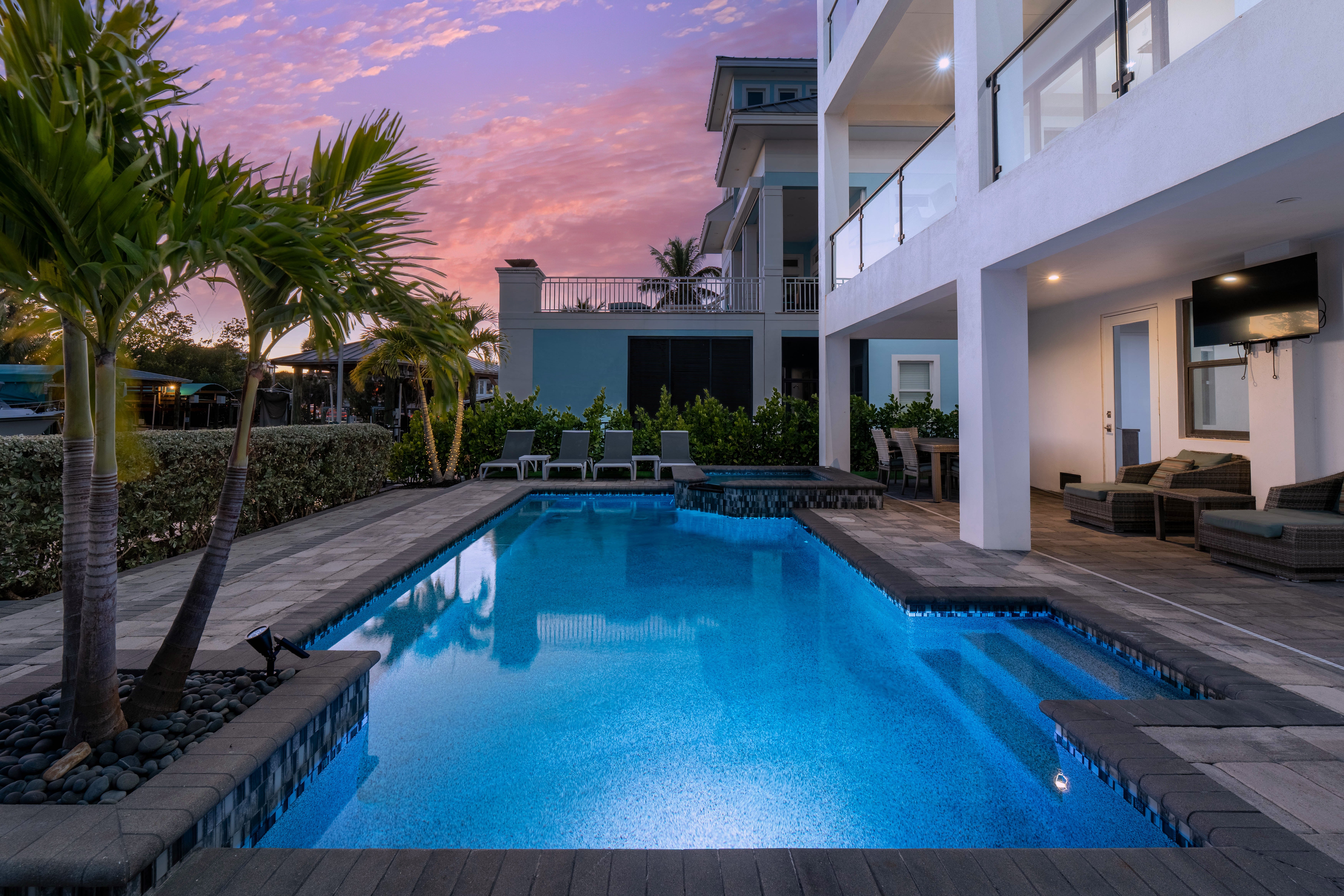 * Private Saltwater Pool with Spill Over Spa and Colorful Pool Lights