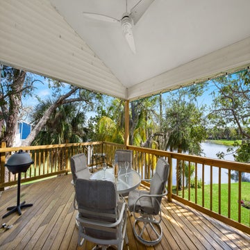 Natural light continues into the ensuite primary bedroom featuring a king bed, 55-inch TV, and ensuite with walk-in shower. The guest bedroom includes a queen bed and a futon in the loft allowing up to 6 guests to sleep comfortably. The second full bath features a combination tub and shower. The loft space offers two couches which is the perfect place for kids to stream entertainment and play games on a second TV. You’ll also find ceiling fans throughout to offer a nice breeze on balmy Southwest Florida days and nights. There is ample covered parking for multiple cars. Beach towels, chairs, beach cart and coolers are also provided. There’s an outside storage area where you can leave wet and sandy towels and flip flops. Enjoy the laughs and memories you’ll make hanging out on the magnificent lawn and playing bocce or cornhole (provided), or fire up the charcoal grill for hotdogs, hamburgers, and smores on the covered patio and there's also an electric grill for convenience as well. Visit Blue Bayou and see why it will easily become your family’s favorite home.