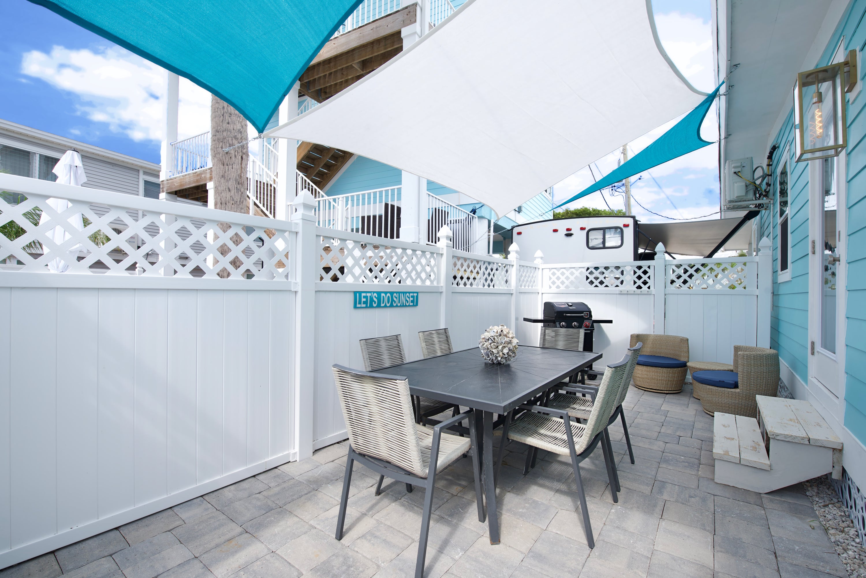 "PERFECT - Staying 4 nights-everything about this place was PERFECT. We were 8 adults- who never felt cramped. There was always a beautiful place to go on the property. It was Immaculate! Decorated adorable. Packed with silverware, kitchen serving pieces, blankets, baskets, towels, beach towels, toys, games, coolers, tables, chairs, anything you could think of with only a 2 minute walk to the Beach....with Walmart+ delivery we never had to leave. It was PERFECT."