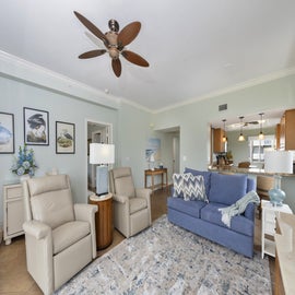 "Very nice condo on the floor with 2 nice bedrooms , large family room and a nice screened in lanai with a nice evening sunset ! Enjoyable and comfy"