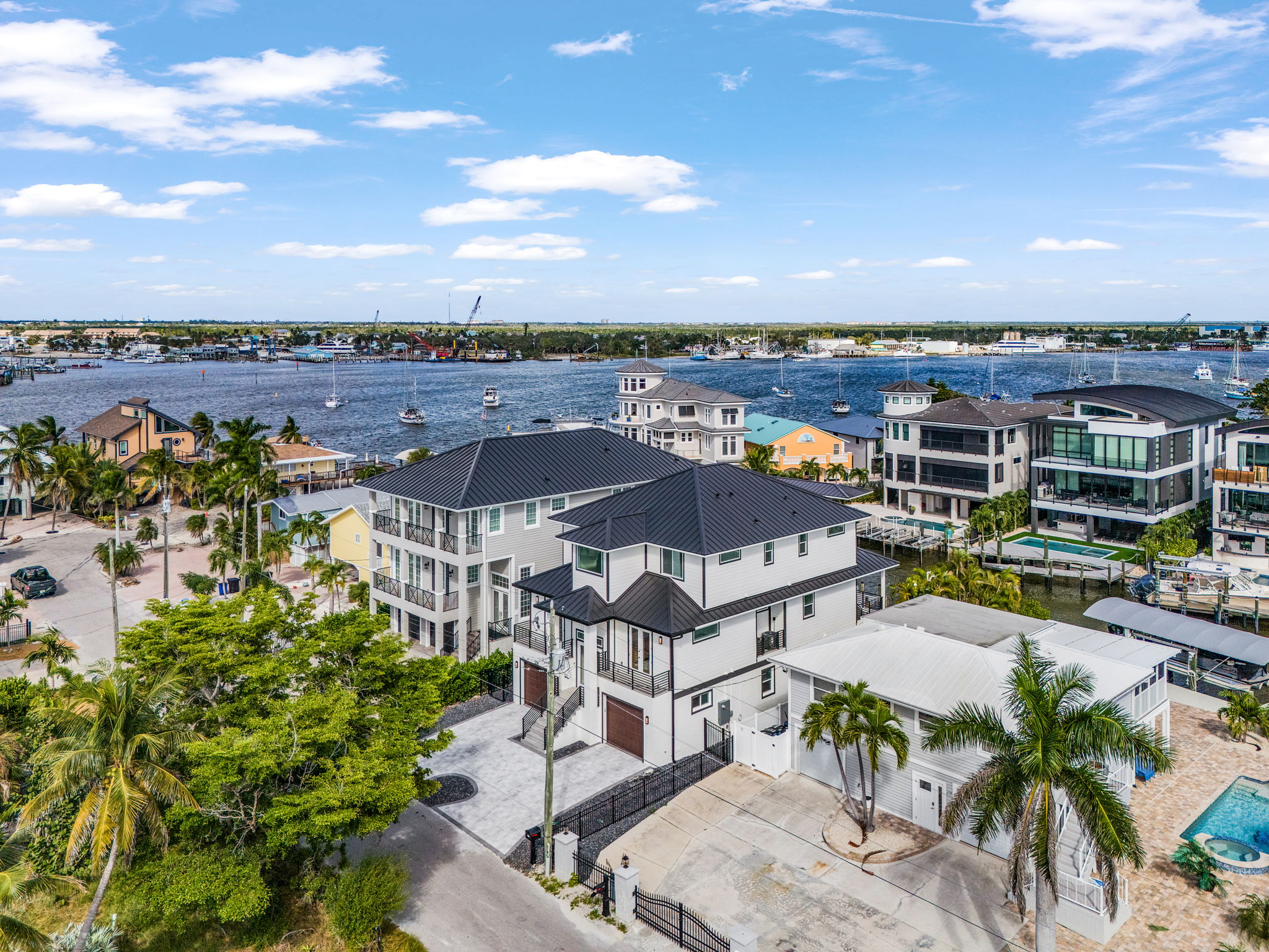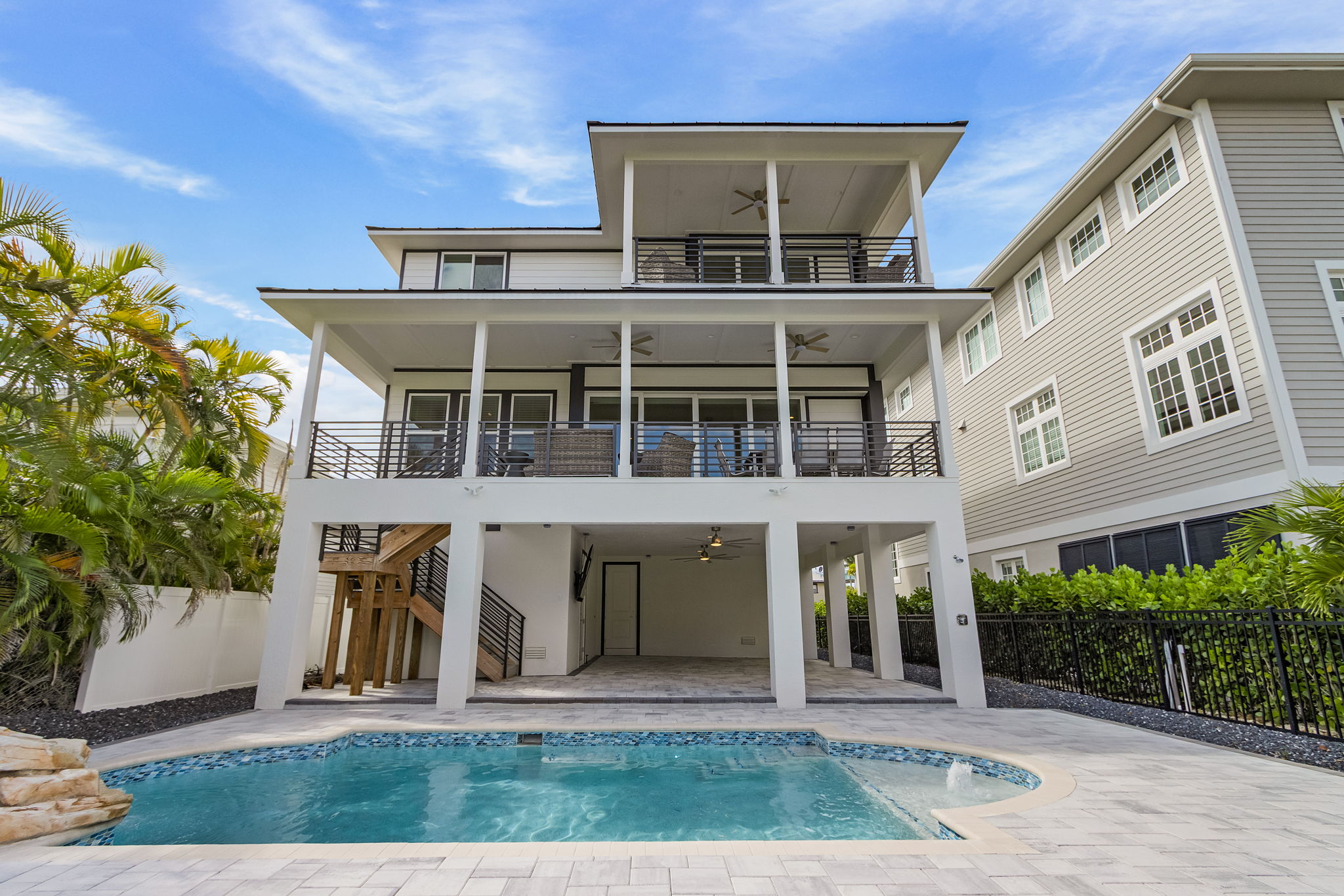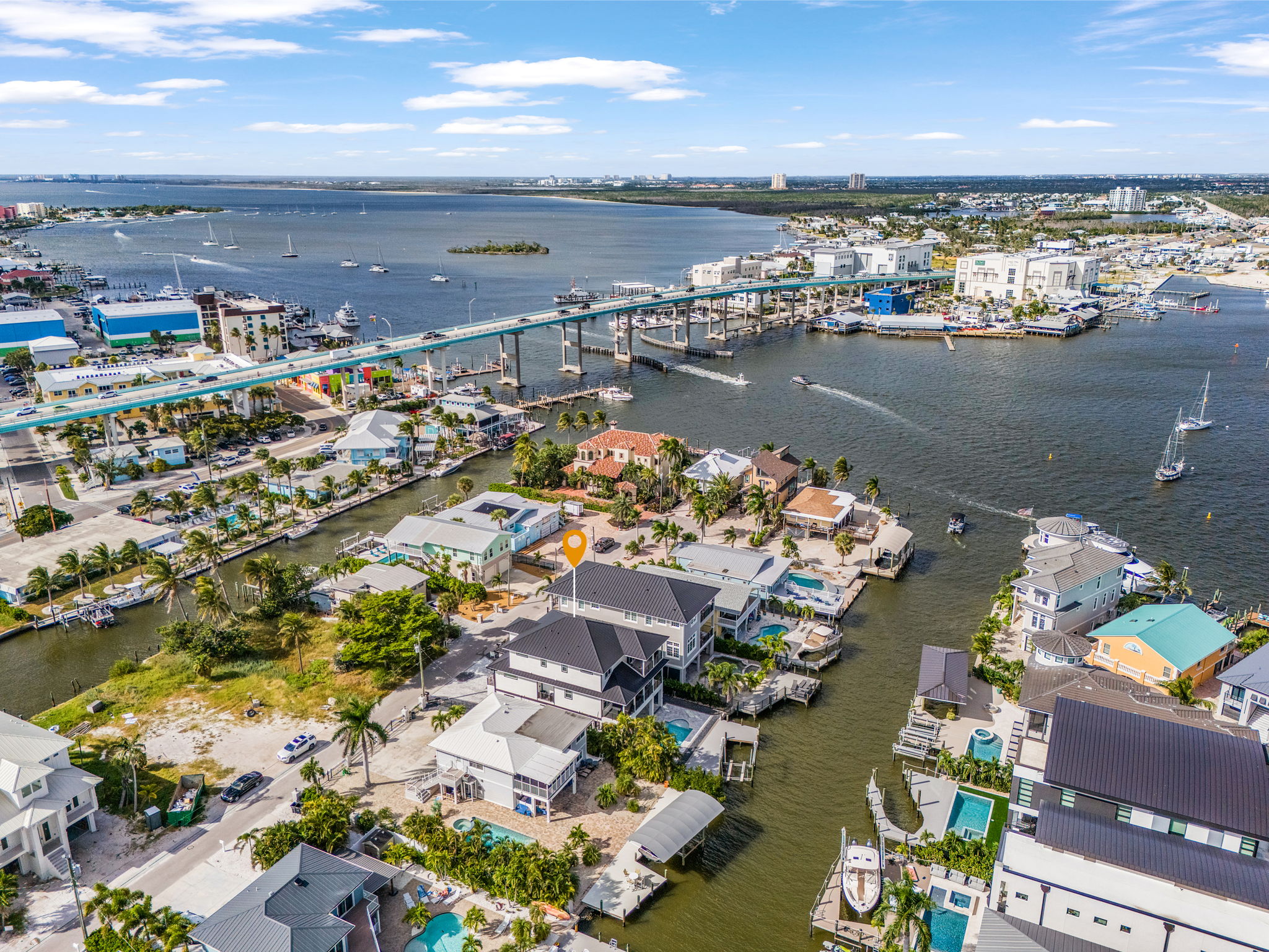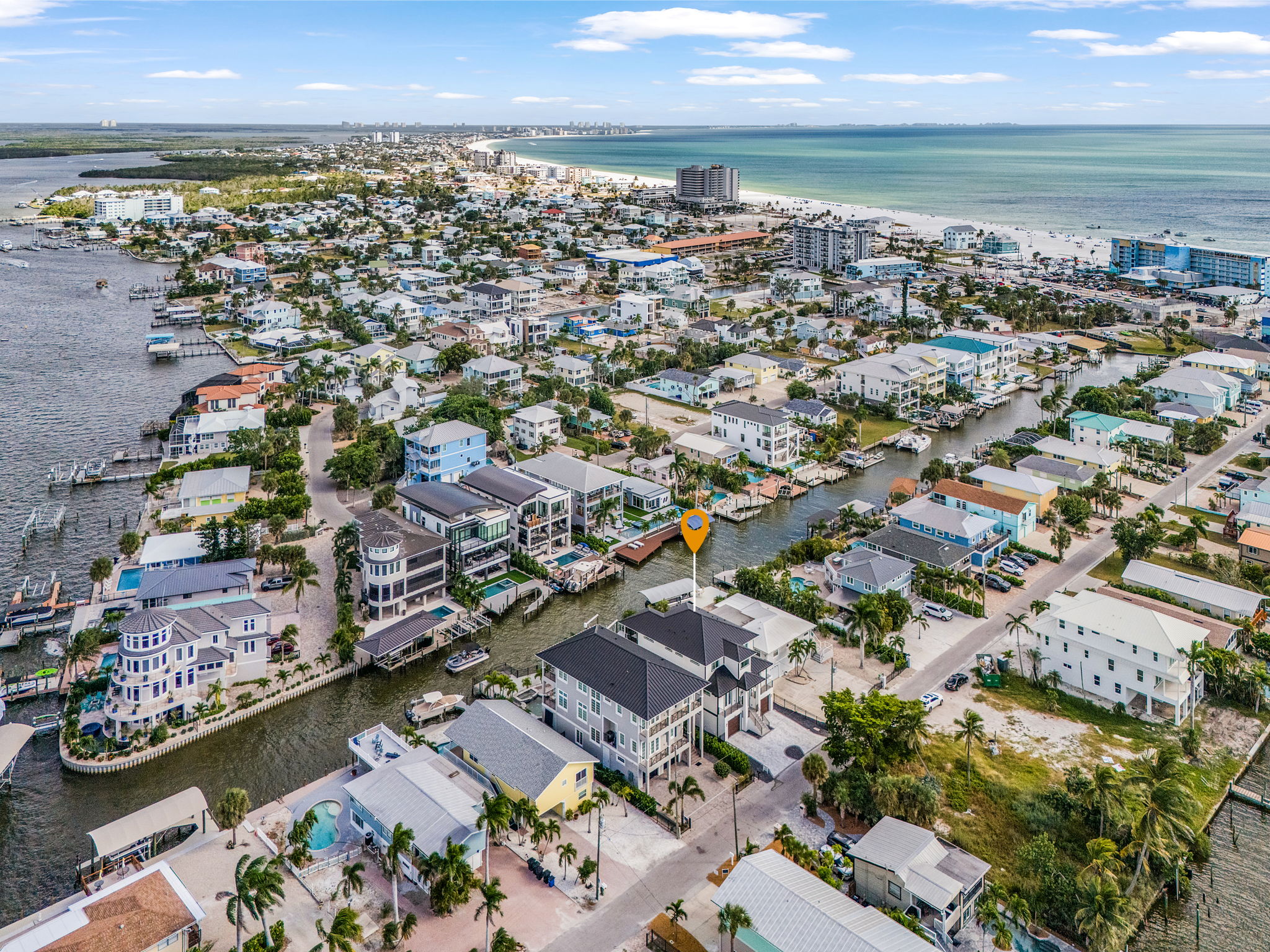 Welcome to your modern canal-front paradise on Fort Myers Beach. This brand-new vacation home features six spacious king suites, each with its own private bathroom, plus an additional half bath for guests. Designed with a sleek, contemporary interior and an open-concept layout, the home offers the perfect blend of style and comfort. The fully equipped kitchen and bright living spaces make it ideal for gathering, relaxing, and entertaining. Step outside to enjoy the private heated pool, lounge area, and canal views—complete with a dock where you can fish or watch dolphins glide by. Conveniently located just minutes from the beach, shops, and waterfront dining, this home delivers the ultimate blend of modern luxury and laid-back coastal living.