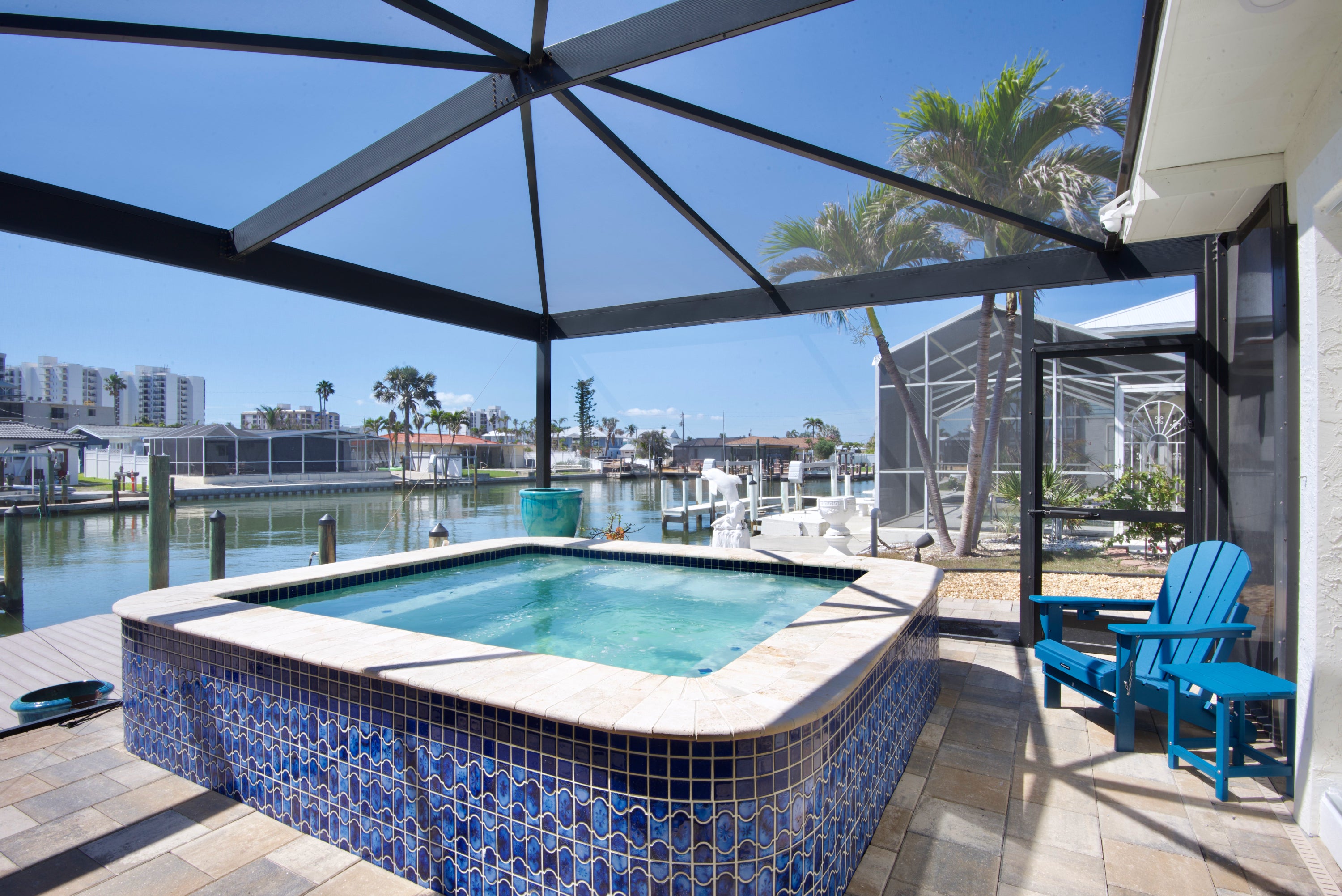 "beautiful one level home in a quiet secluded cul de sac. 5 min walk to wonderful sandy beaches! Spool was nice to relax in but needed filled daily. Host was responsive in bringing water hose. It was fun to watch the manatees from the back porch"