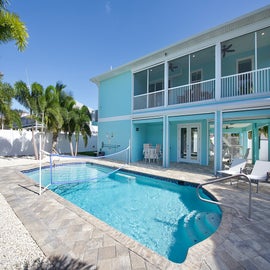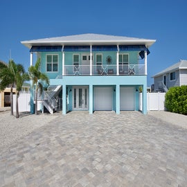 Welcome to Crain’s Perch. This stunning 3 bed/ 2 bath home features luxurious furnishings where no detail was left out. A stunning gourmet kitchen features quartz countertops, a Sub-Zero Fridge, and plenty of space for all to gather. A full-size freezer is in the laundry area. A beautiful dining table seats 6 guests with additional seating for 4 at the island. If dining al fresco is what your party wants, then an outdoor table is available in the screened in lanai and seats 6 guests. Vaulted ceilings throughout the main living areas make the space feel light and airy. The living room features a beautiful sectional to relax on after a full day in the sun. An oversized master bedroom features a king bed, flat screen TV, and large his and hers closets. The en suite includes double vanities and a spacious walk-in shower with two shower heads. The other two guest bedrooms feature queen beds, with a sleeper sofa in the downstairs this home sleeps 8 comfortably. Downstairs there is an additional living area that is perfect for kids and features a ping pong table. The only interior access between the floors is by an inside elevator.
