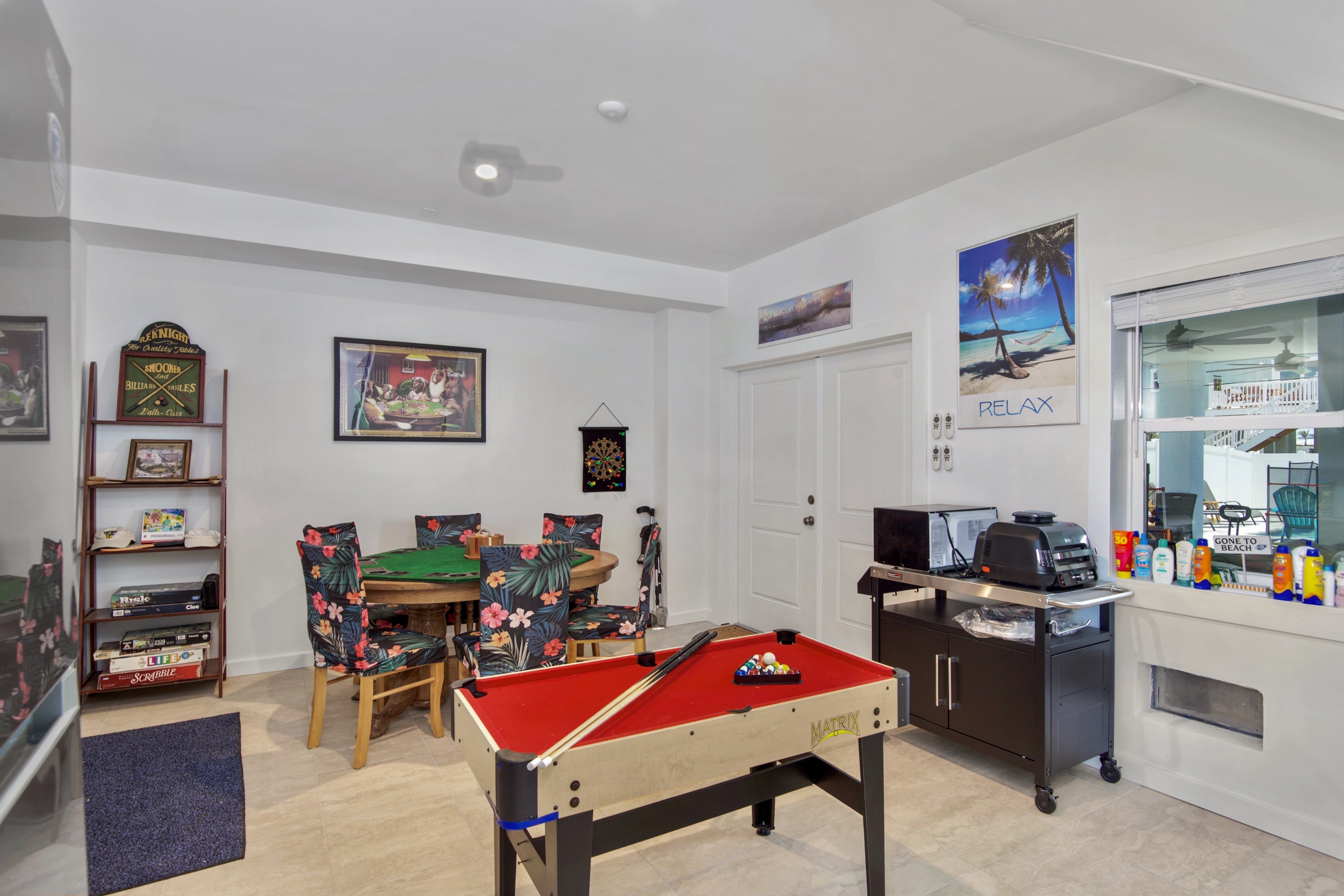 * Games Galore – Basketball Hoop, Small Pool Table, Yoga Mats on Upper Balcony