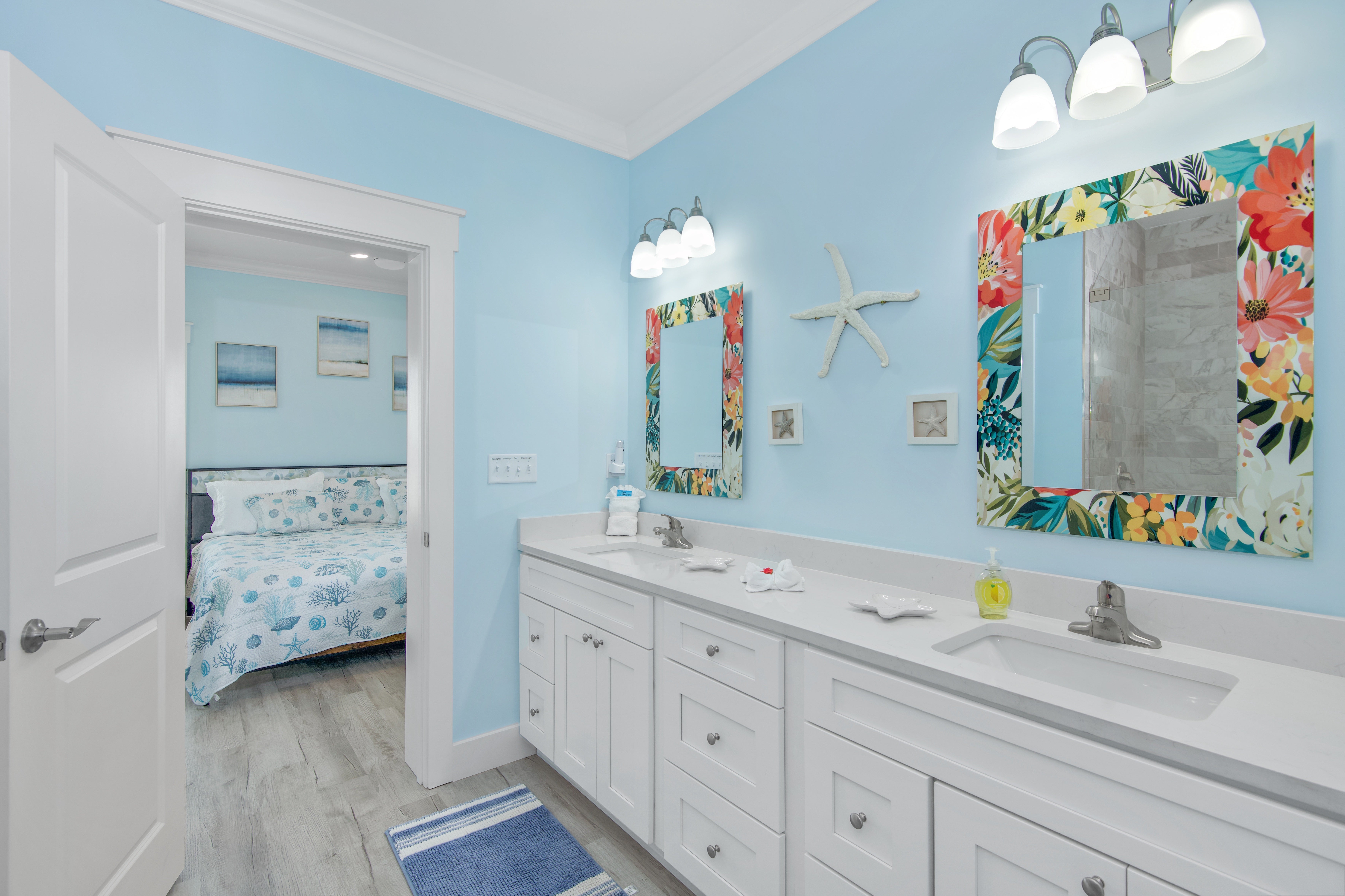 "We had such a great time at Beach Baby! The house was immaculate, stocked with everything one could possibly need and incredibly close to the beach! The pool was so nice (heated) and the hot tub was such a plus! We enjoyed the sounds of the waterfall from the hot tub into the pool and the outdoor shower was a nice treat. The beds were SUPER comfortable and the house was stocked with plenty of beach towels