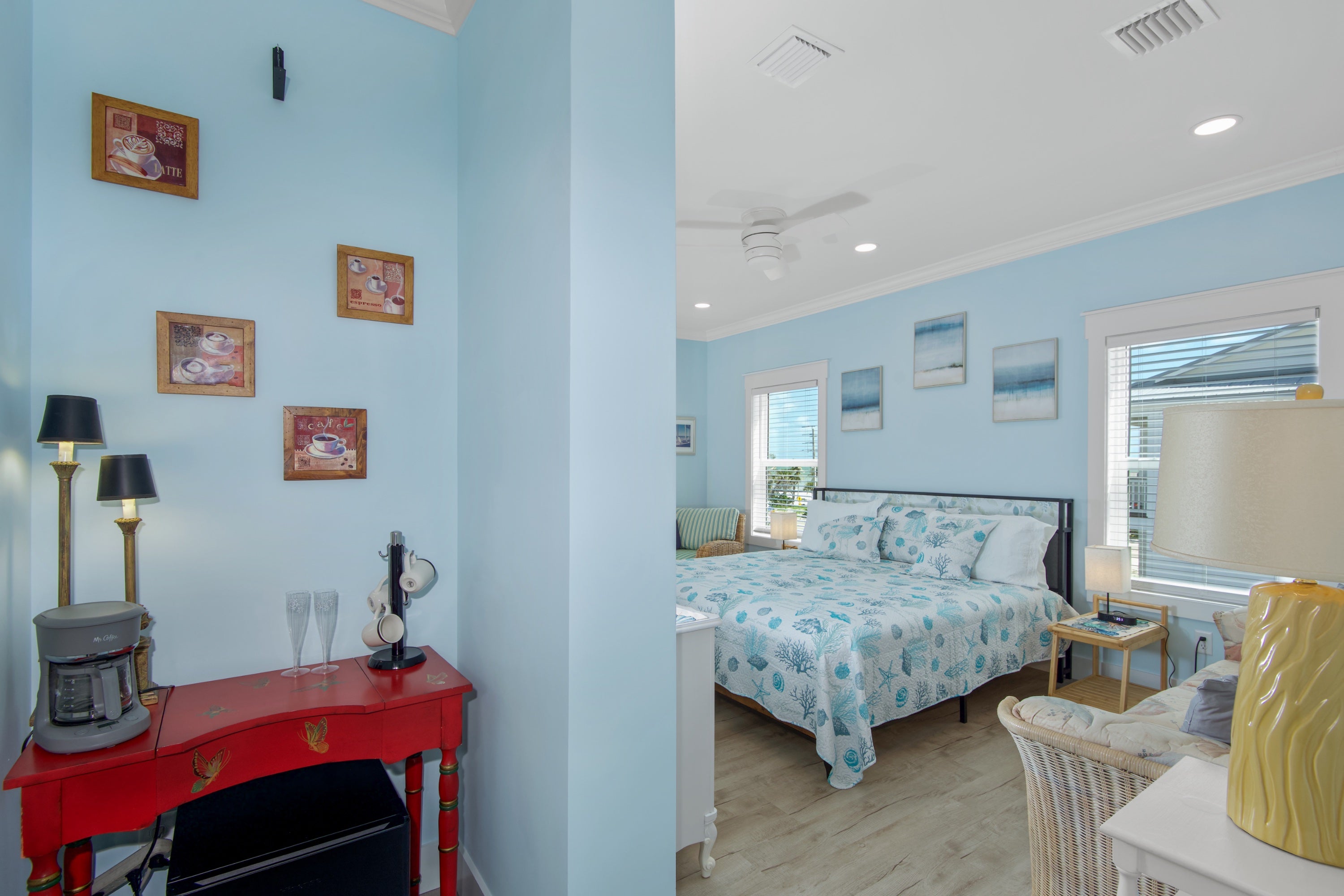 * Coffee and Tea Bar With Mini Fridge in Primary Bedroom