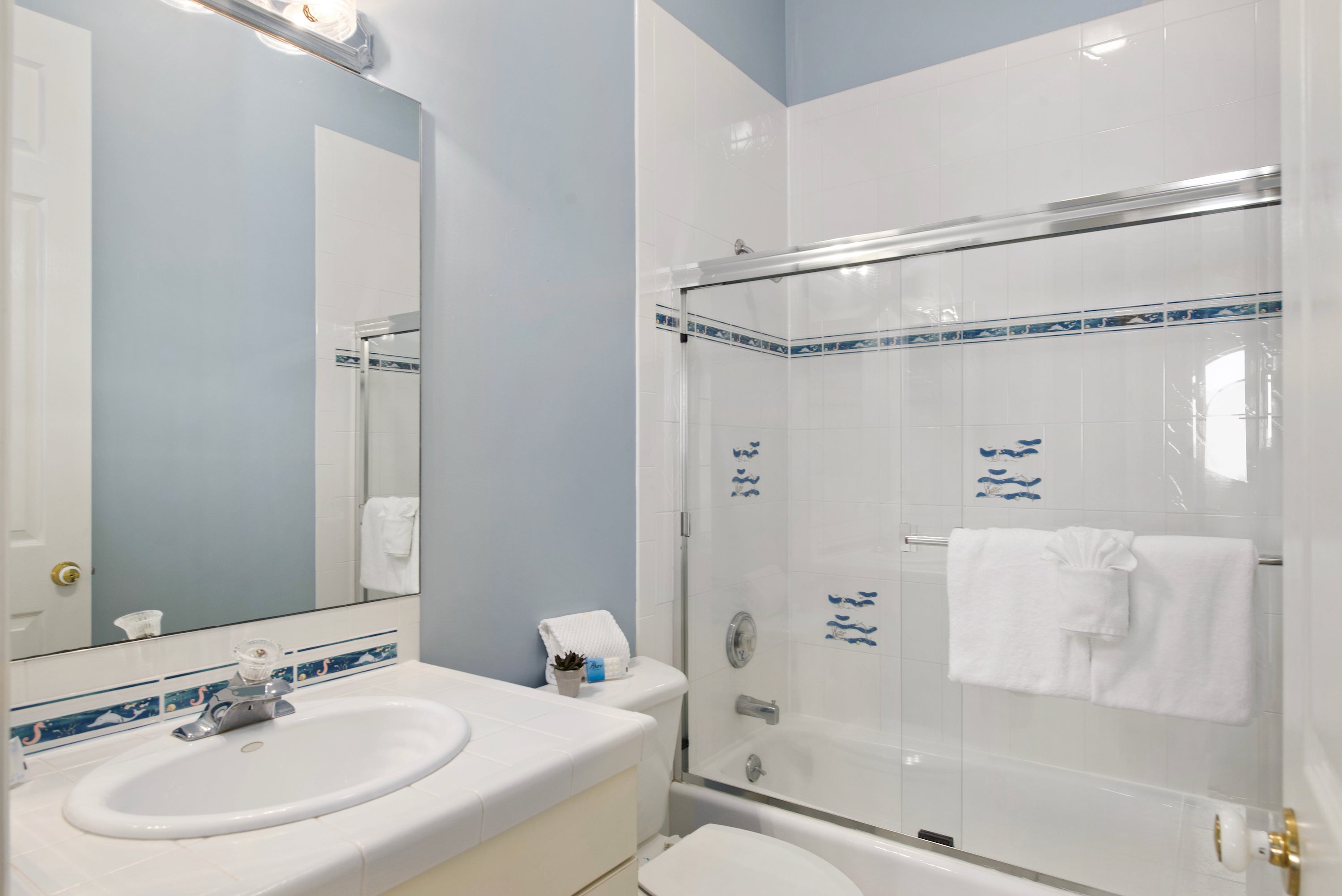 guest bathroom adjacent to guest bedrooms with Tub/ shower enclosure