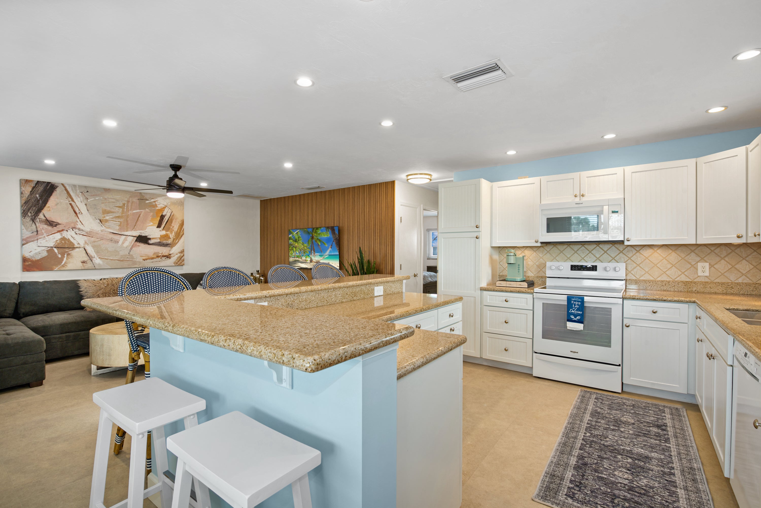 Welcome to your getaway at Endless Tides a 4-bedroom, 2-bath Duplex, conveniently located on South Island on Fort Myers Beach. This spacious duplex offers family or friends enjoyable space. Enjoy your morning coffee viewing the peaceful lake in your backyard, surrounded by lush landscaping, palm trees, and tropical flowers, while being just a block away from one of the most beautiful beach accesses on the island. Whip up a delectable breakfast in the fully equipped kitchen with plenty of counter space. You will find a master king bed, guest queen bedroom, full bathroom with walk-in shower, and living room and kitchen on both sides of the duplex. You don't have to worry about laundry both units have a washer and dryer. You can sleep 8 comfortably. After a fun day at the beach end the evening with a cookout and enjoy watching spectacular sunsets over the lake. Come make Endless Tides a tradition for years to come!