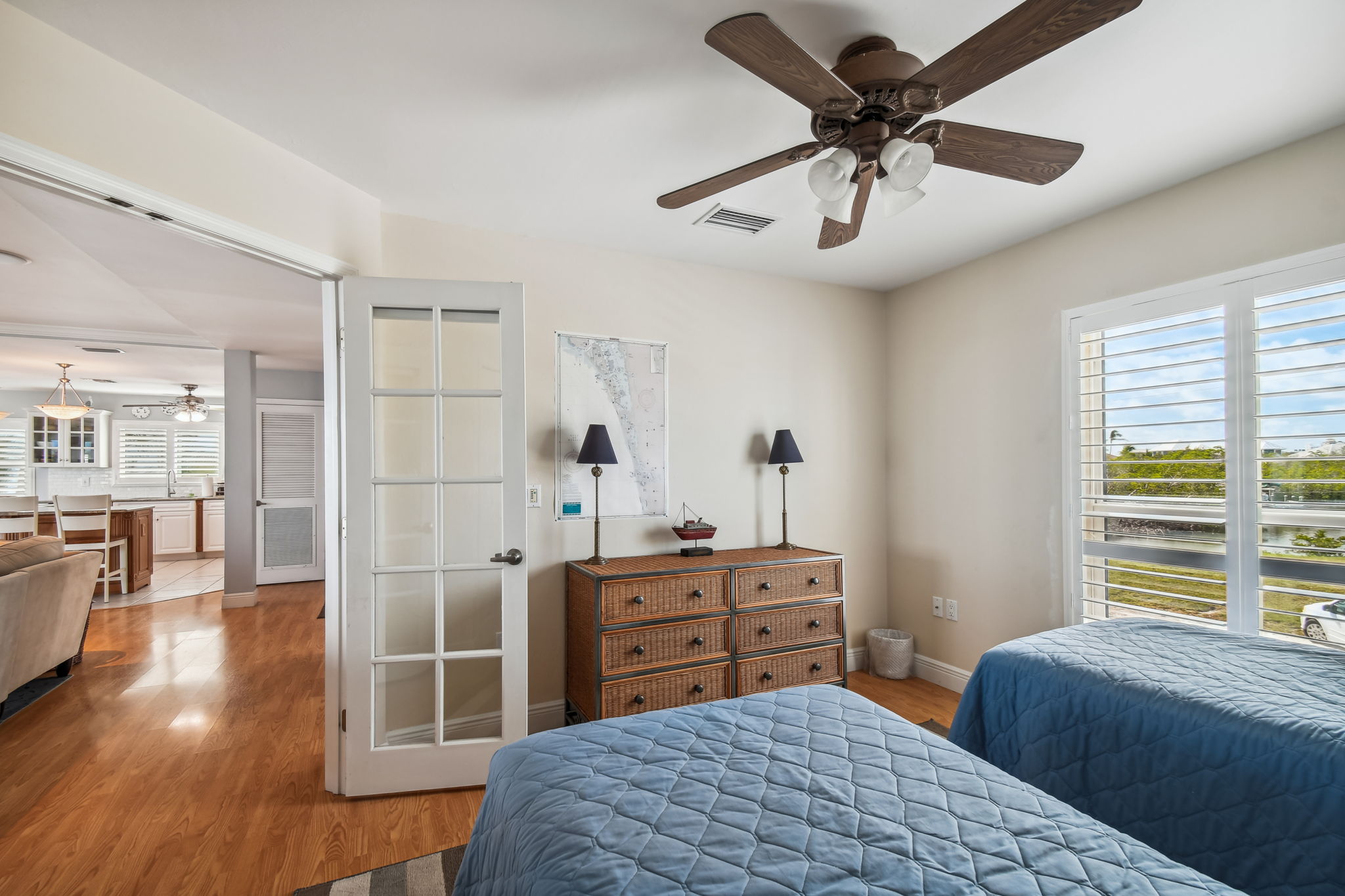 "This is a very nice & roomy house overall, it is not brand new but fairly well maintained. We enjoyed the bay side location & dock with lots of fishing and beautiful water views from the deck and living areas. It was quiet and away from the hustle & bustle. Lots of space for kids to play, good pool, short walk to huge beach. Good laundry arrangement. Lots of televisions. There is a daybed with a trundle located in the upstairs family room. It was not listed on with the available beds on the airbnb listing. It looks like a couch in the photos. However there are no blinds on the windows in that room. There is basically one main street through the island, so be prepared for delays in traffic during high season."