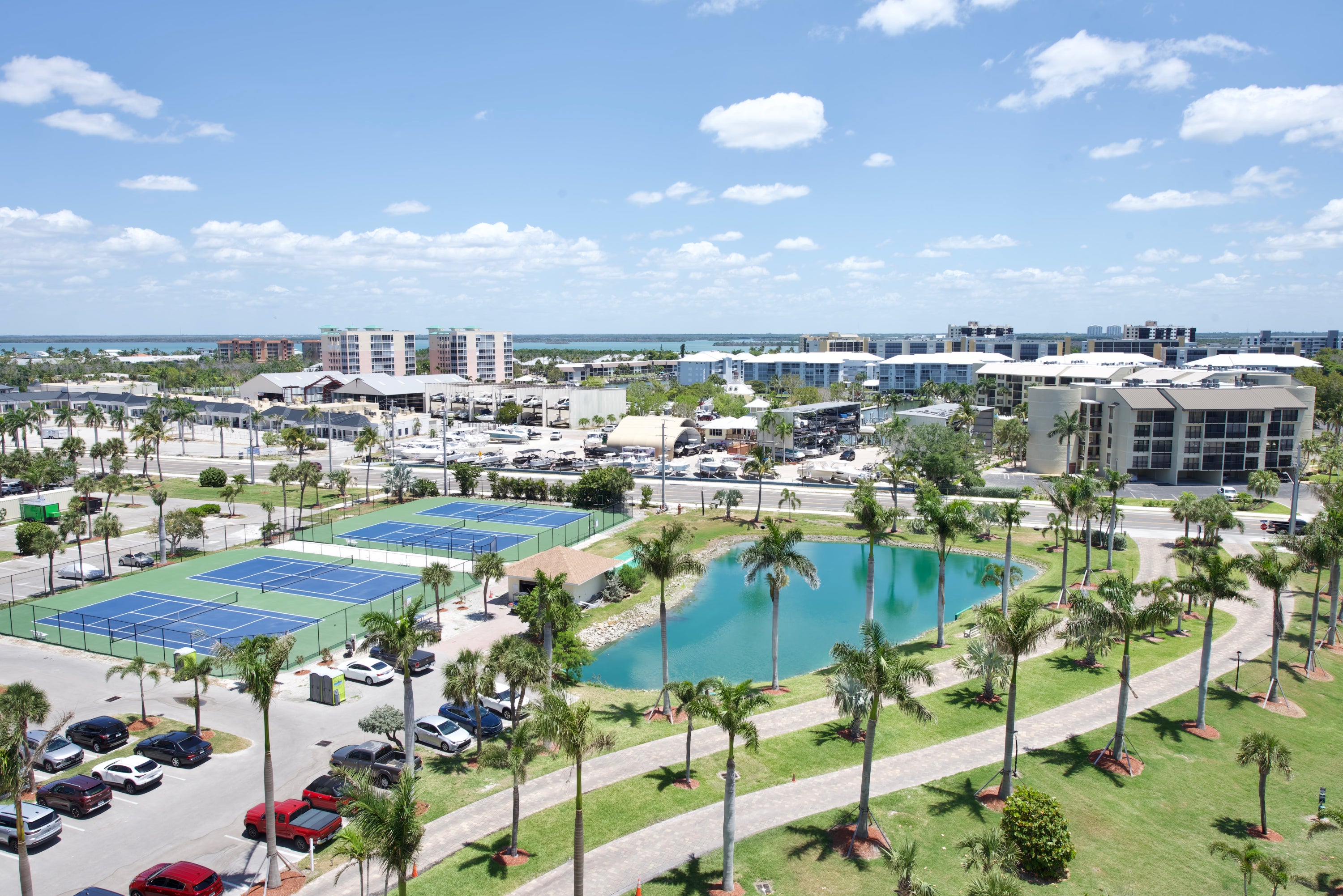 Estero Beach and Tennis Club is located on the South end of Fort Myers Beach. Situated directly on the beach, this complex is made of three 12-story high rise buildings for a total of 296 units. A community pool, tennis courts, pickleball courts and a bbq area make this community have something for everyone. Unwind on 10 acres of lush landscaping and pristine beaches.