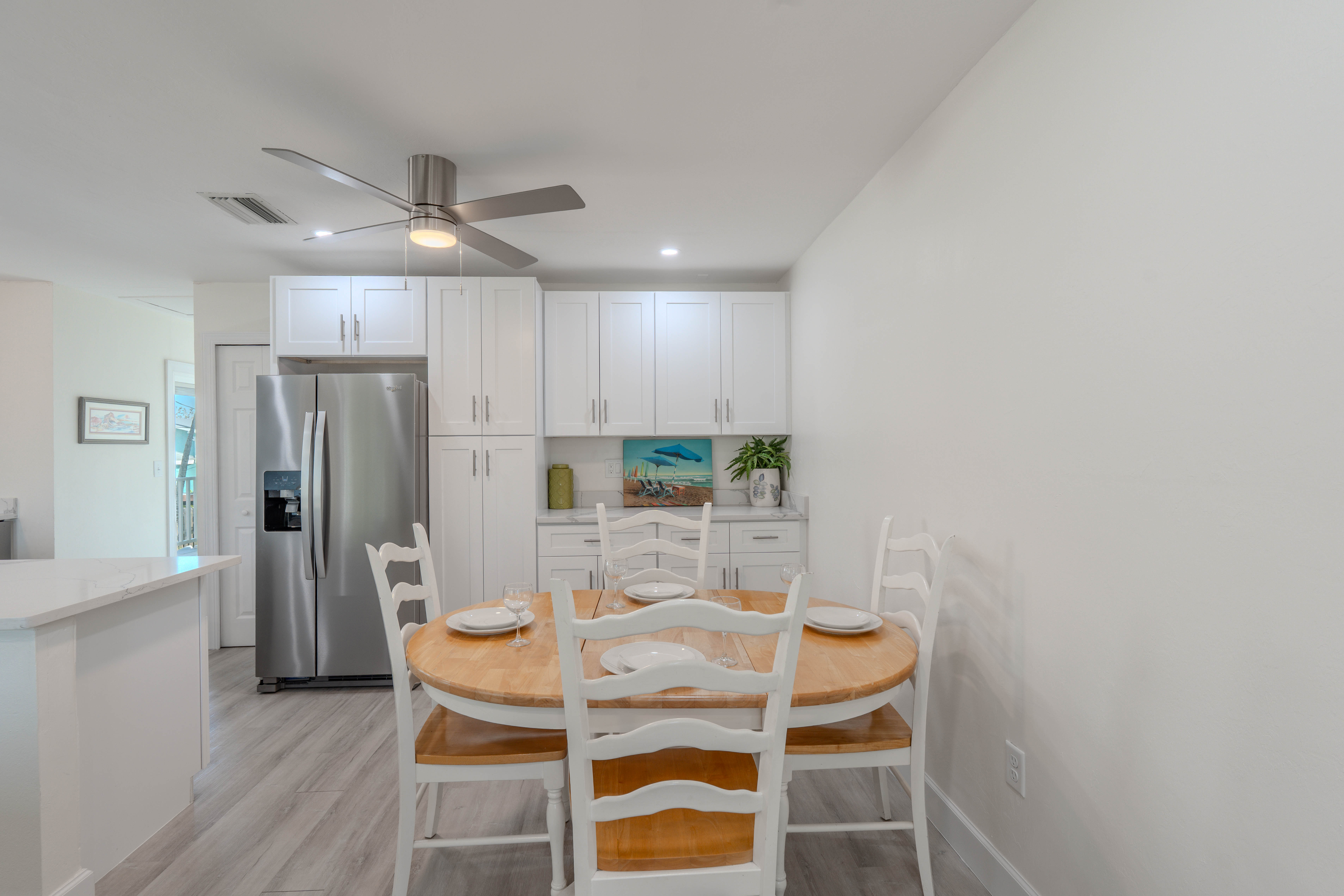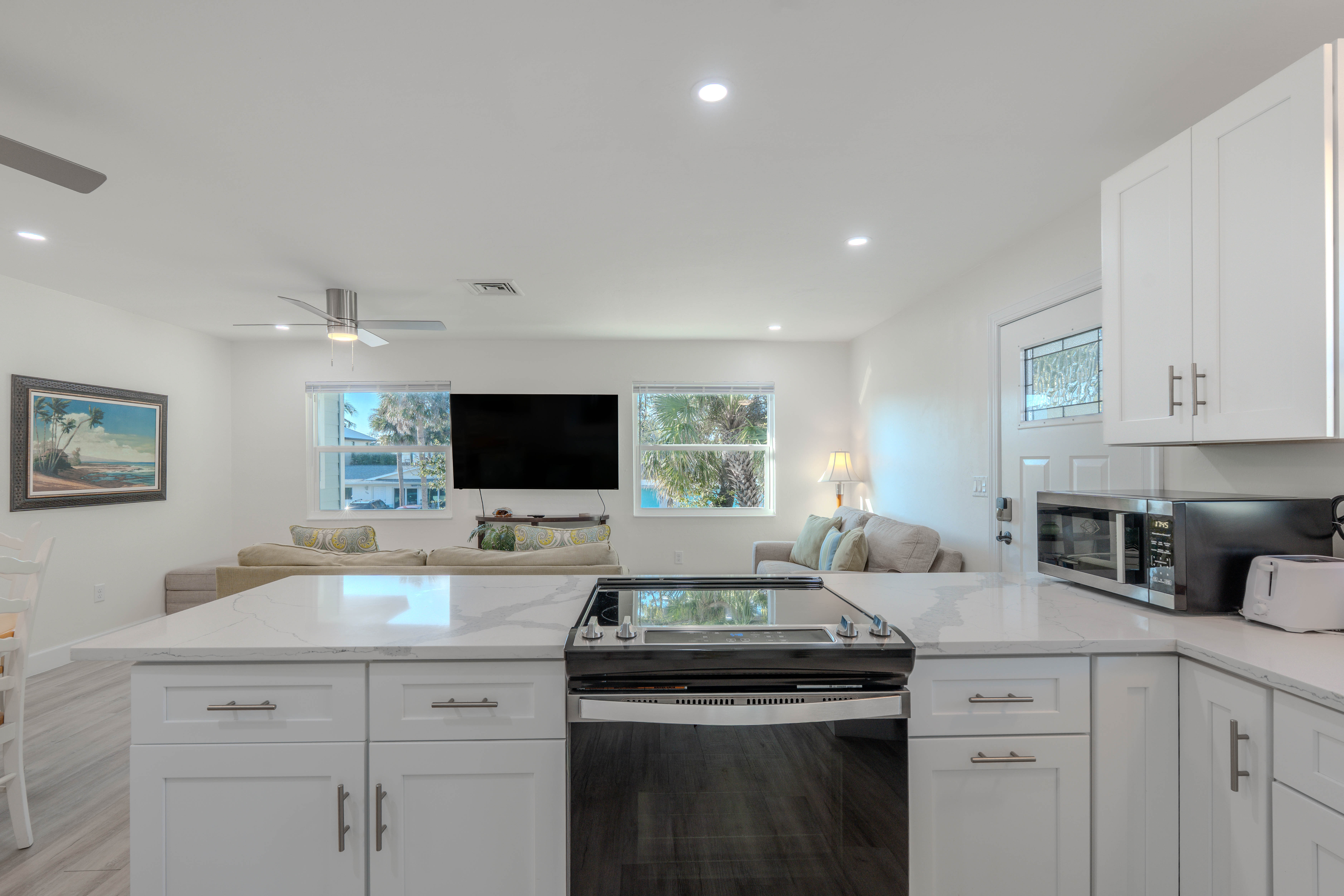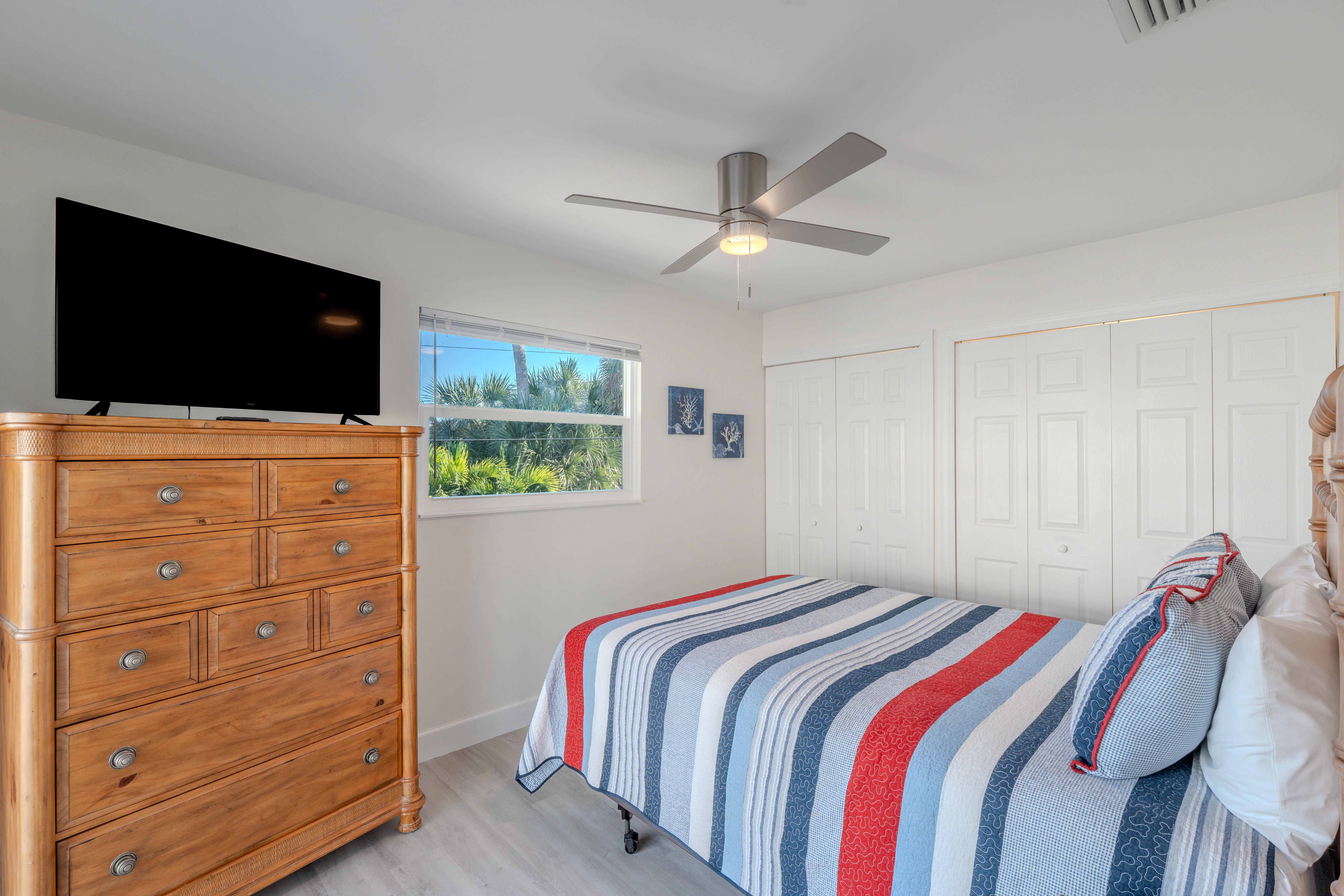 Welcome to your perfect beach escape at Euca Beach Breeze, a charming 2-bedroom, 1-bath duplex just a short walk or bike ride from the sugar-white sands and sparkling Gulf waters of Fort Myers Beach. This bright, freshly updated coastal retreat is designed for easy, carefree living, featuring an open-concept living area with comfortable seating, a smart TV, and beach-inspired décor that instantly sets the vacation mood. The fully equipped kitchen includes modern appliances, cookware, and utensils, making it simple to prepare meals or snacks between beach adventures. After a day in the sun, unwind in one of the two cozy bedrooms — a primary bedroom with a queen bed and ample closet space, and a second bedroom with two twin beds, ideal for kids or friends. A full-size sleeper sofa in the living room offers extra space for additional guests, and the clean, updated bathroom provides everything you need, including soft towels. This welcoming beach retreat is the perfect place to relax, recharge, and enjoy the best of island living.