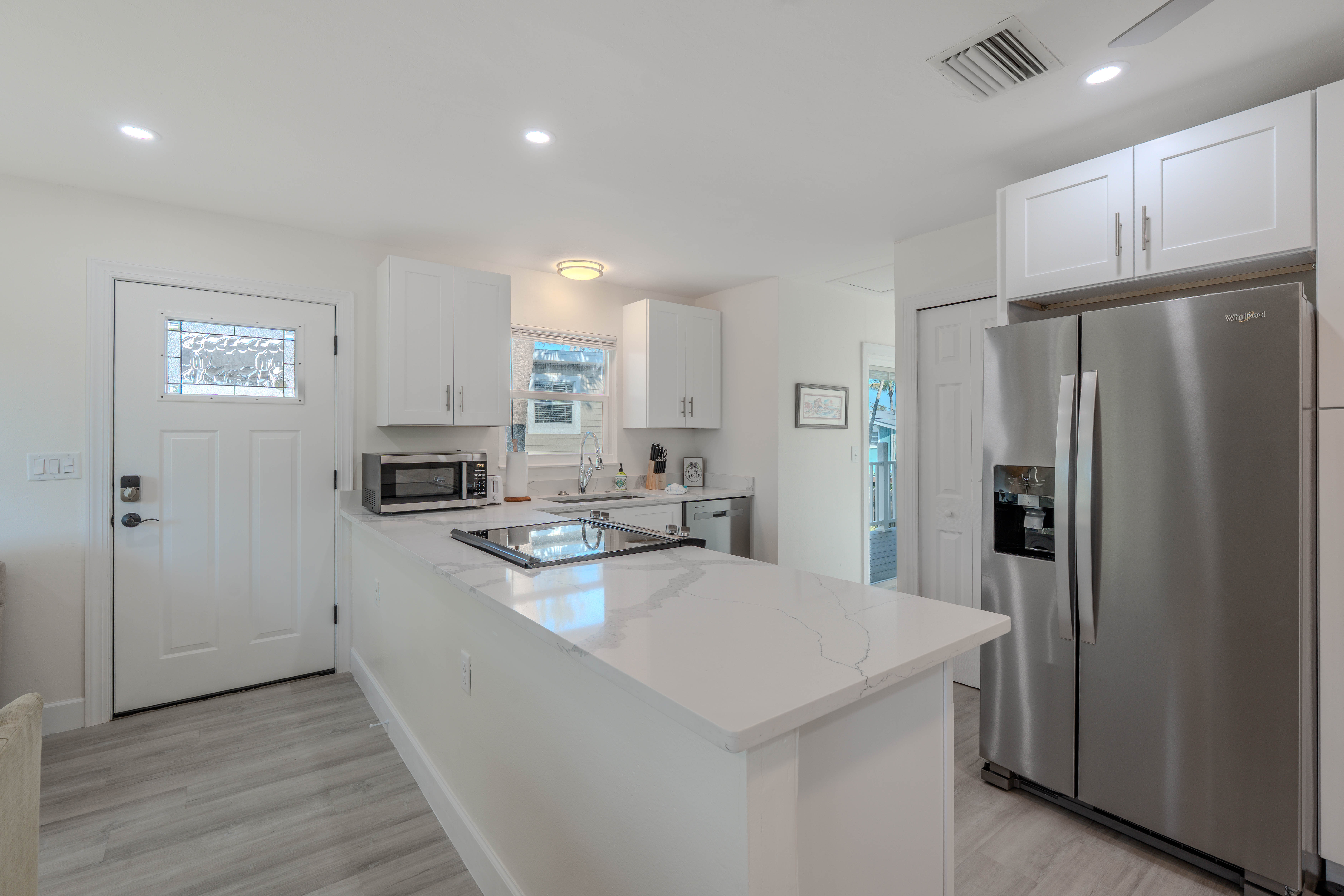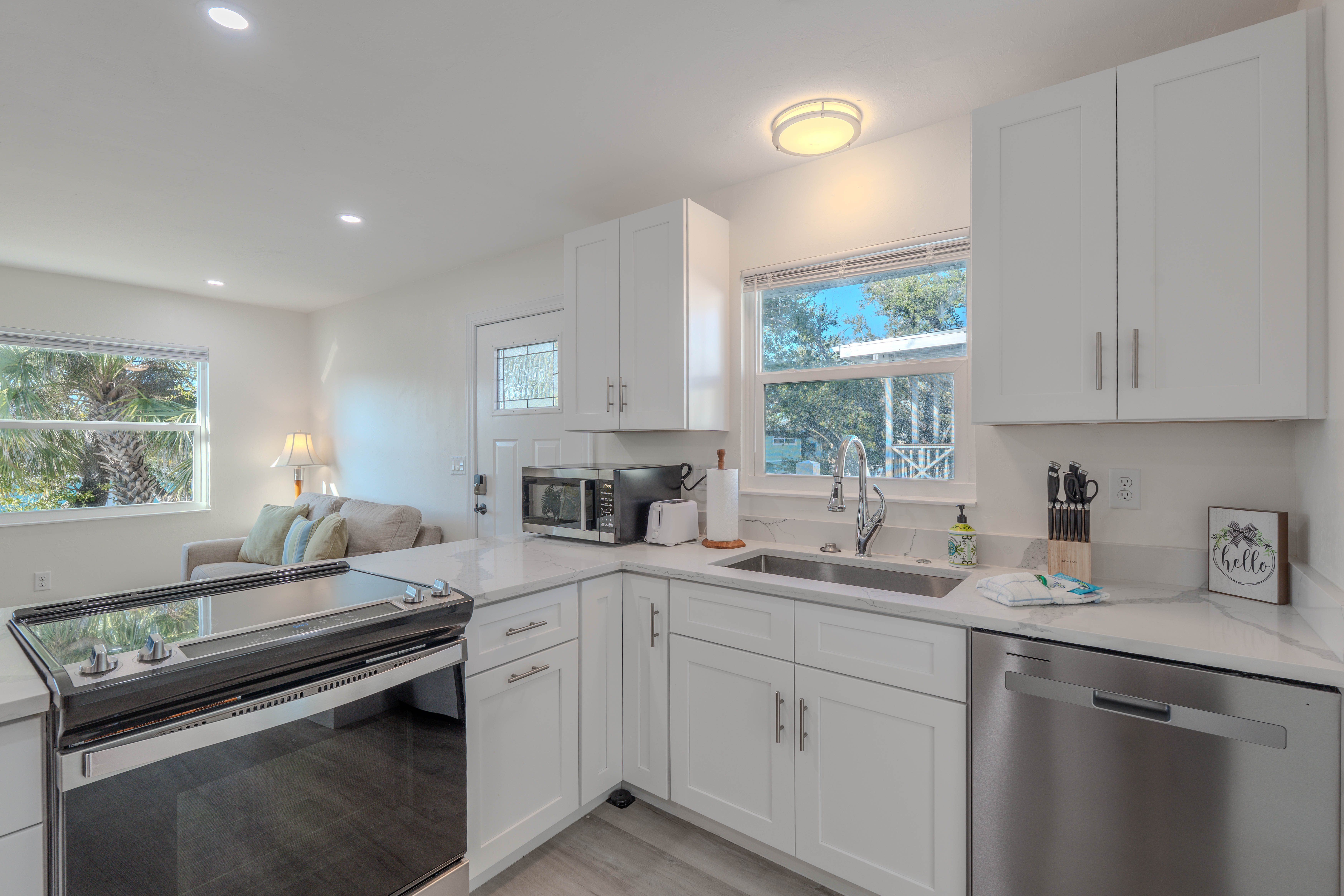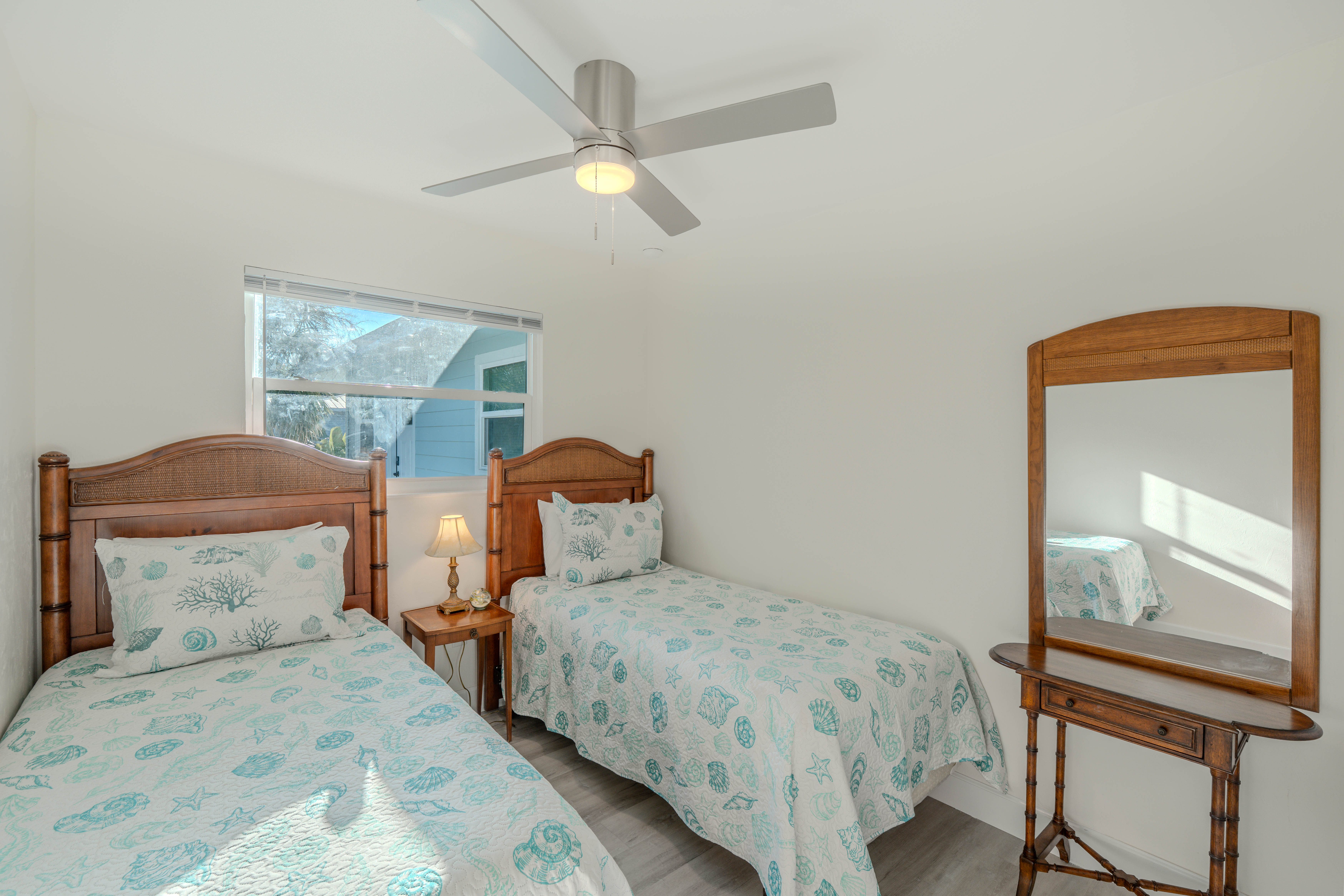 Welcome to your perfect beach escape at Euca Beach Breeze, a charming 2-bedroom, 1-bath duplex just a short walk or bike ride from the sugar-white sands and sparkling Gulf waters of Fort Myers Beach. This bright, freshly updated coastal retreat is designed for easy, carefree living, featuring an open-concept living area with comfortable seating, a smart TV, and beach-inspired décor that instantly sets the vacation mood. The fully equipped kitchen includes modern appliances, cookware, and utensils, making it simple to prepare meals or snacks between beach adventures. After a day in the sun, unwind in one of the two cozy bedrooms — a primary bedroom with a queen bed and ample closet space, and a second bedroom with two twin beds, ideal for kids or friends. A full-size sleeper sofa in the living room offers extra space for additional guests, and the clean, updated bathroom provides everything you need, including soft towels. This welcoming beach retreat is the perfect place to relax, recharge, and enjoy the best of island living.