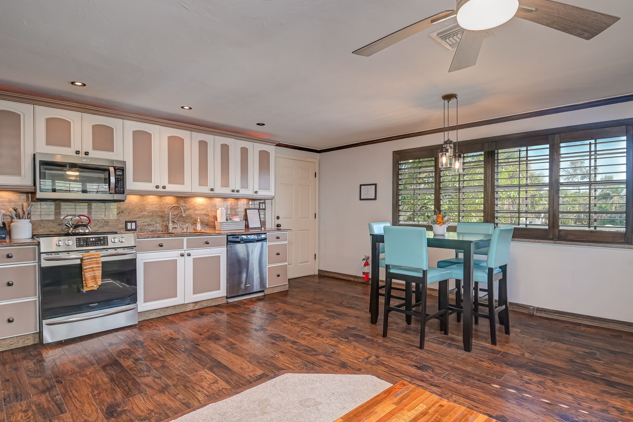 Enjoy a quick bite in either fully equipped kitchen before heading to the beach, or relax in the cozy living rooms with a movie after a day in the sun. Outside, the backyard oasis offers a grill, outdoor dining, and a separate laundry space. Have some fun with a game of ping pong, or cool off in the screened-in pool area.