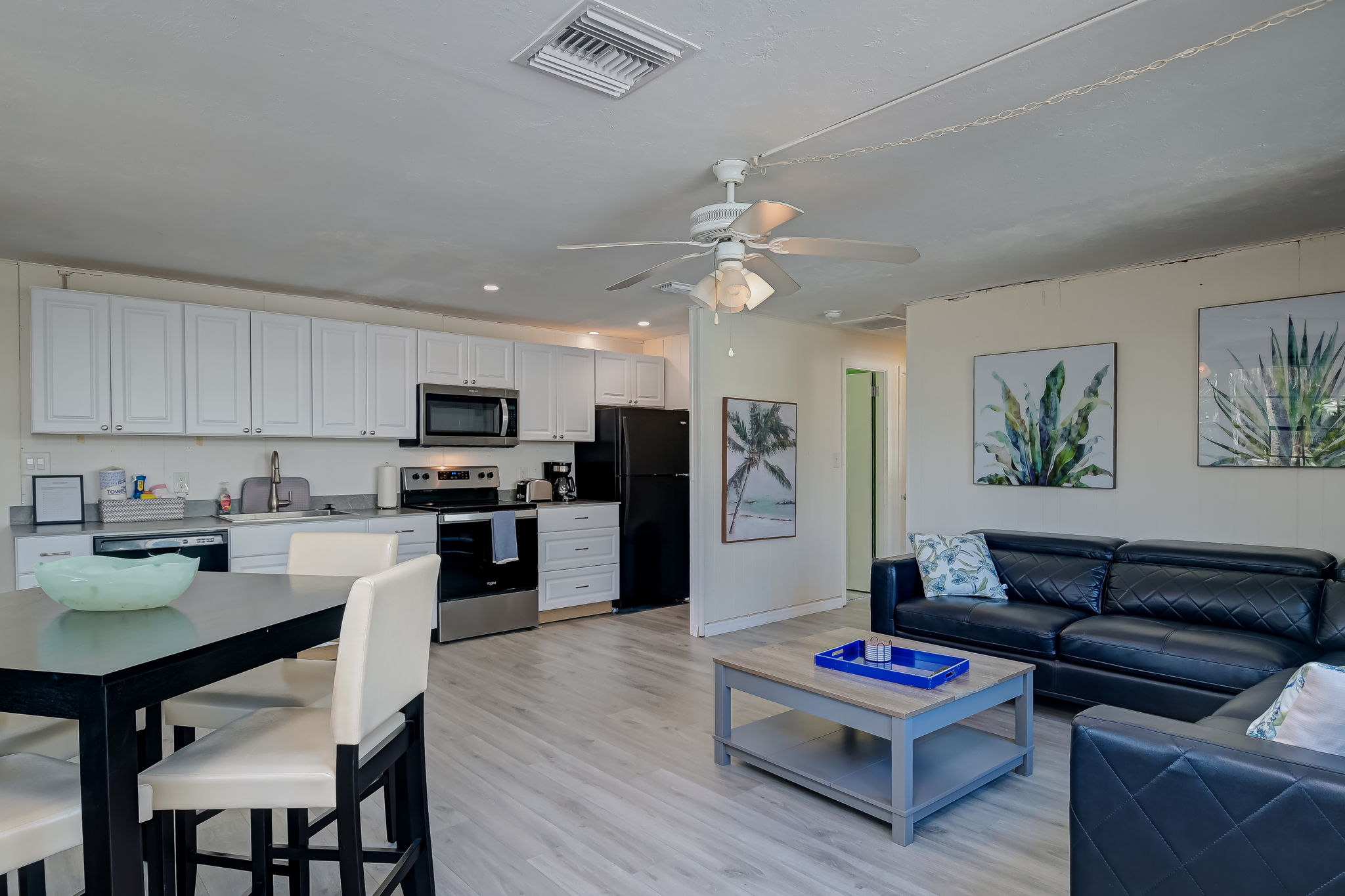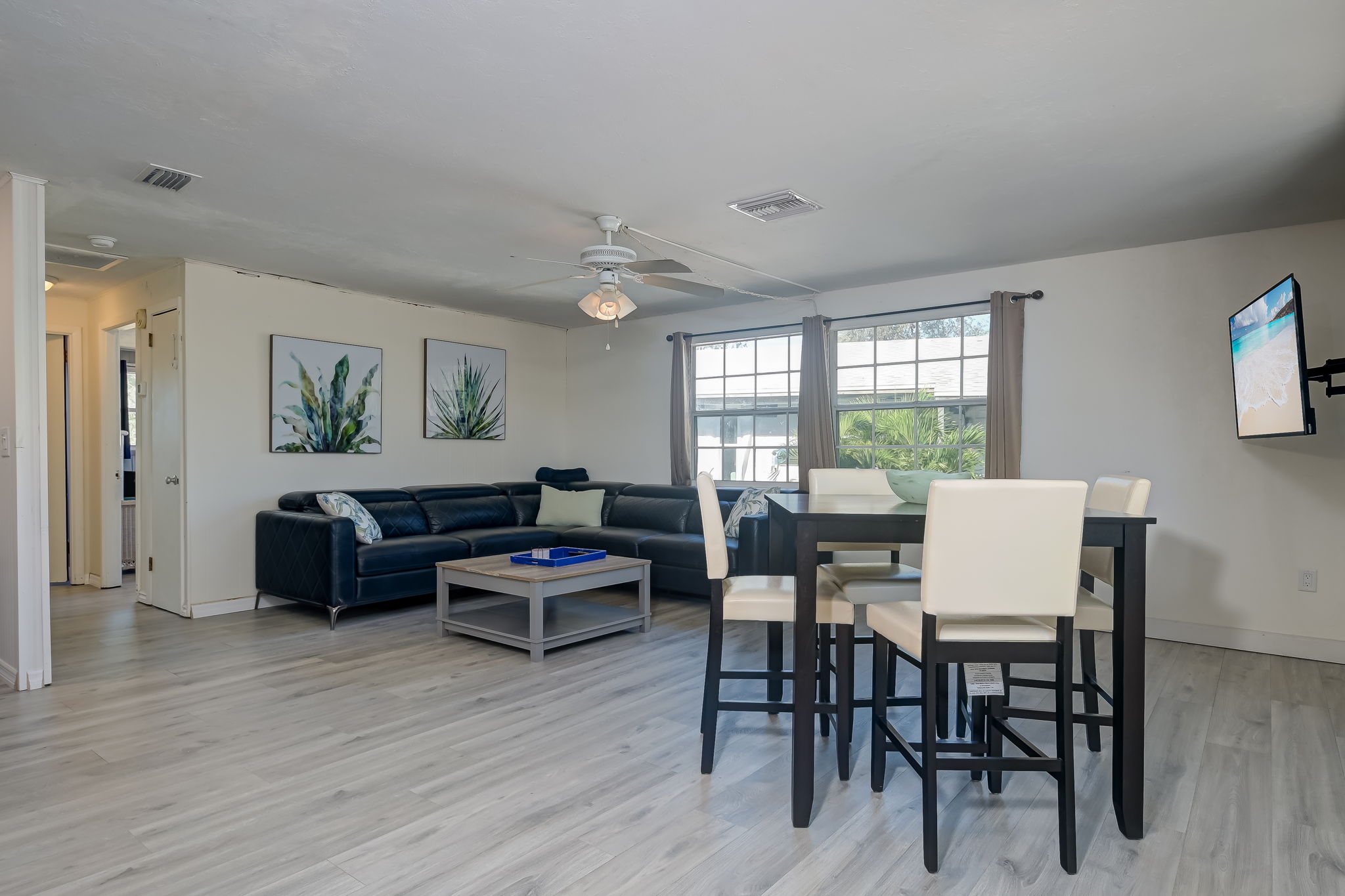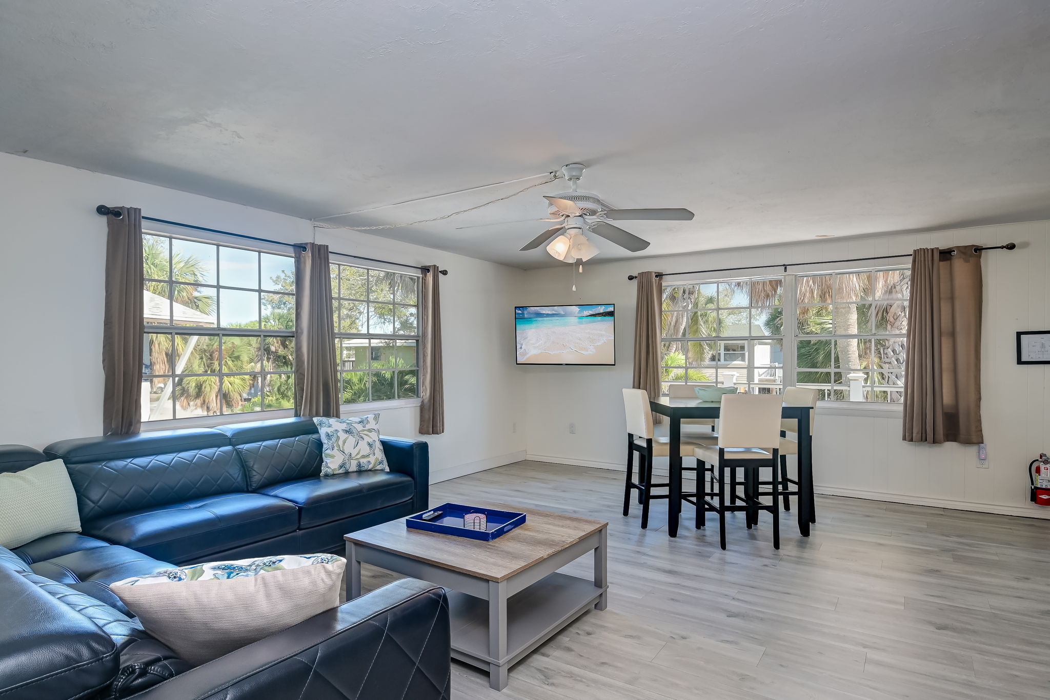 Eucalyptus A is a charming 4-bedroom, 2-bath duplex with coastal flair, perfectly situated mid-island. Each side has its own private entrance with no interior connection, making it great for families or groups traveling together.