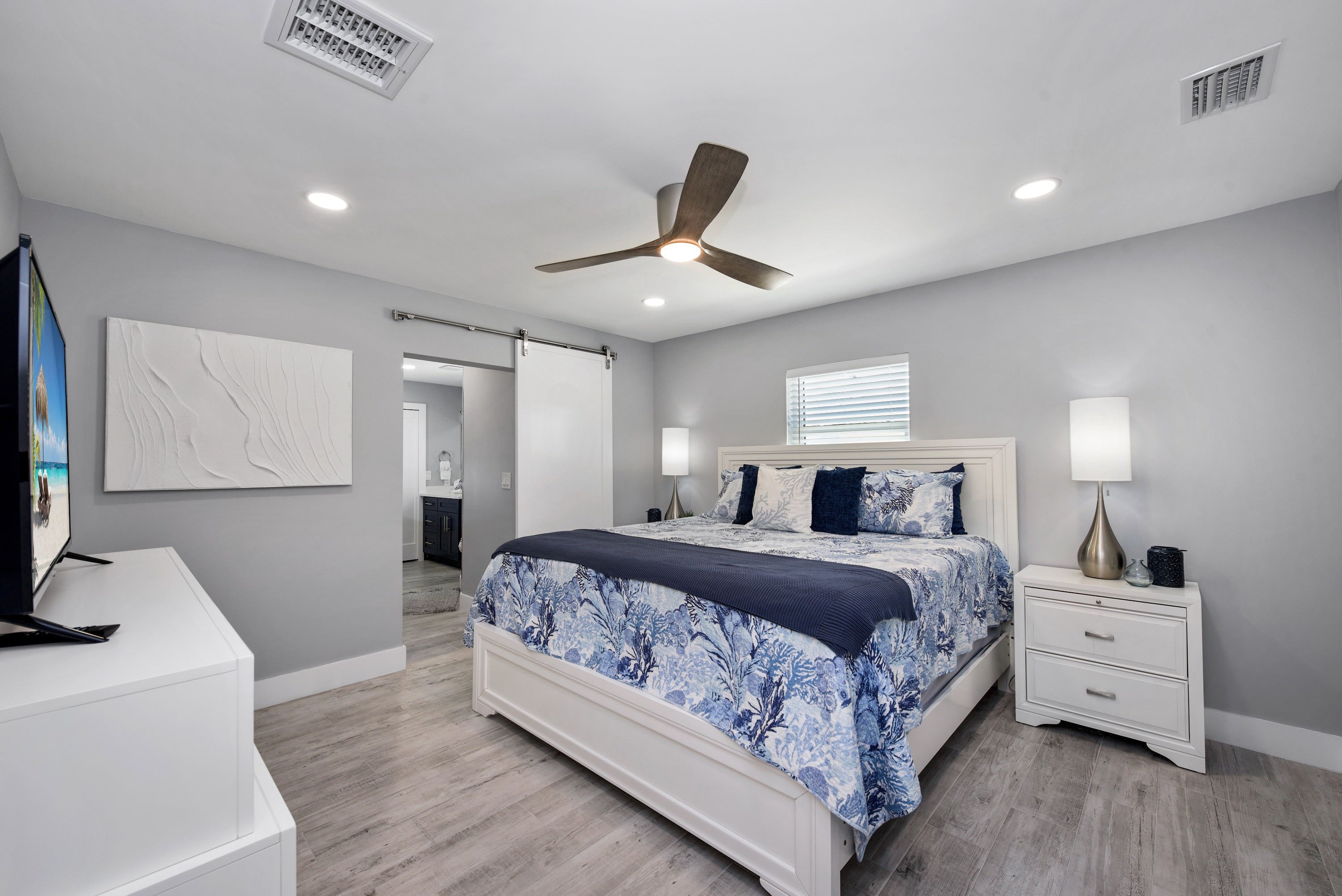 Flight of Albatross stands as a beacon of coastal luxury and relaxation. Situated on the South end of Fort Myers Beach, this stunning 3 bedroom, 3 bath home offers an unparalleled blend of modern comfort and quintessential coastal charm, open floor plan and promising an unforgettable escape for those seeking the ultimate vacation retreat. When you walk in, you will be greeted by an open floor plan, including a fully stocked kitchen, a quartz island with stools for extra seating and a dining table that seats six. An over-sized sunken living room with gorgeous leather chairs and couch overlooking the pool and canal. Relax in the master bedroom with a king bed and ensuite bathroom. The 2nd bedroom also has a king bed and ensuite bathroom, and the 3rd bedroom includes two twin beds. Wander outdoors to the pool with a spill over spa and beautiful views of the canal. You’ll never know what wildlife will come up behind the house. Bring your kayak and paddle board to explore the area. With a washer/dryer, WIFI, and other modern conveniences, you'll have everything you need for a memorable stay. Come make lasting memories at Flight of Albatross.