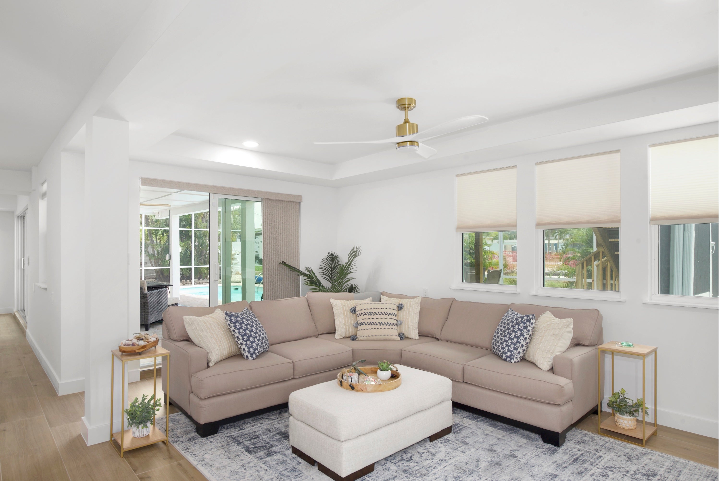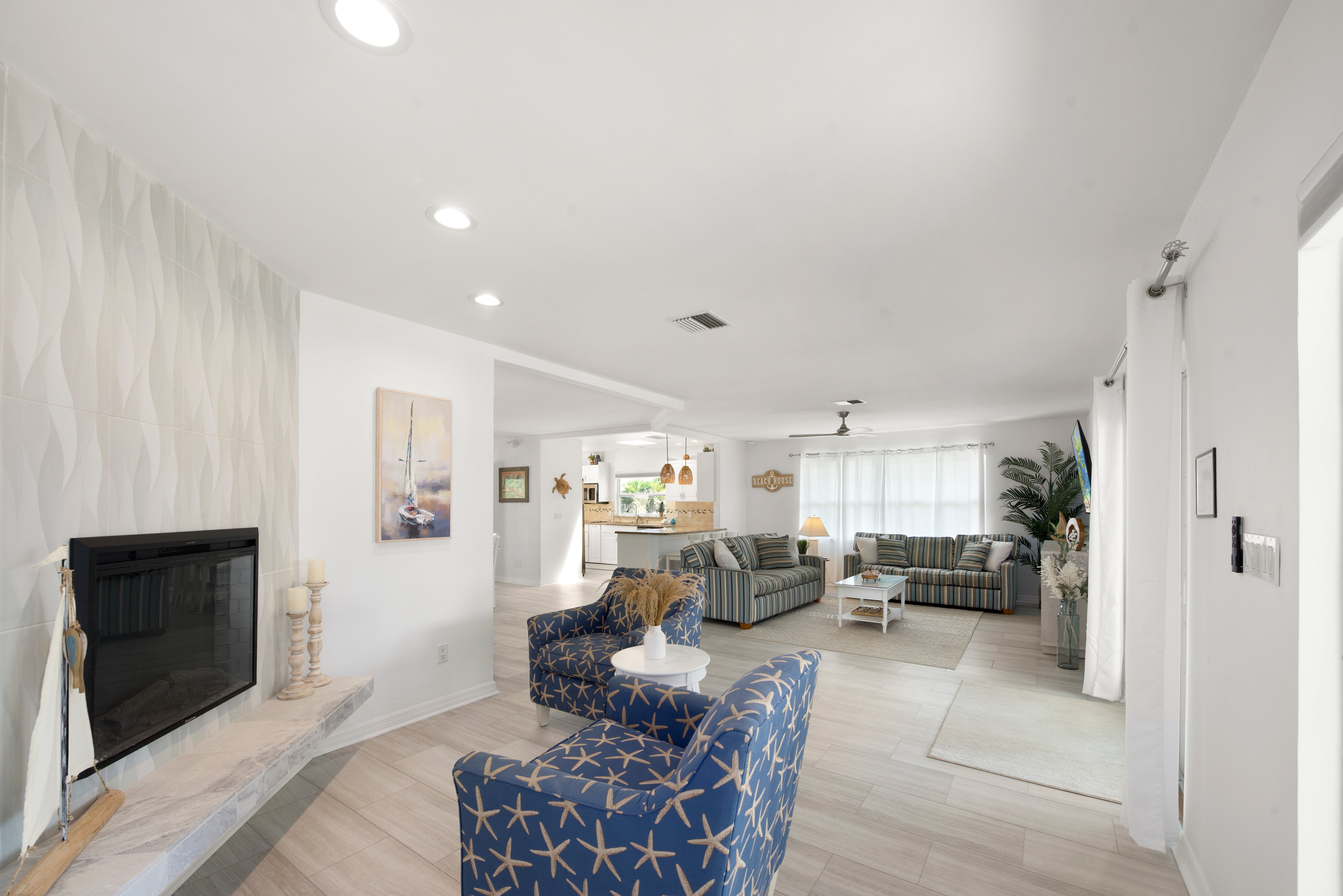 Welcome to your dream oasis vacation rental, Gone Coastal. A newly renovated 4-bedroom home with a sparkling pool that promises the ultimate in comfort, luxury, and relaxation. Step inside, and you'll be greeted by a beautiful interior that seamlessly blends the open floor plan with modern elegance with coastal charm. The spacious open floor plan invites you to unwind and entertain with ease. Sunlight streams through large windows, illuminating the stylish furnishings and tasteful decor. The living area beckons you to kick back and relax, while the fully equipped kitchen is a chef's delight, featuring sleek countertops, stainless steel appliances, and space for culinary adventures. Four thoughtfully appointed bedrooms offer tranquil sanctuaries for rest and rejuvenation. Each room is meticulously designed with your comfort in mind, boasting plush bedding and soothing color palettes. Wake up refreshed and ready to embrace another day in paradise. Step outside to your private outdoor oasis, where a sparkling pool awaits. Surrounded by lush landscaping and swaying palms, the pool area is an inviting haven for soaking up the Florida sunshine or enjoying a refreshing dip. Lounge on the poolside patio, sipping your morning coffee or gathering with loved ones for an alfresco meal under the stars, plenty of seating for both relaxing and dining. An added bonus includes a bar/mini-kitchen poolside, In the upstairs dining room there are card games in the drawer, a putting green in the family room, and corn hole is now located outside. Come make unforgettable memories at Gone Coastal.