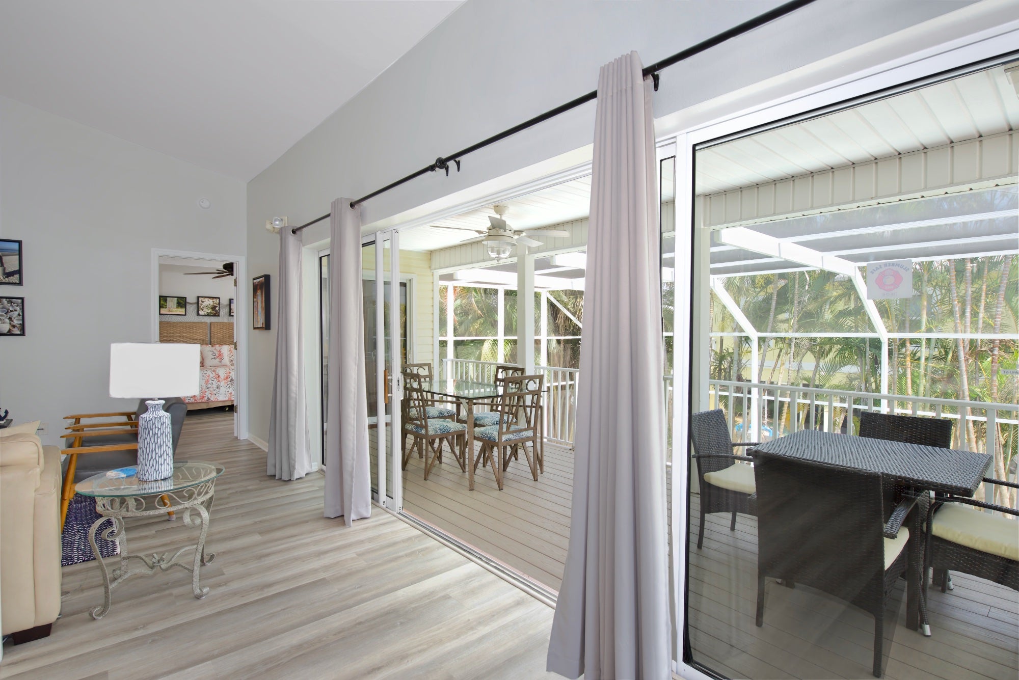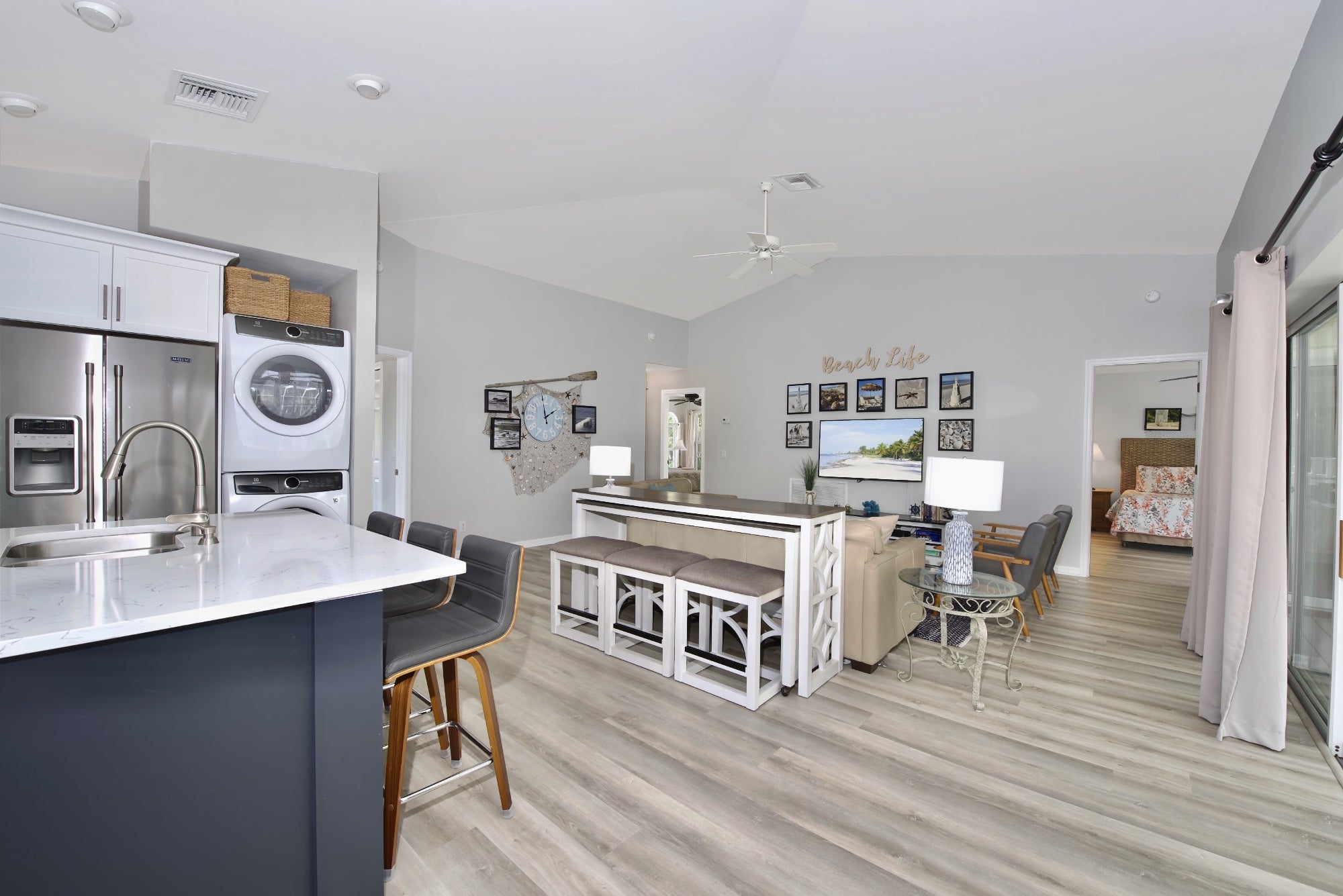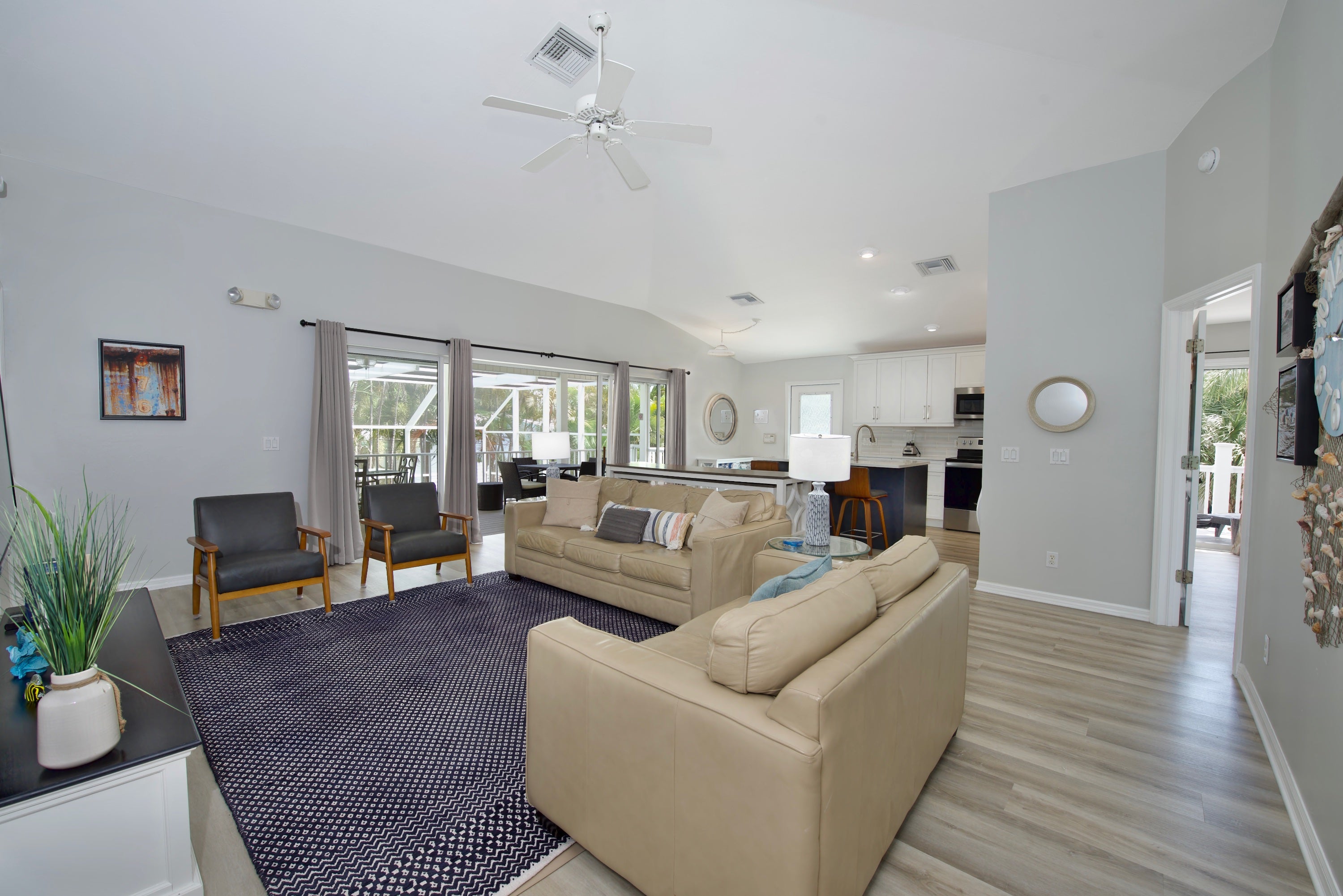 Hidden Treasures is a beautifully decorated 3 bed, 2 bath North Island home on Fort Myers Beach. Vaulted ceilings, coastal décor, and an open floor plan flood the home with natural light. Have the chef of the group whip up a scrumptious meal in the kitchen featuring stainless steel appliances, plenty of prep space, and a breakfast bar. The living room offers plenty of seating and a large flat screen TV. Sliding glass doors lead from the living area to the covered lanai, a perfect space for your morning coffee or to dine al fresco. Unwind in the primary bedroom which offers a king bed, flat screen TV, balcony access and beautiful en suite. There are two guest bedrooms both with king beds plus a sleeper sofa in the living room. This home sleeps up to 8 guests comfortably. Outdoors there is lush landscaping, heated pool with spill-over-spa, and shaded pool side lounge area. The pool and lanai area are screened in which is great to enjoy the area with minimal bugs or debris. A washer and dryer, gas grill, two beach chairs, umbrella, and wagon complete this home. Come see why Hidden Treasures will be a favorite for years to come.