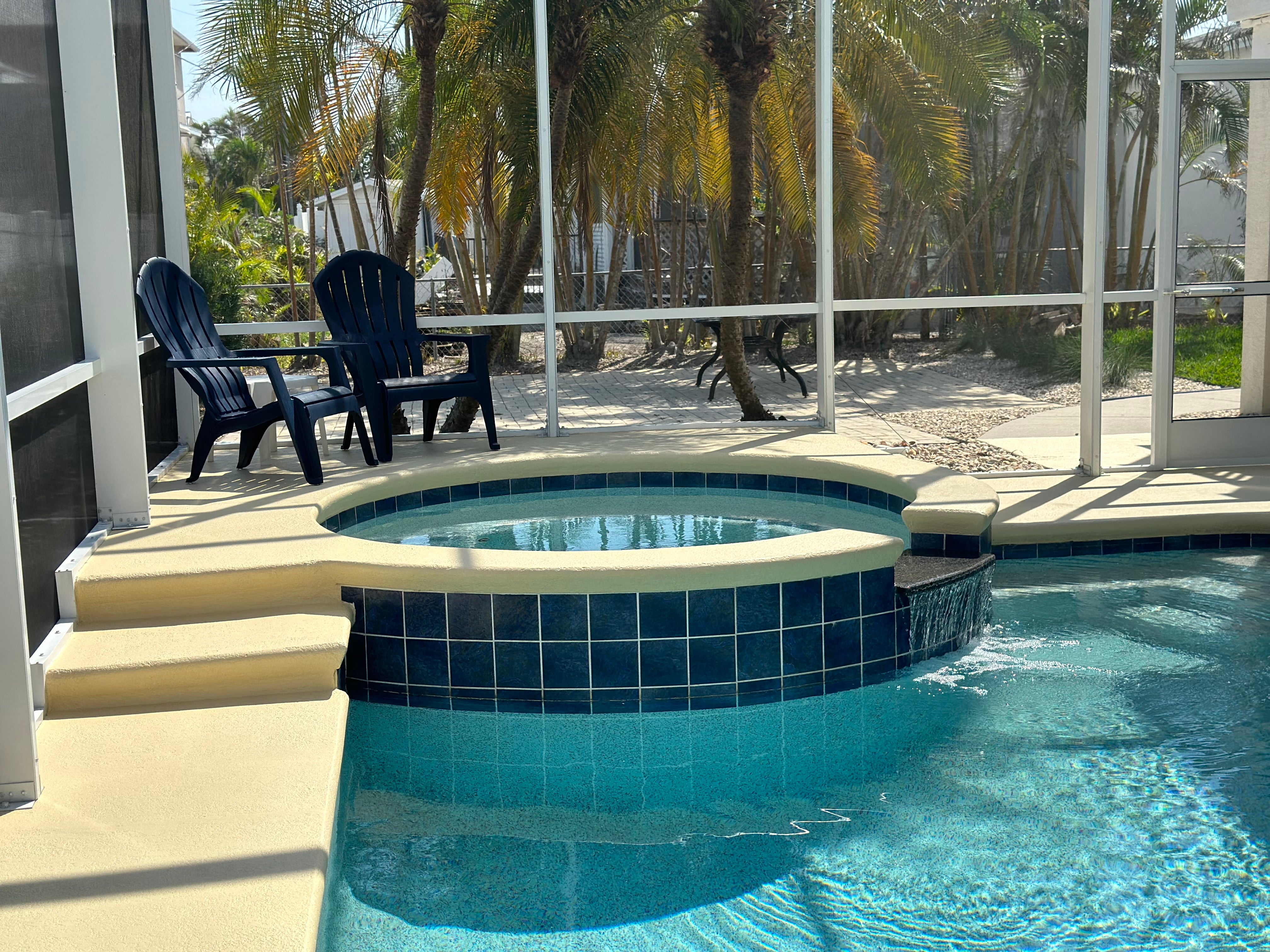 "The area is still coming back from Hurricane Ian but is getting there. The house was nicely furnished, very clean, new kitchen and beautiful bathrooms. Very comfortable beds with nice linens. Nice new, fluffy towels. Pool heated, hot tub nice but no instructions, had to figure it out for ourselves. Was told chairs and umbrella available but 2 chairs for house that sleeps 6-8 makes no sense. Umbrella was broken. Kitchen stocked with dishes, glasses, pots,etc but no coffee filters for machine. You need to bring everything if you plan to cook…nothing there, not even salt and pepper. Management company was responsive."