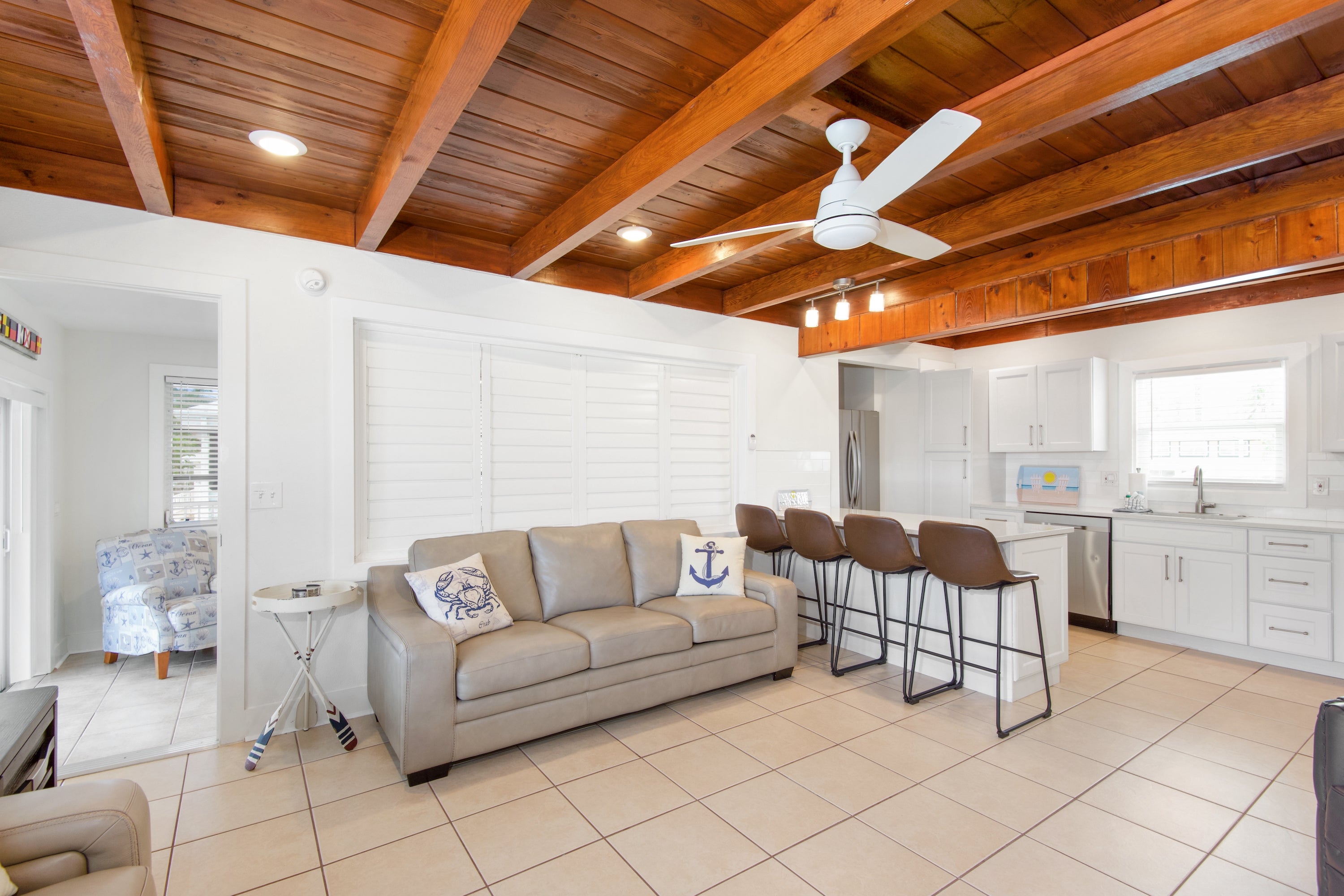 "The house was clean and well maintained. The distance to the beach was perfect and the cabana on the beach was a nice bonus. The only reason i gave 4 stars is because the bathroom in the master was so tiny and you had barely room to turn around. We are a family of 6 foot and above. But otherwise great property. The screened in porch was great."