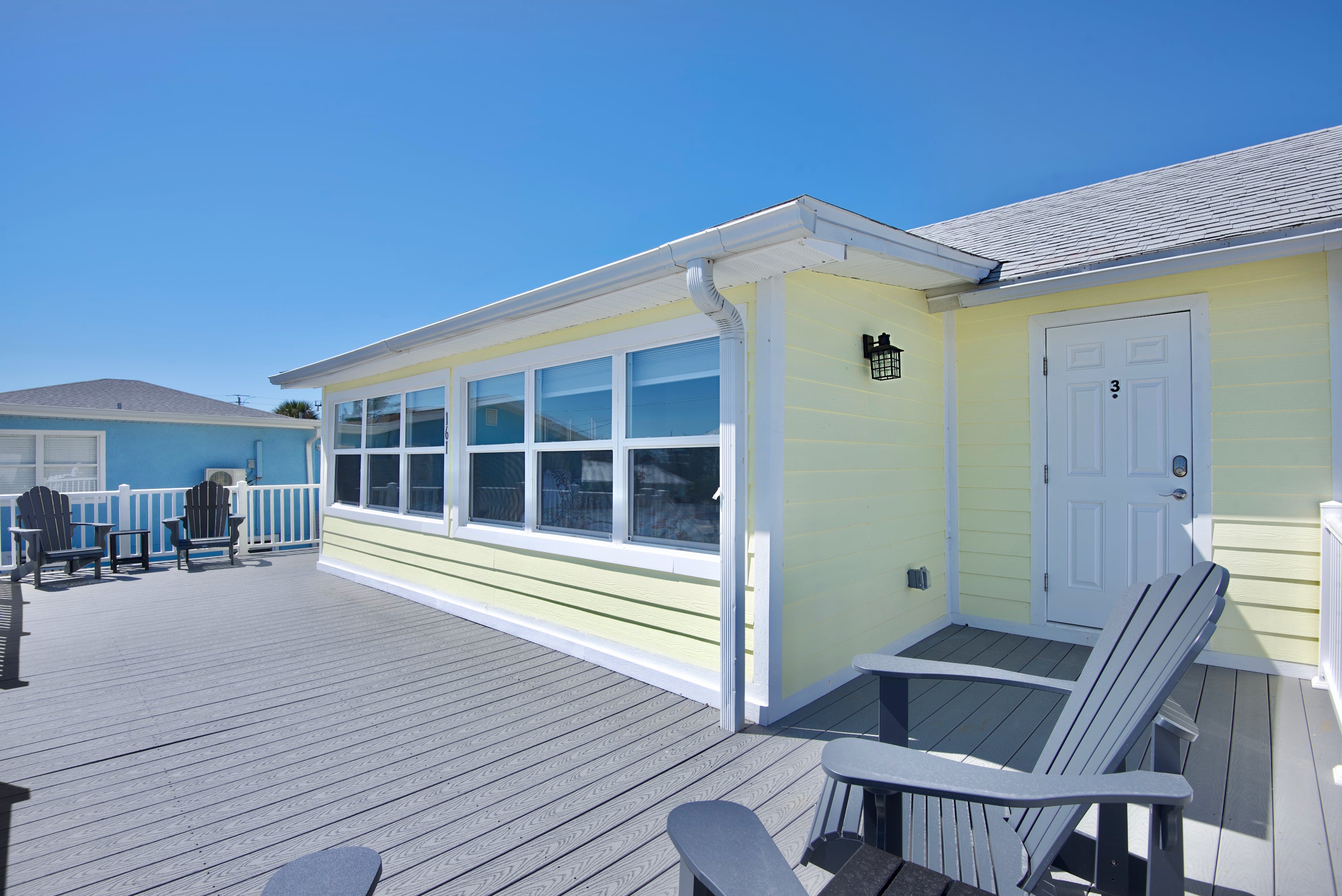 "Island Paradise 3 Mermaid: short walk to beach (cross over Estero Blvd). Nice furnishings. Clean. Fluffy white towels. Soft bed in very small bedroom. Only 1 set of sheets with 2 pillow cases. No sheets for pullout. 3 soaps just made it for 4 days. As in posting, no shampoo, moisturizer or beach towels. If cooking, bring your own spices and kitchen towel. Happy to find 2 chairs and umbrella inside. Cart under deck made it easy to wheel chairs and stuff to beach.