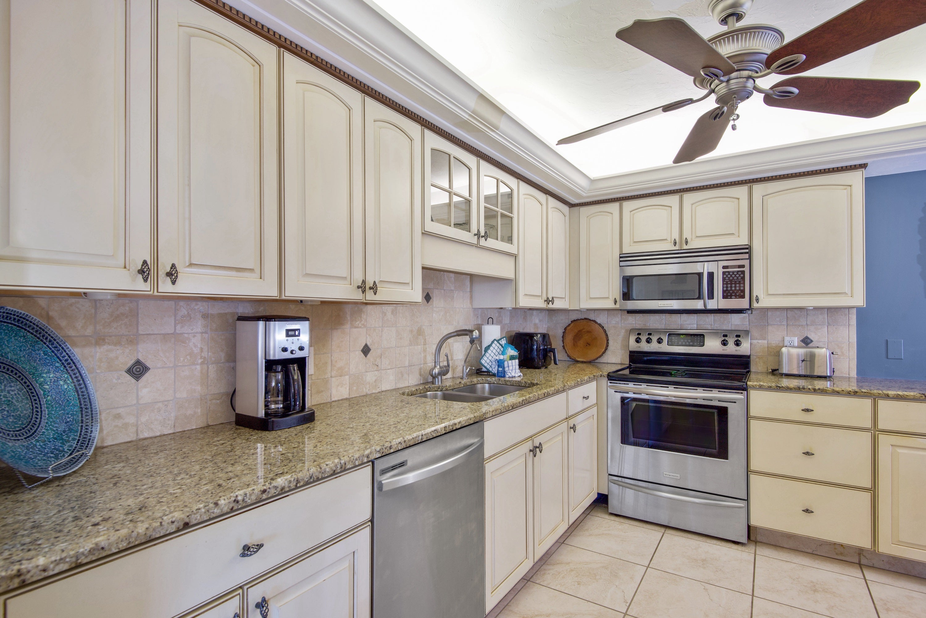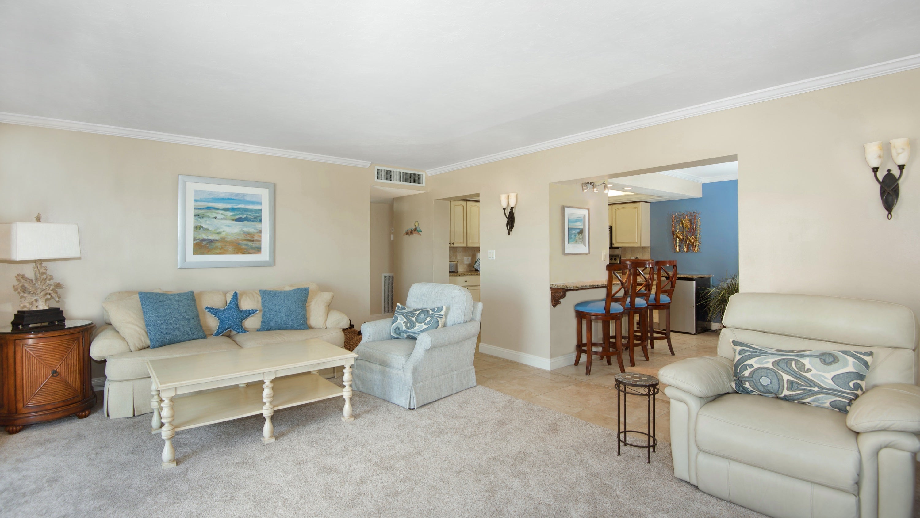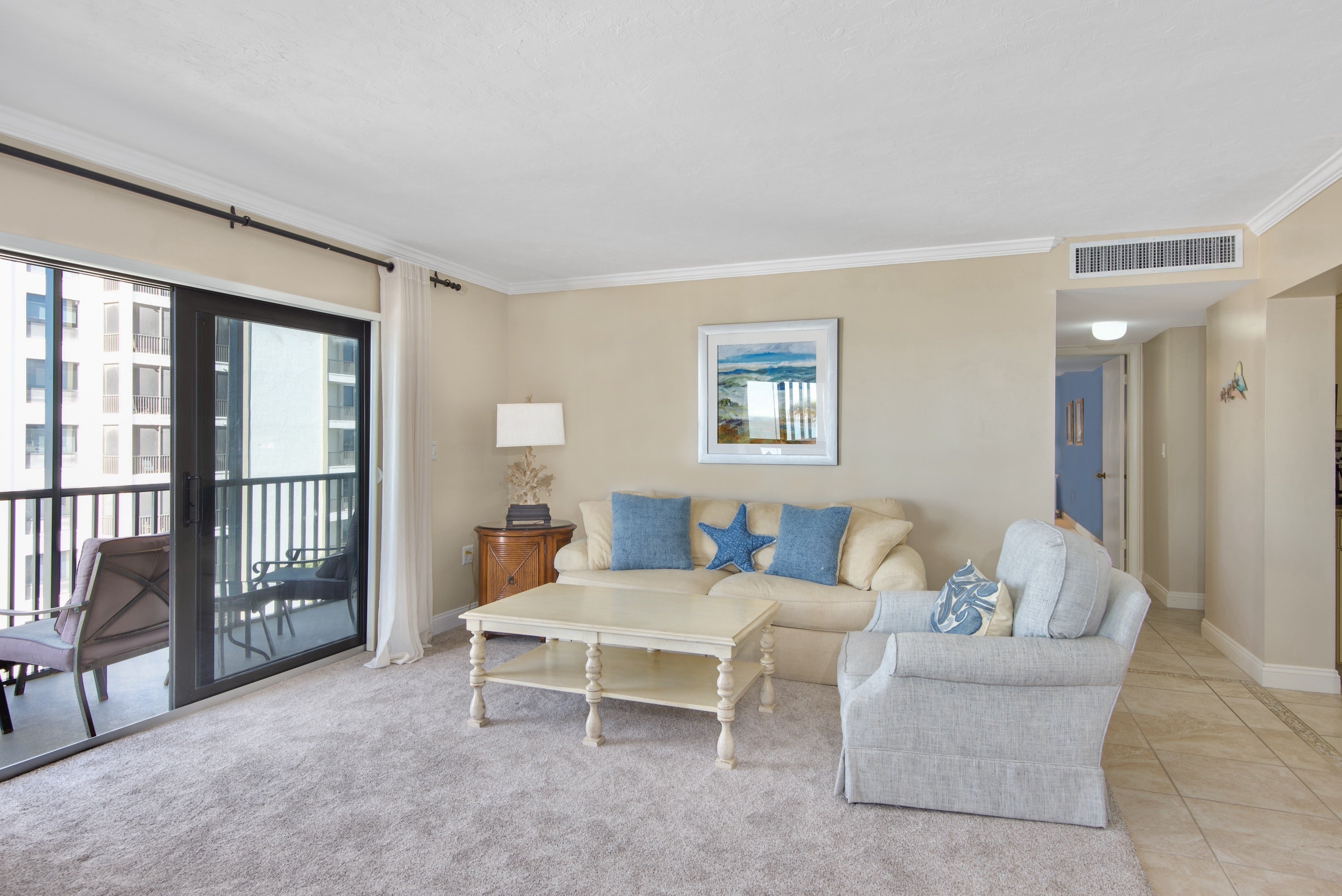 "The unit itself is amazing, with wide sweeping views of the beach. Well appointed, we were able to cook just about anything and utilized the grill in the common area often. The beds are comfy and the unit was sparkling clean. You will have to buy every single condiment as the unit didn't even have salt and pepper. The beach is wide, at least a 200 yard walk through sugary sand to reach the ocean. The walk along the beach is beautiful and relaxing."