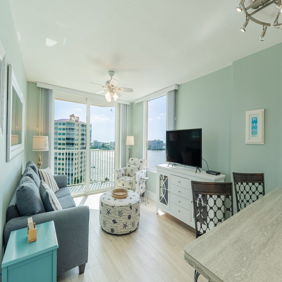 Enjoy stunning views of both the bay and the Gulf right from your window. With resort amenities, warm hospitality, and unforgettable waterfront scenery, this is the ideal spot to relax, recharge, and soak in the island vibes. Experience the luxury of Lovers Key #1106, a stunning 11th-floor condo featuring 1 bedroom and 1 bathroom. The fully equipped kitchen is perfect for preparing your favorite meals, while the panoramic views from the balcony and floor-to-ceiling windows create a serene atmosphere. The spacious bedroom has a king bed with a Tempur-Pedic mattress, and the attached bathroom includes a large walk-in shower.. The living room features a Queen Tempur-Pedic sleeper sofa, allowing the condo to comfortably sleep 4. Step out onto the lanai to sip your morning coffee as you watch dolphins play in the surf or enjoy a spectacular Gulf sunset. Whether you’re seeking a vacation retreat, a seasonal rental, or a year-round home, Lovers Key #1106 offers the ultimate living experience.