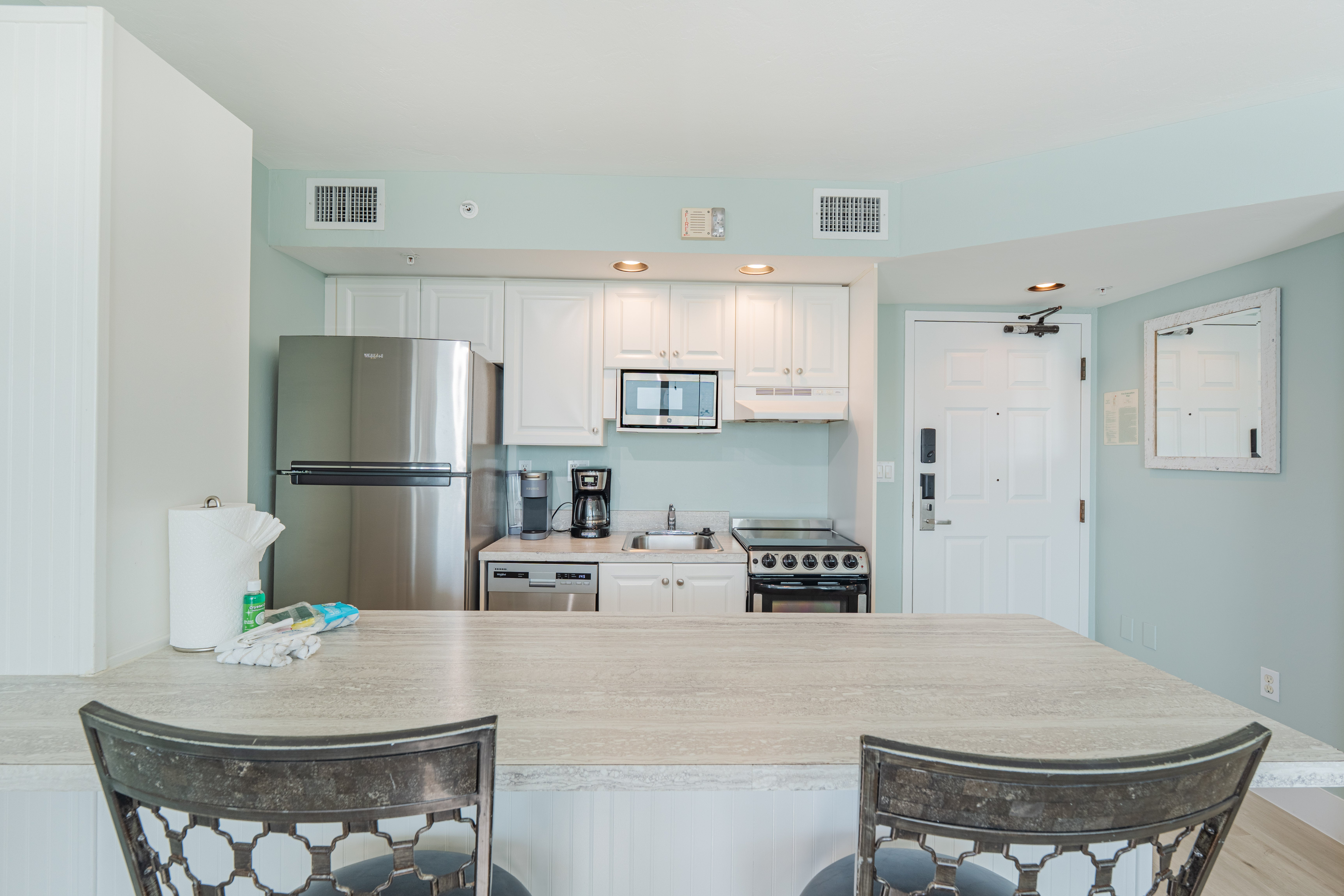 "Great view and decorated well! It is very small so it’s perfect for a couple, but would be very tight for more than 2 people. Would’ve been helpful to have more than 1 dishwasher tablet, but other than that we have no complaints. "