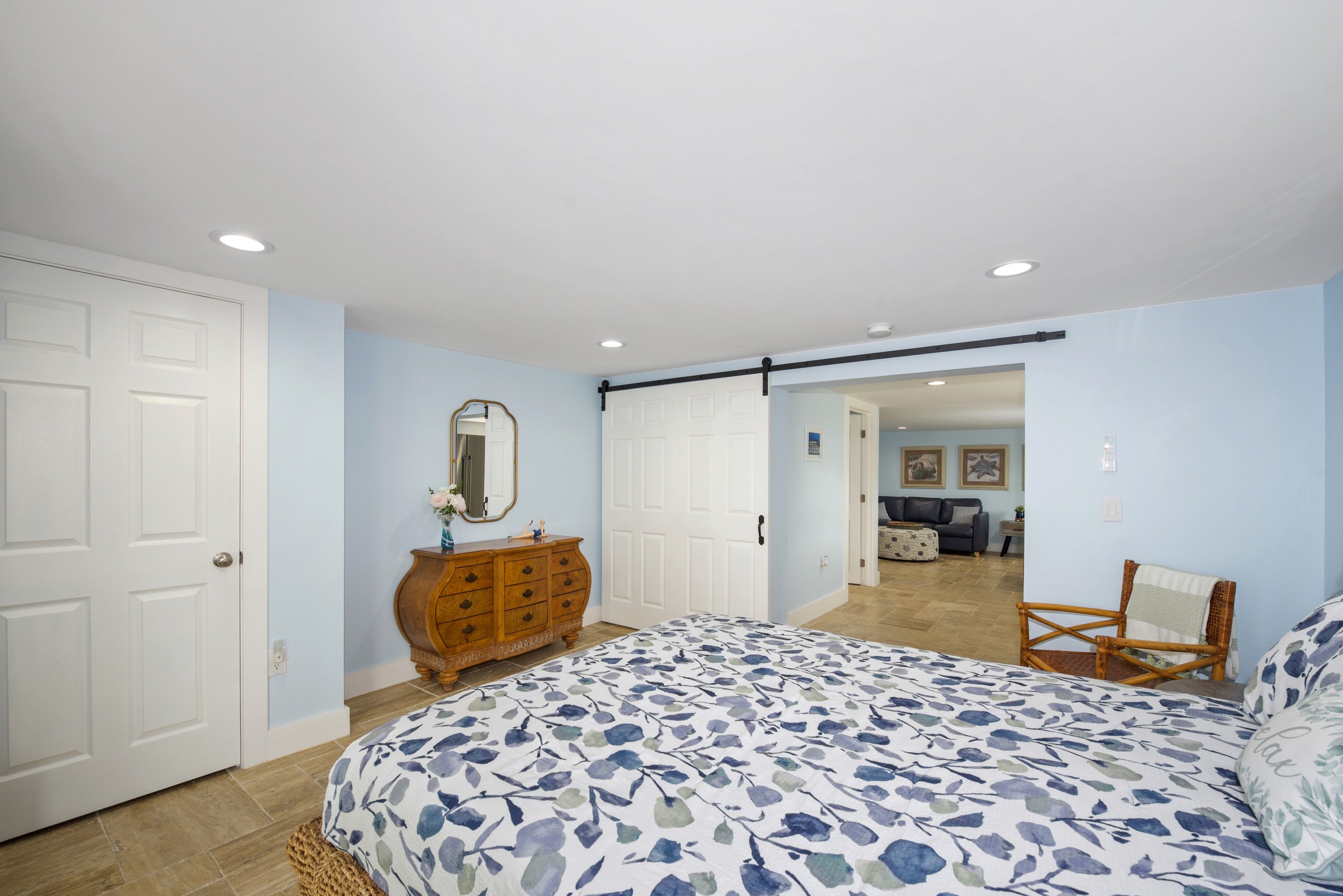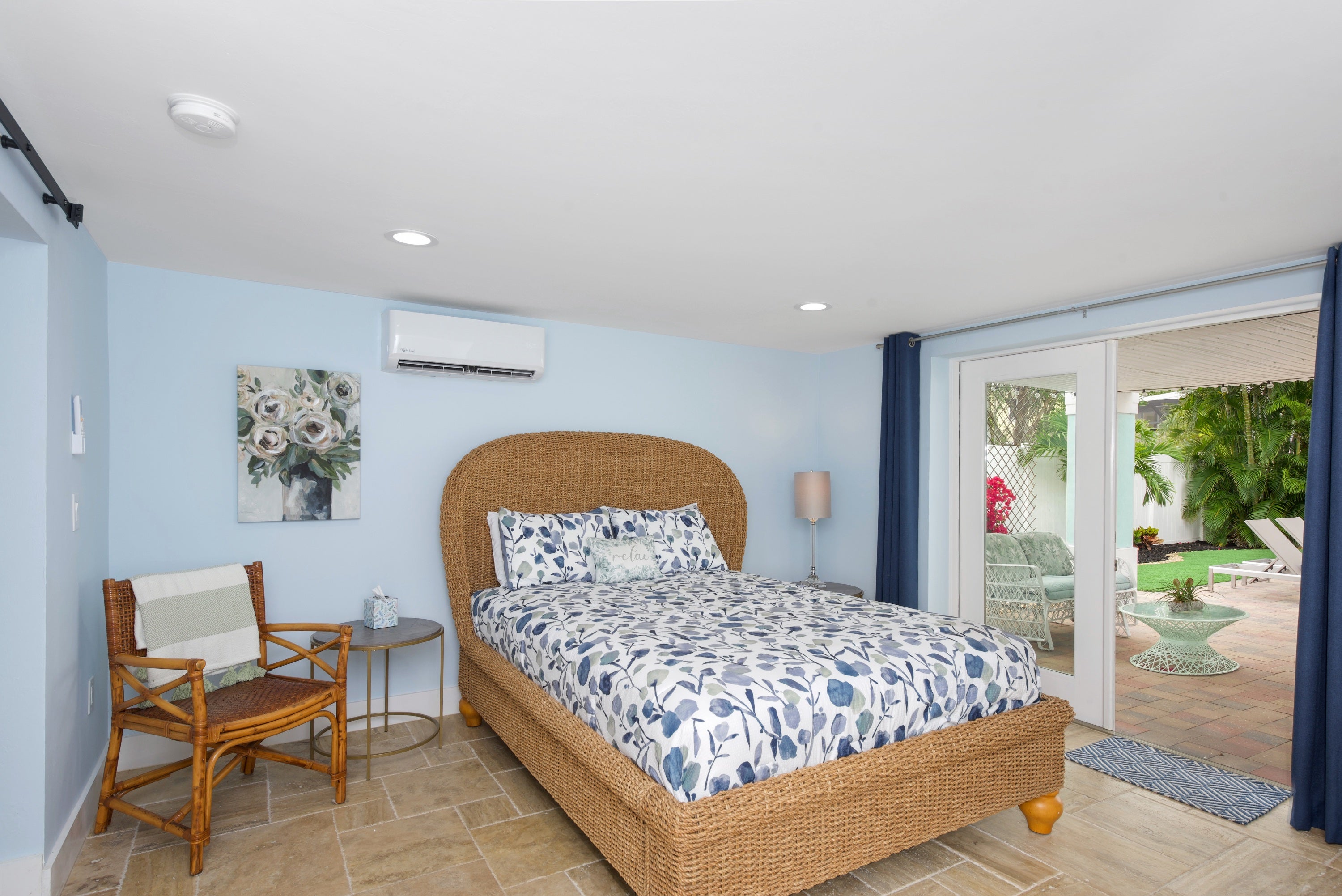 Downstairs Guest Bedroom with Queen Bed and Patio Access