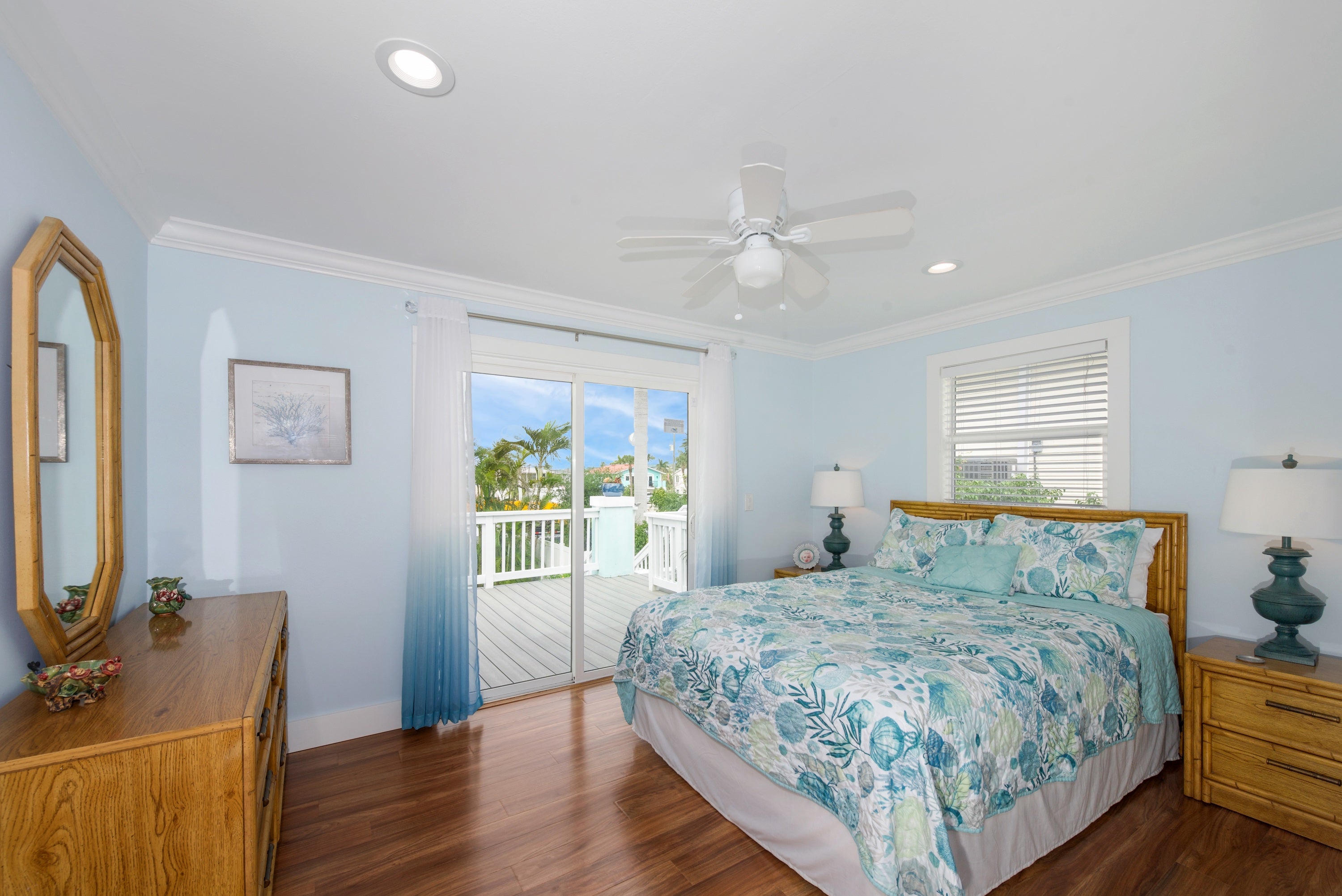 Upstairs Primary Bedroom with King Bed and Access to Deck