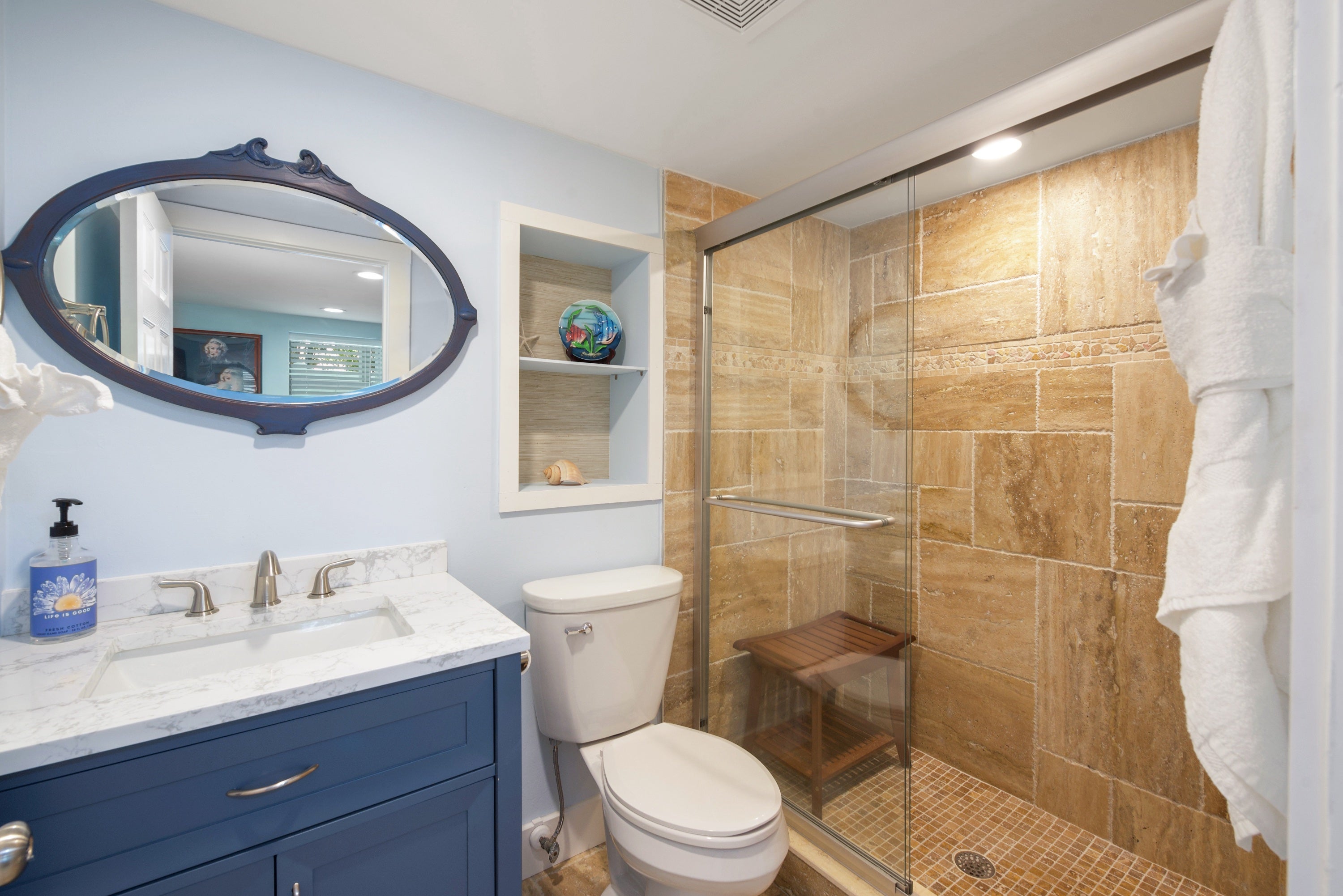 Downstairs guest bathroom with walk in shower