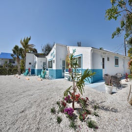 Welcome to Mermaid Tales #5 and #6, which is Wind Swept and Bikini Bottom villas ,available to rent together. These two separate villas together feature 2 bedrooms and 2 bathrooms. These units are great for friends that are traveling together or families that just want their own space. They have been beautifully renovated with all new furniture, appliances, AC, and paint, and will have you feeling like you are at home. Both villas include a queen bed, new bathrooms with walk-in showers, open concept living areas, and large flat screen TV’s in the living areas and bedrooms.