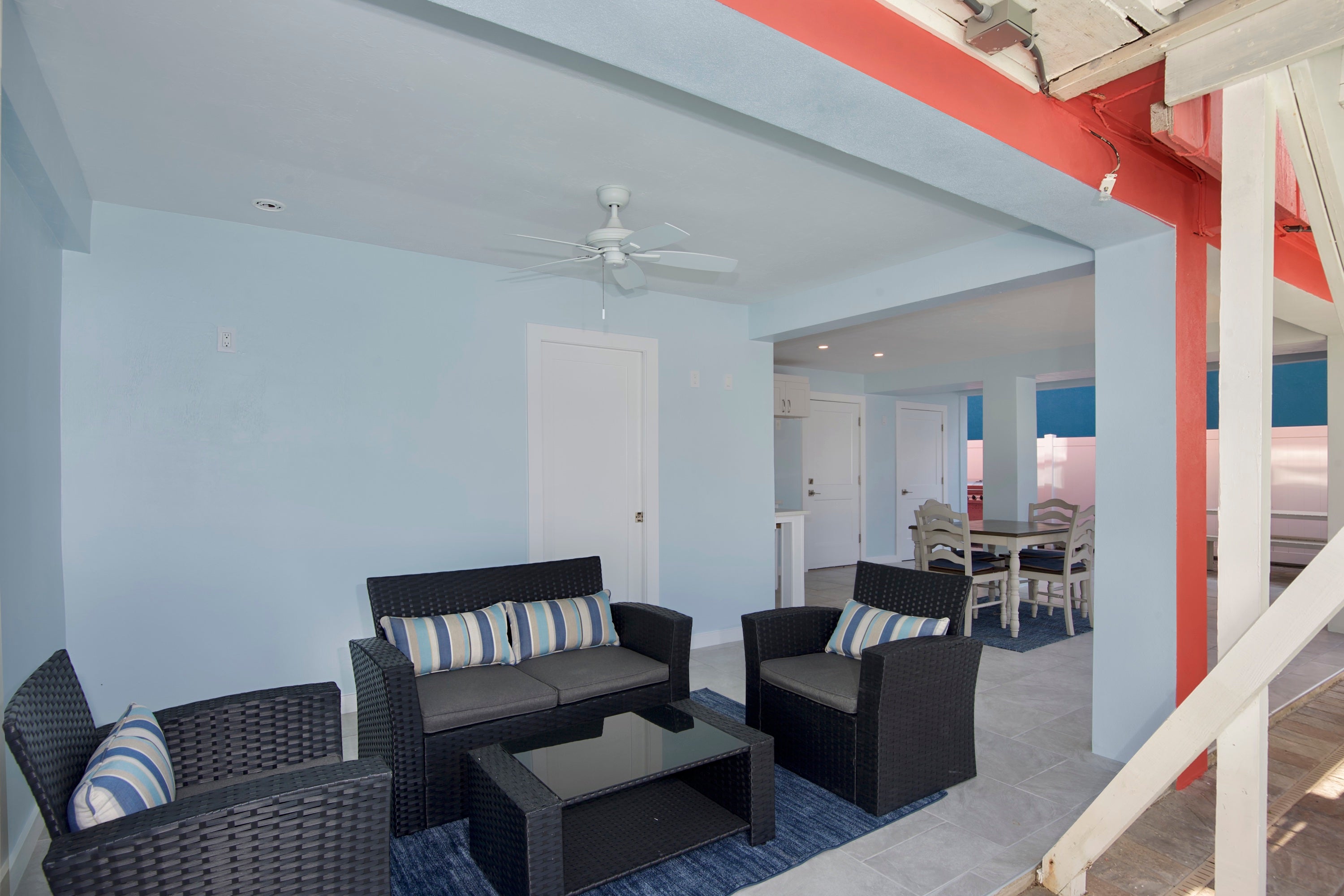 "The house was really clean and the walk to the beach was very short! The amenities downstairs by the pool were amazing! We were really disappointed in the lack of supplies since we flew. We didn’t get starters of laundry pods, coffee, etc. There were no spices, oils, aluminum foils, nothing! There was a beach wagon with a couple of beach items, but no cooler, sand toys or beach umbrella. We bought these items because we have kids and had to, they were left behind because again, we flew, so hopefully another family can enjoy them and not have to spend the money on them! "