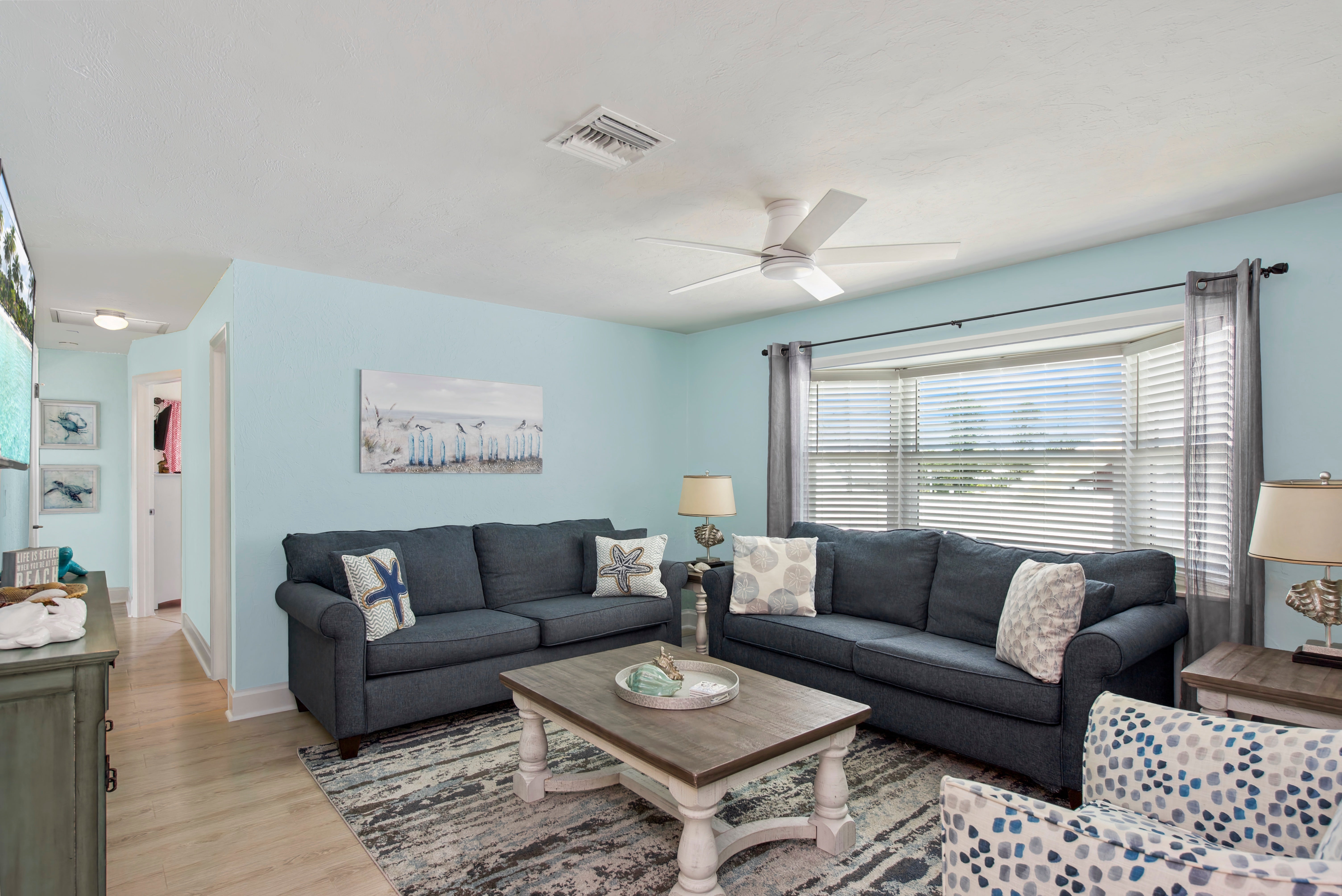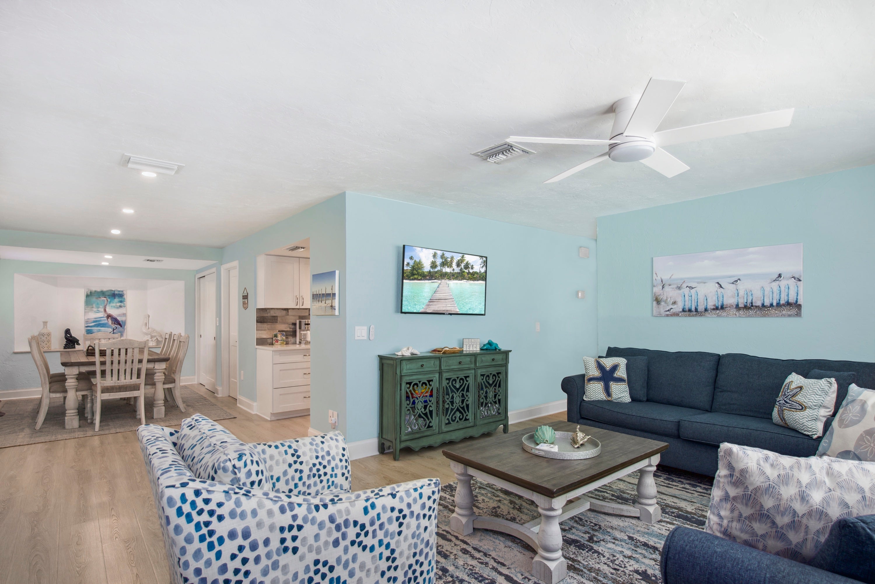 Nestled just steps from the sandy shores of Fort Myers Beach, Montishello on Jefferson welcomes you with its charming facade and inviting atmosphere. This delightful abode offers more than just a catchy name - it promises a memorable retreat filled with shell hunting, relaxation, and joyful moments. Step inside this tropical haven to discover a thoughtfully designed layout, perfect for families and friends seeking comfort and convenience.