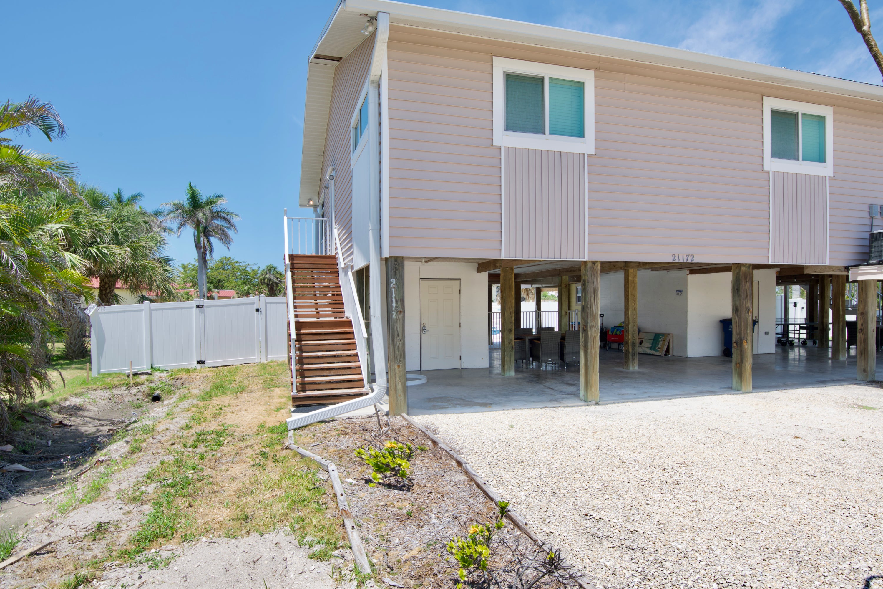 Escape to Monty's Place, a charming 2-bedroom, 1-bath stilt-home duplex tucked away on a peaceful street just a short walking distance to beach access 13. Whether you're craving sun-soaked days or cozy nights, this home has it all—from a sparkling new pool and spa to a shaded tiki hut perfect for lounging. The spacious backyard invites you to relax around the fire pit, challenge friends to outdoor games, or let the kids play in the sanded area. With beach gear, outdoor showers, and a private storage locker, you're always ready for a beach day. Inside, enjoy cool comfort with central A/C, ceiling fans, in-unit laundry, and parking for four vehicles. Just 4 miles from lively Times Square, Monty's Place blends tranquility with easy access to all the fun Fort Myers Beach has to offer.