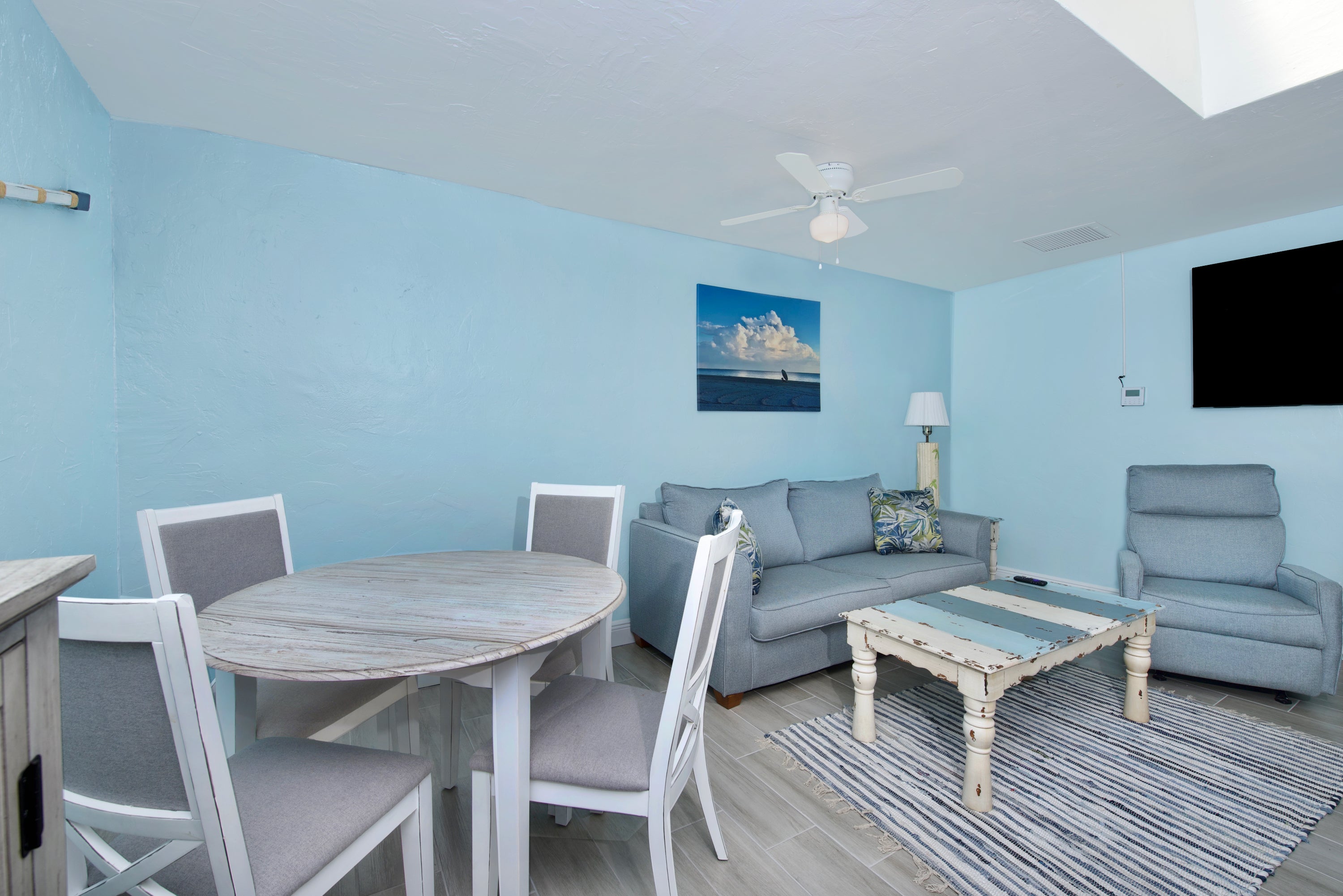 Welcome to Mermaid Tales #2- Beach Nik. This beautiful 1 bedroom offers a queen bed, ensuite with walk-in shower, also a sleeper sofa in the living room. Calming coastal hues throughout assist in relaxation after a full day in the sun at the beach or around the pool. Curl up at the end of the day on the couch with a good movie. No need to dine out as there is a fully equipped kitchen available, or grab take out and eat around the table. Guests have access to the complex pool, shared washer and dryer, and other complex activities. Come make your favorite memories at Beach Nik.