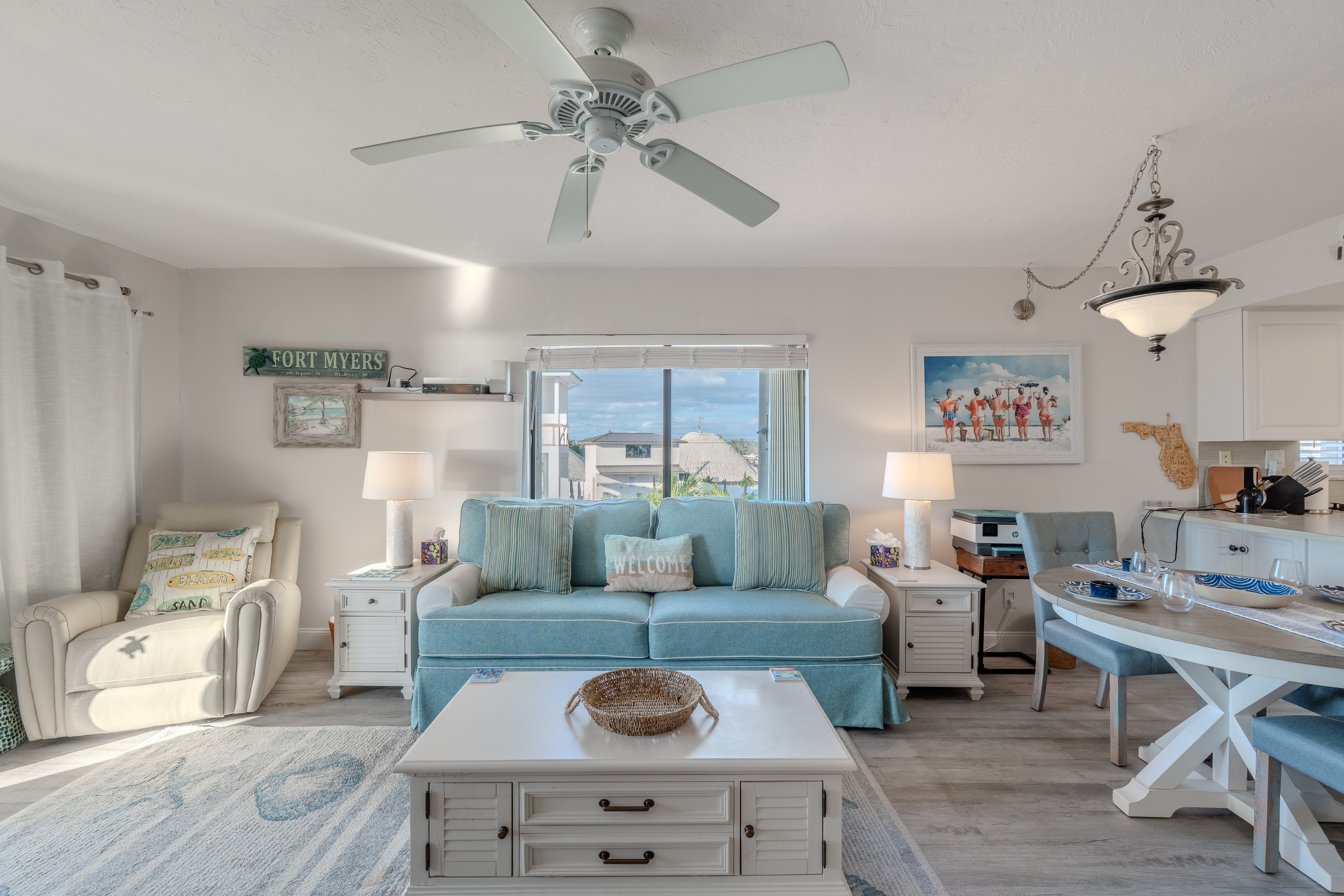 Enjoy stunning Gulf views in this beachfront 2BR/2BA condo on the white sands of Fort Myers Beach! Just minutes from lively Times Square, this spacious unit features a king suite, full kitchen, washer/dryer, and a private lanai overlooking the ocean. Sleeps 4 comfortably. Linens, bath towels, and beach towels included—everything you need for the perfect beach getaway!