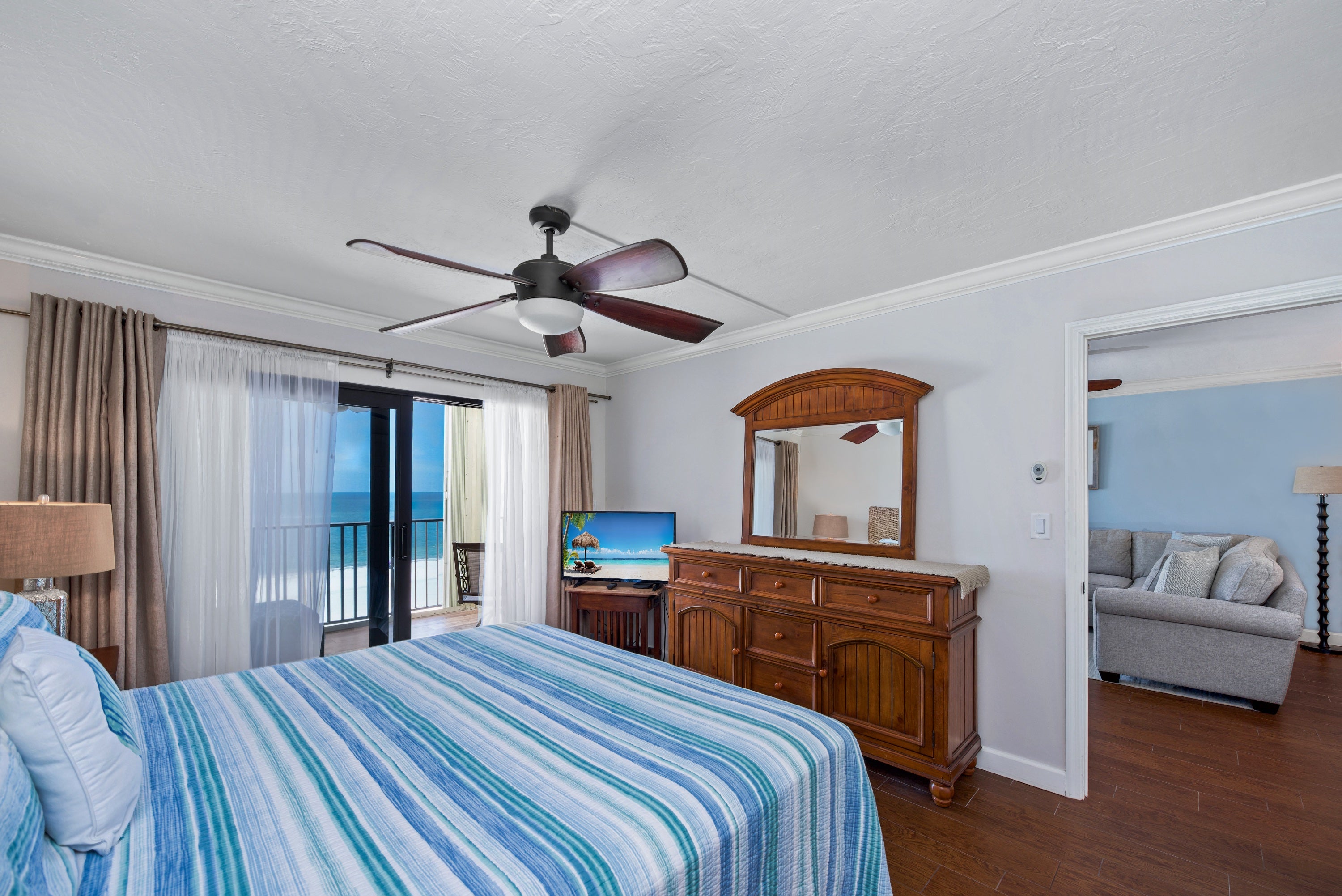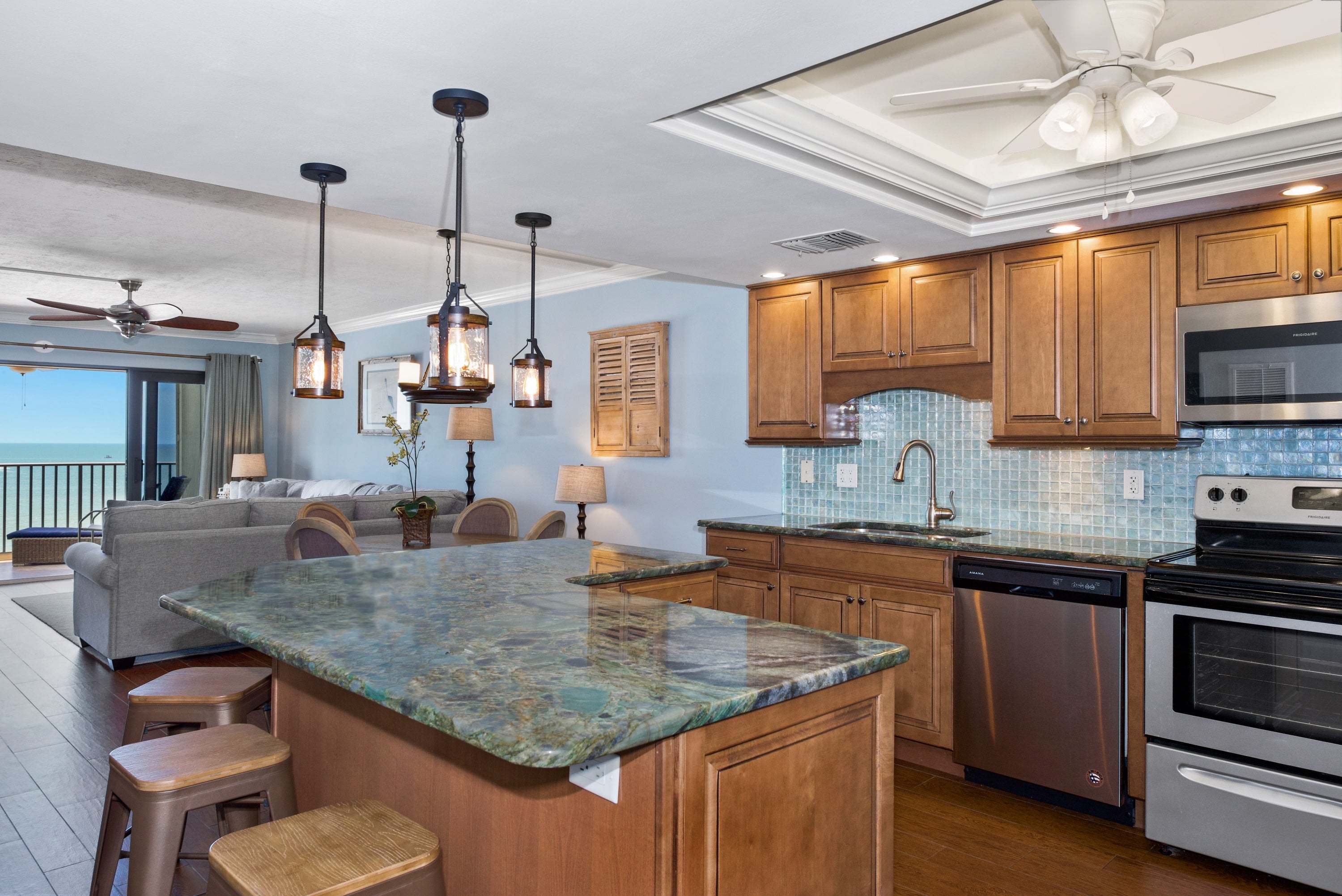 Welcome to Pelican Watch #502! This 5th-floor 3-bedroom, 2-bath condo has recently been renovated as of 2024. The beautiful, fully equipped kitchen includes granite countertops, a kitchen island, and stainless-steel appliances. An open floor plan is perfect for quality time together while enjoying views of the Gulf of Mexico from the kitchen to the living room. The living room offers direct access to the balcony and plenty of seating both inside and out. Unwind in the primary bedroom which offers a king bed and a beautiful ensuite bathroom with a walk-in shower. The first guest bedroom includes a queen bed while the second guest bedroom has two twin beds, comfortably sleeping up to 6 guests. A washer and dryer are included for additional convenience. Come make lasting memories at Pelican Watch #502.